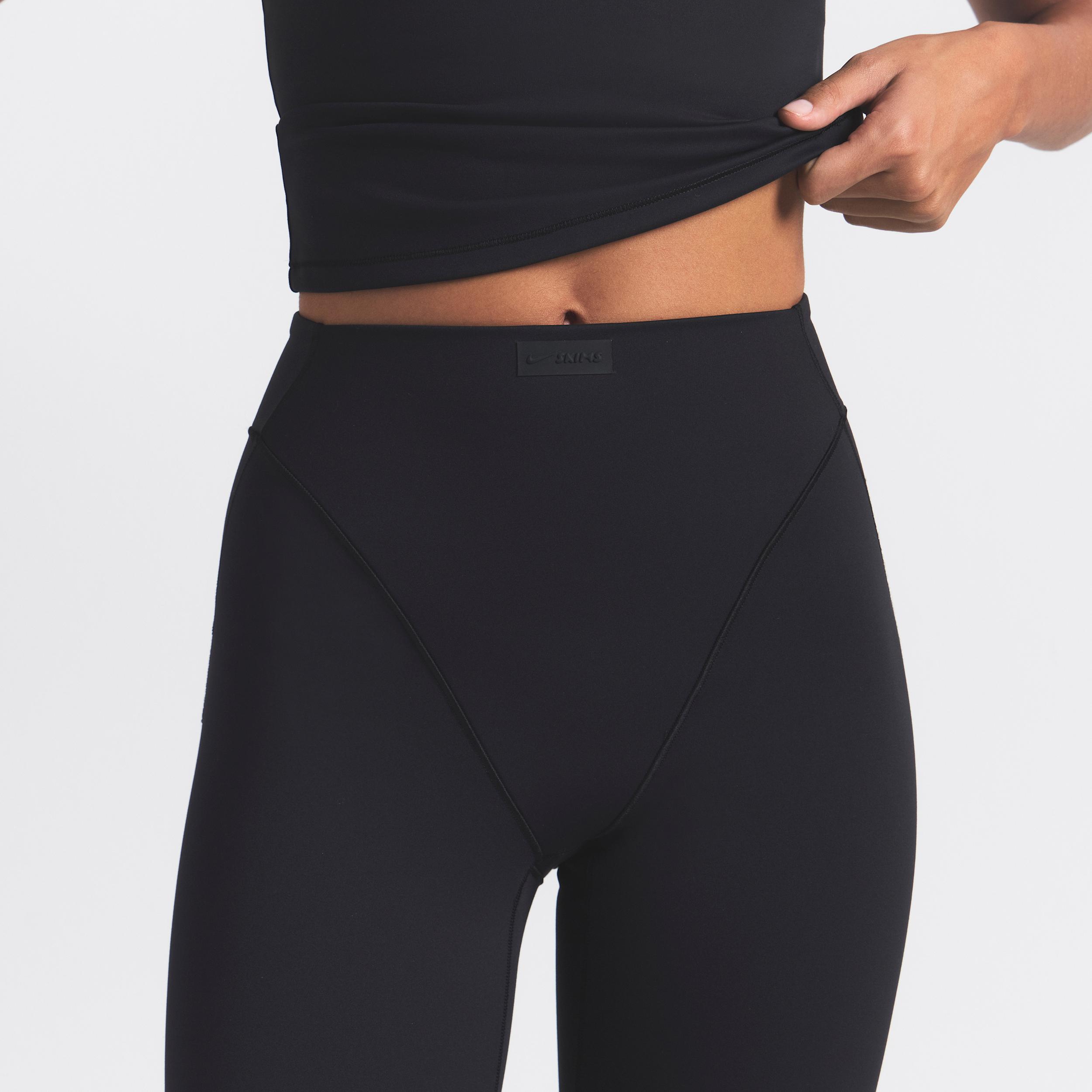 Our Matte fabric sculpts and smoothes your curves while side-dart details and a double-layered V-panel accentuate your shape. We added our sweat-wicking Dri-FIT technology to make these leggings a studio essential you can wear anywhere. Benefits:Our soft Matte fabric is designed to sculpt and smooth. Nike Dri-FIT technology moves sweat away from your skin for quicker evaporation, helping you stay dry and comfortable. Darts at the side contour your curves. [] Product Details:29 inseam. Four-way stretch. Cotton gusset. Silicone matte logo at center front. 73% polyamide/27% Lycra® spandex. Machine wash. Imported. Style: PTLEG8619W; Color: NSKM OBSIDIAN; Size: M; Gender: Female; Age Group: Adult | Nike SKIMS Matte Women's High-Waisted V-Panel Straight Leggings in Black, Size: Medium | PTLEG8619W-OBD