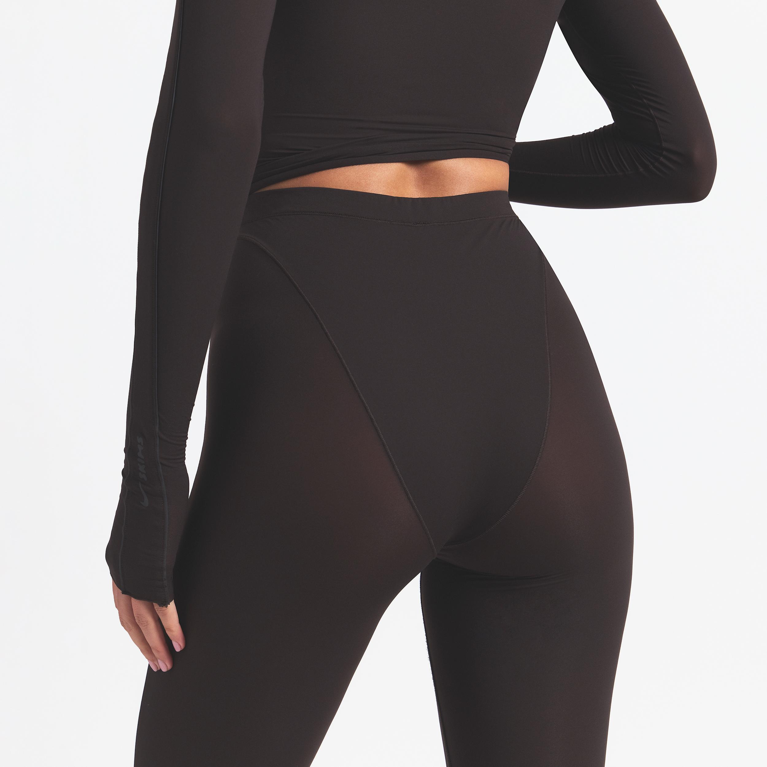Our semi-sheer Weightless Layers fabric turns these leggings into a bold statement. Quick drying and breathable, they feature a double-layered V-panel for added coverage. Benefits:Our semi-sheer Weightless Layers fabric earns its name with a barely-there feel. Double-layered V-panel provides coverage where you want it. [] Product Details:Cotton gusset. Reflective details. Reflective logo at center front. This product is not intended for use as Personal Protective Equipment (PPE). 69% polyamide/31% spandex. Machine wash. Imported. Style: PTLEG8361W; Color: NSKM DARK ROAST; Size: XS; Gender: Female; Age Group: Adult | Nike SKIMS Weightless Layers Womens High-Waisted V-Panel Leggings in Brown, Size: XS | PTLEG8361W-DRT