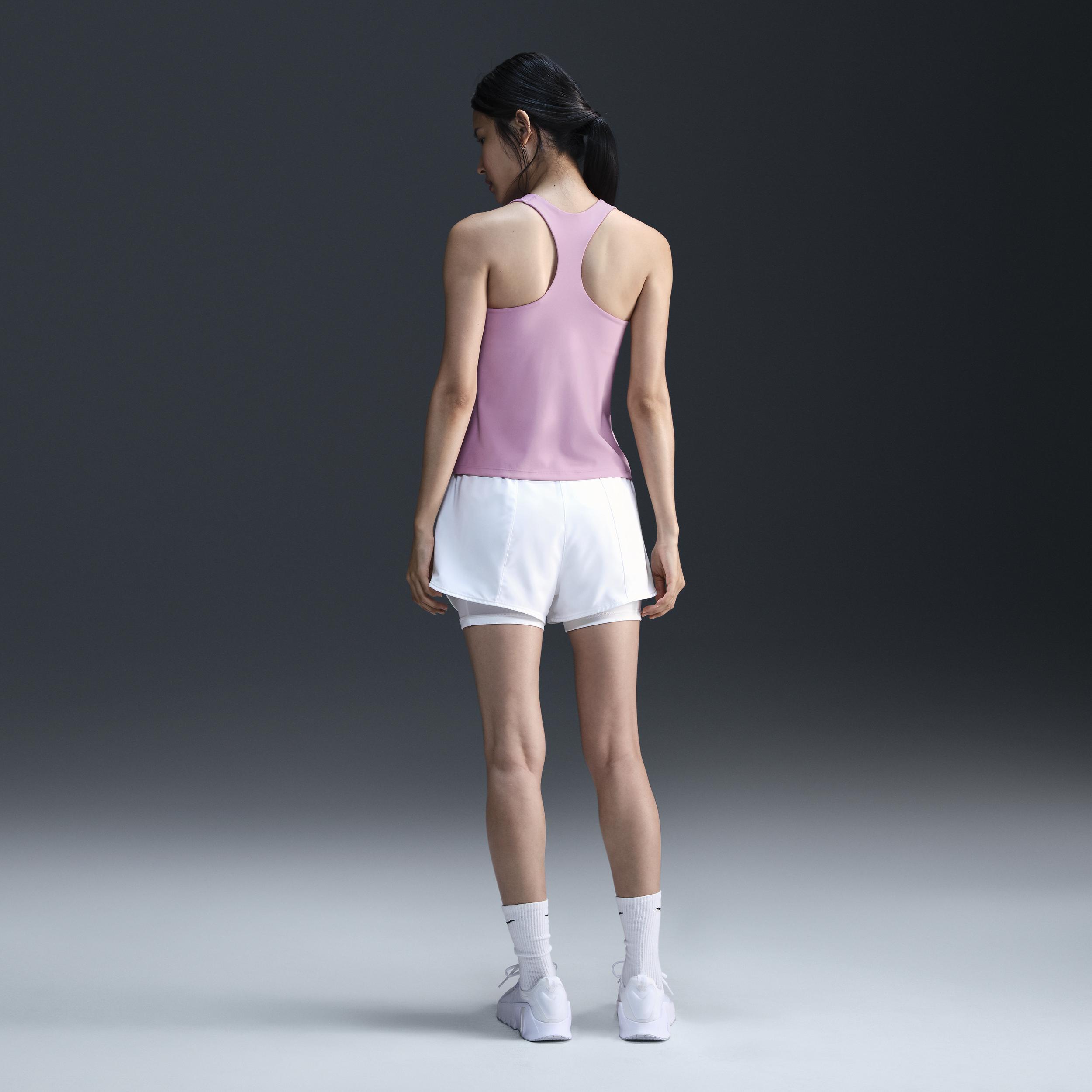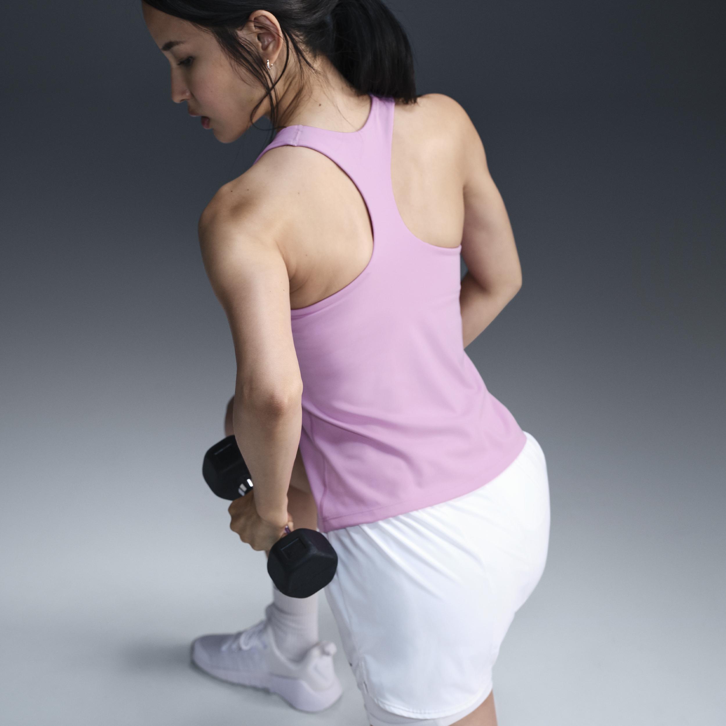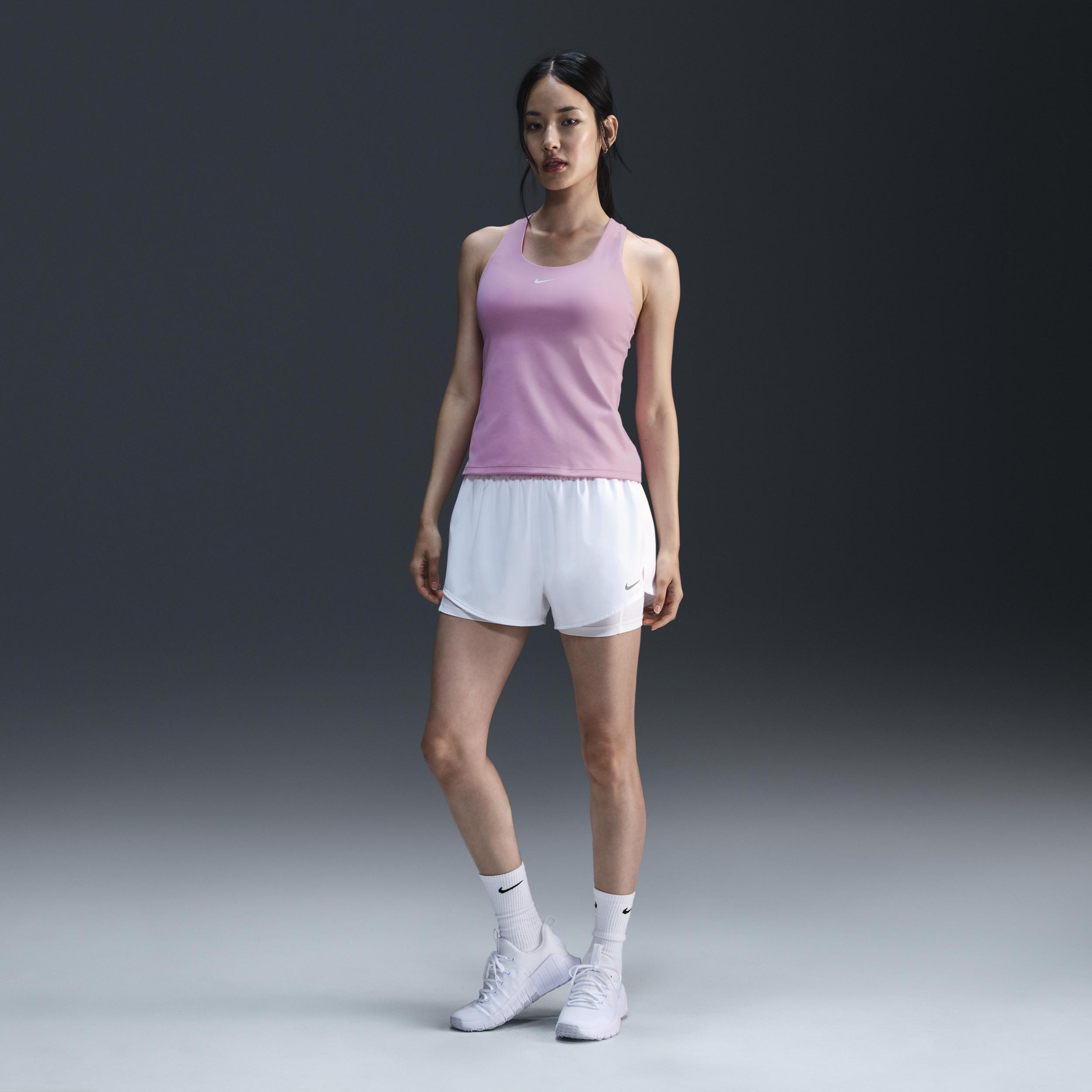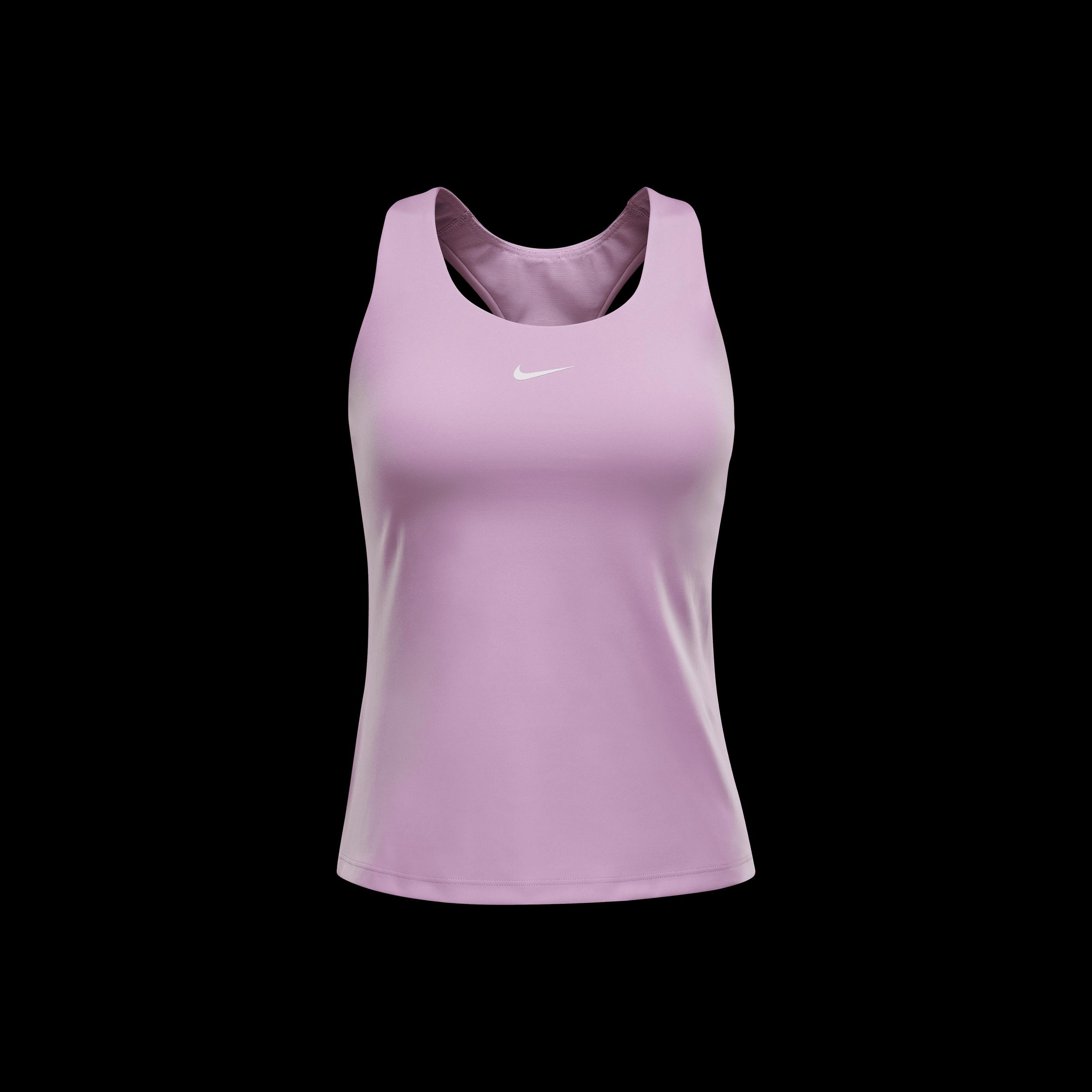 When you want it all, this tank is the pick. The iconic Swoosh bra is built in and smooth, stretchy fabric snuggly holds you, so you're set with everything you need to go from the office to the gym and back again. With sewn-in padding and a racerback silhouette, you can feel confident that nothing is shifting as you go about your day. Built-In Coverage:The built-in bra provides medium support through high-stretch, smooth padding. With flexible, breathable mesh inside, you'll feel covered without worrying about sweat. Stay Dry:Nike Dri-FIT technology moves sweat away from your skin for quicker evaporation, helping you stay dry and comfortable. [] Product Details:Body:82% polyester/18% spandex. Bra mesh:81% polyester/19% spandex. Elastic:65% nylon/35% spandex. Bra mesh lining:81% polyester/19% spandex. Pad top fabric:100% polyester. Pad:100% polyurethane. Pad back fabric:100% polyester. Machine wash. Imported. Style: DV9897; Color: Beyond Pink/Beyond Pink/White; Size: L; Gender: Female; Age Group: Adult | Nike Swoosh Women's Medium-Support Padded Sports Bra Tank Top in Pink, Size: Large | DV9897-632