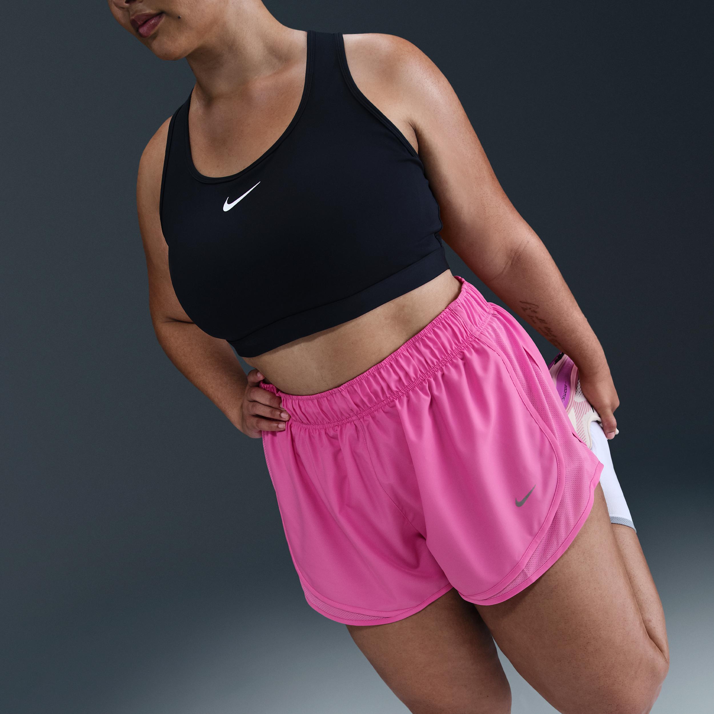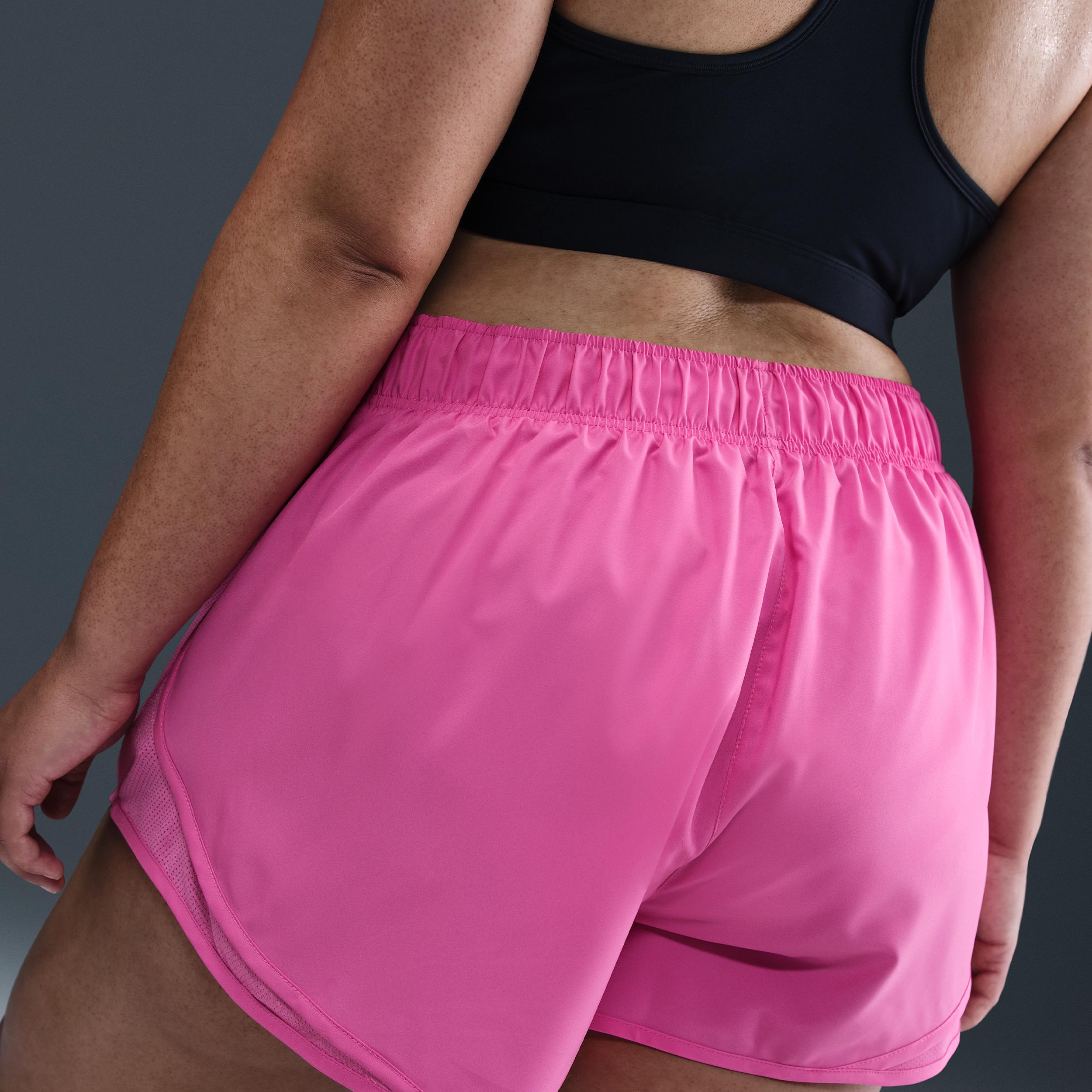 Find your rhythm in these lightweight Tempo shorts. Smooth, sweat-wicking fabric helps you stay dry while mesh panels offer ventilation with every stride. Benefits:Nike Dri-FIT technology moves sweat away from your skin for quicker evaporation, helping you stay dry and comfortable. Soft seams on brief liner help reduce chafing. [] Product Details:Body/Lining:100% polyester. Machine wash. Imported. Elastic waistband with internal drawcord. Reflective Swoosh logo on left thigh. Not intended for use as Personal Protective Equipment (PPE). Style: HM6098; Color: Playful Pink/Playful Pink/Playful Pink; Size: 2X; Gender: Female; Age Group: Adult | Nike Tempo Women's Dri-FIT Mid-Rise 3" Brief-Lined Running Shorts (Plus Size) in Pink, Size: 2X | HM6098-675