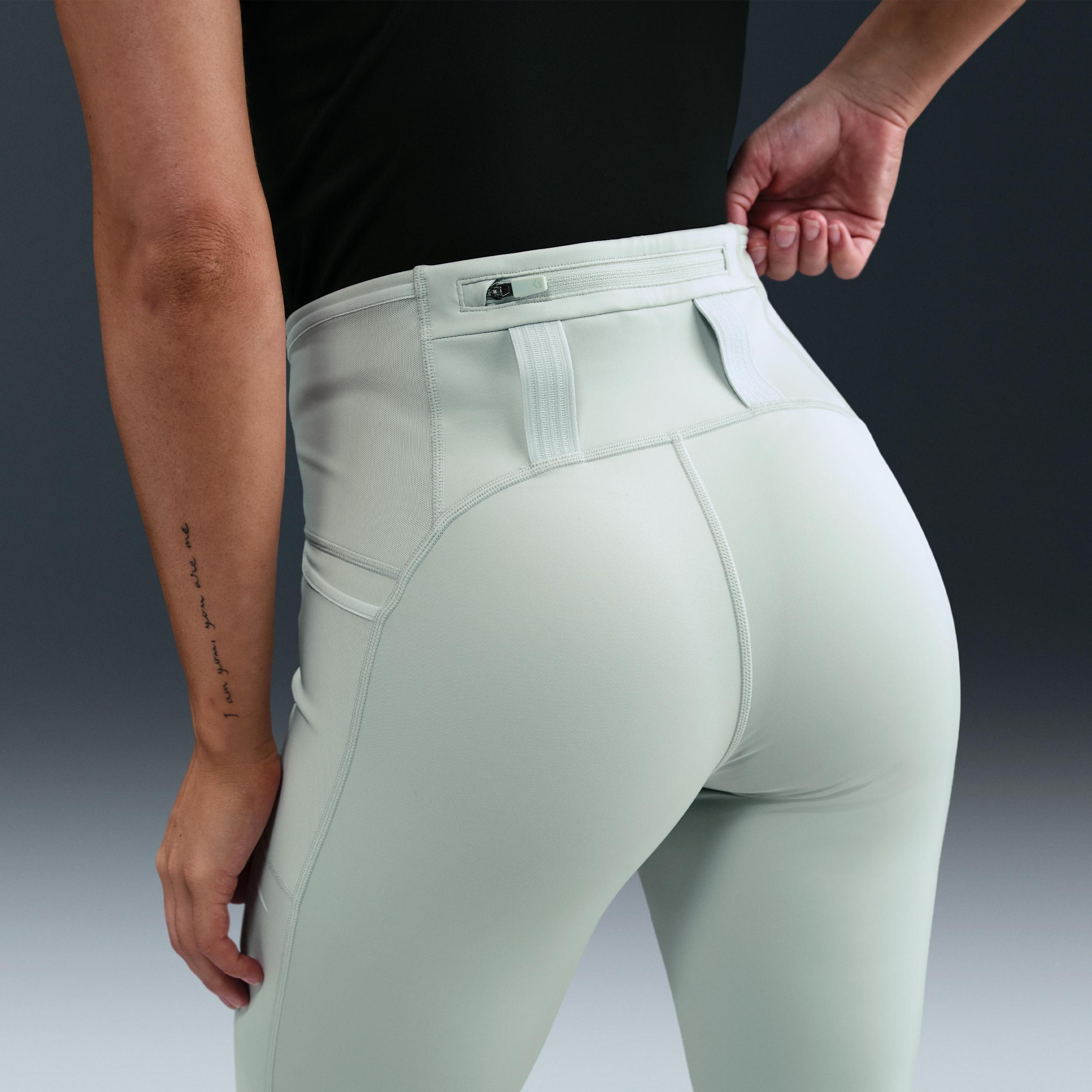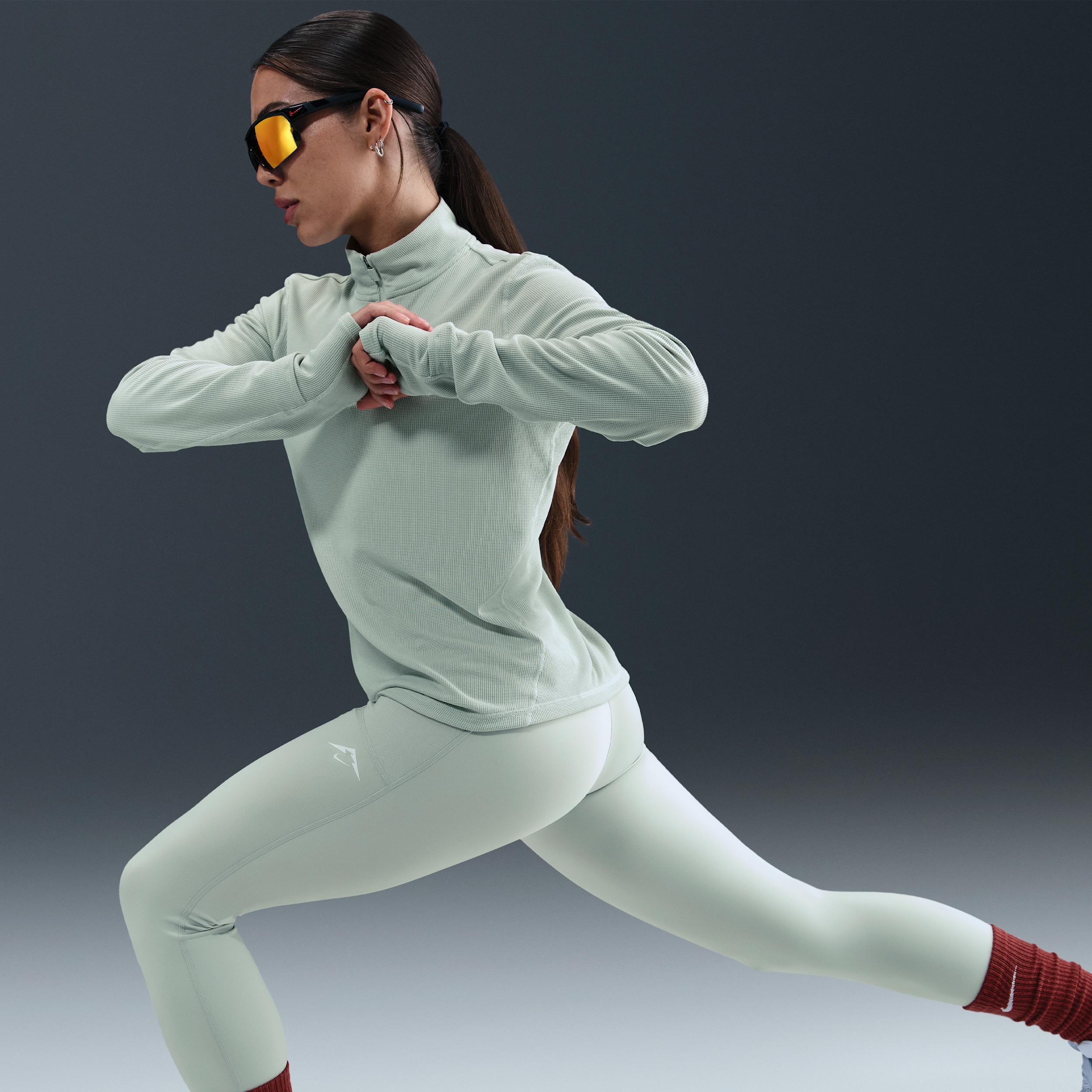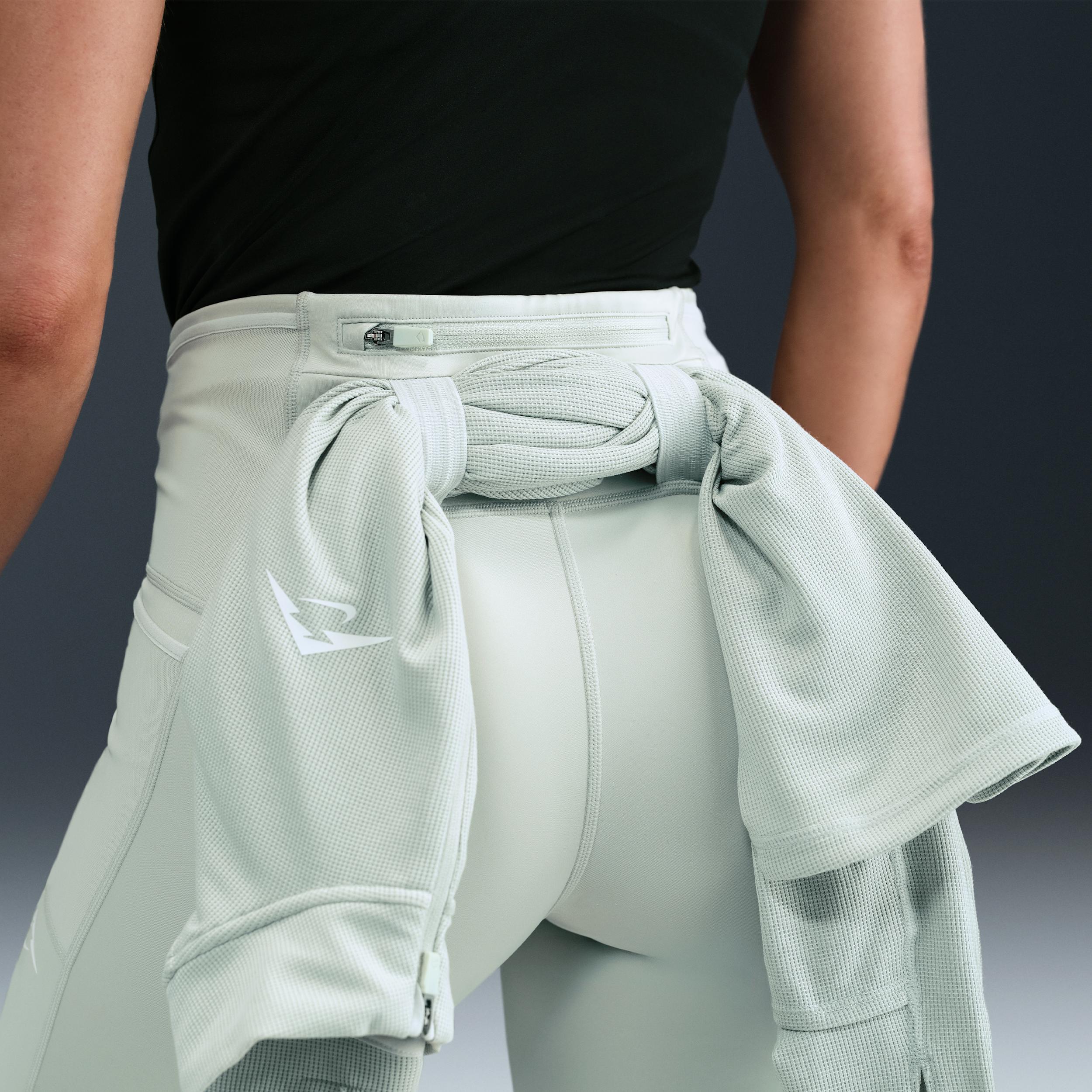 Tackle the terrain with everything you need. These smooth, midweight leggings wick sweat and keep you prepared to go the distance with eight (yes, eight) pockets to store your essentials. Stay Dry:Smooth and stretchy fabric has Nike Dri-FIT technology that moves sweat away from your skin for quicker evaporation, helping you stay dry and comfortable. Stay Prepared:Storage options include two mesh drop-in side pockets and one back zip pocket thats roomy enough to fit most phones. Plus, five mesh waistband pockets let you store trail essentials like energy gels and lip balm. Elastic loops at the back can hold your trekking poles or your top layer. [] Product Details:Drawcord at waist. Reflective Nike Trail logo. Body/Gusset lining:75% Polyester/25% spandex. Mesh:81% nylon/19% spandex. Machine wash. Imported. Not intended for use as Personal Protective Equipment (PPE). Style: HV2285; Color: Light Silver/Summit White; Size: 2XS; Gender: Female; Age Group: Adult | Nike Trail Womens High-Waisted 7/8 Running Leggings in Grey, Size: 2XS | HV2285-034