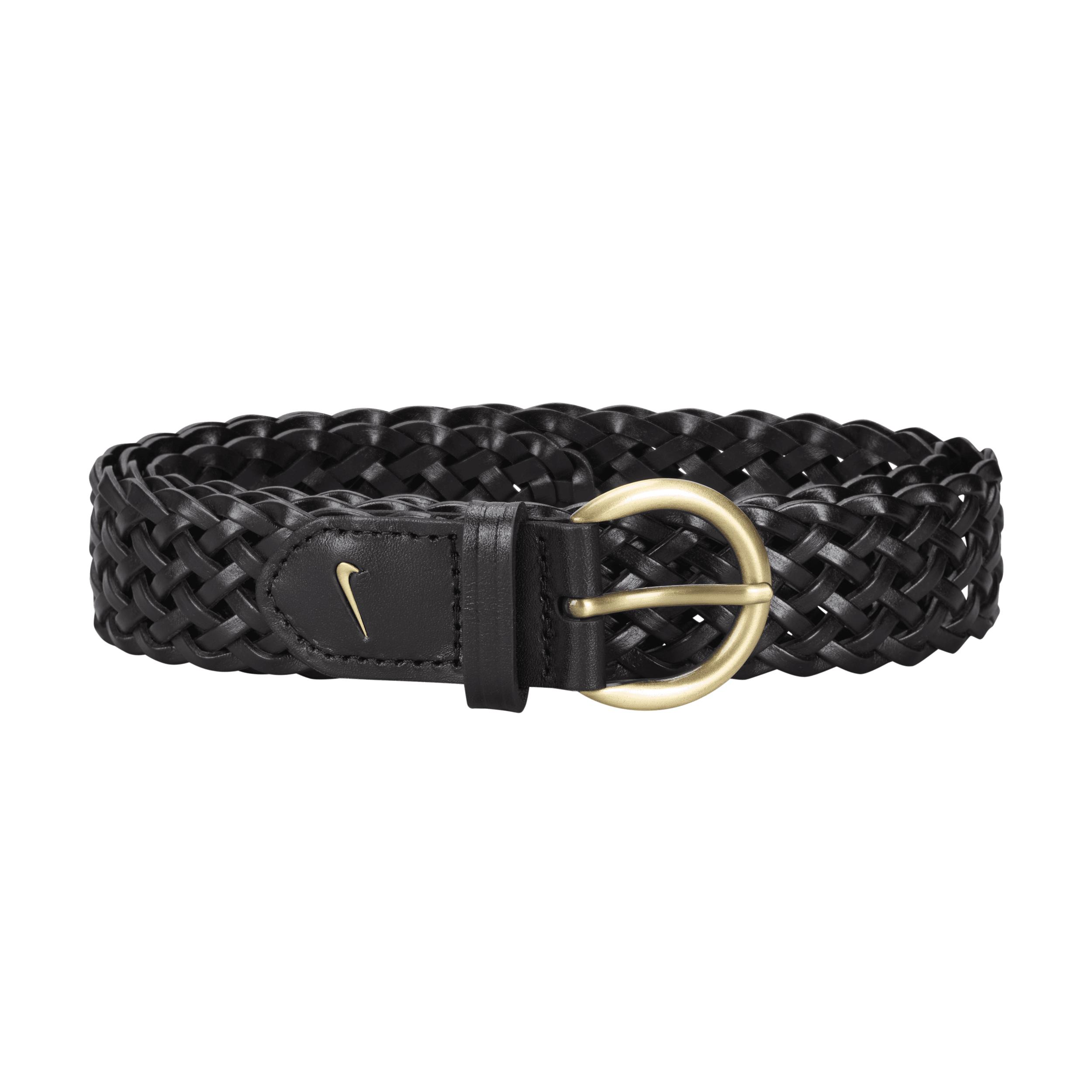 Add a touch of sophistication to your golf look. The antique brass finished buckle on this belt pairs with an ultralight woven strap for a look that's stylish and comfortable. It's the perfect finish to keep your style par. Product Details: 10% leather/46% polyester.20% rubber/24% cotton. Width: 35mm. Spot Clean. Imported. Style: 13139A; Color: Black; Size: M; Gender: Female; Age Group: Adult | Nike Women's Ultralight Woven Leather Golf Belt in Black, Size: Medium | 13139A-001