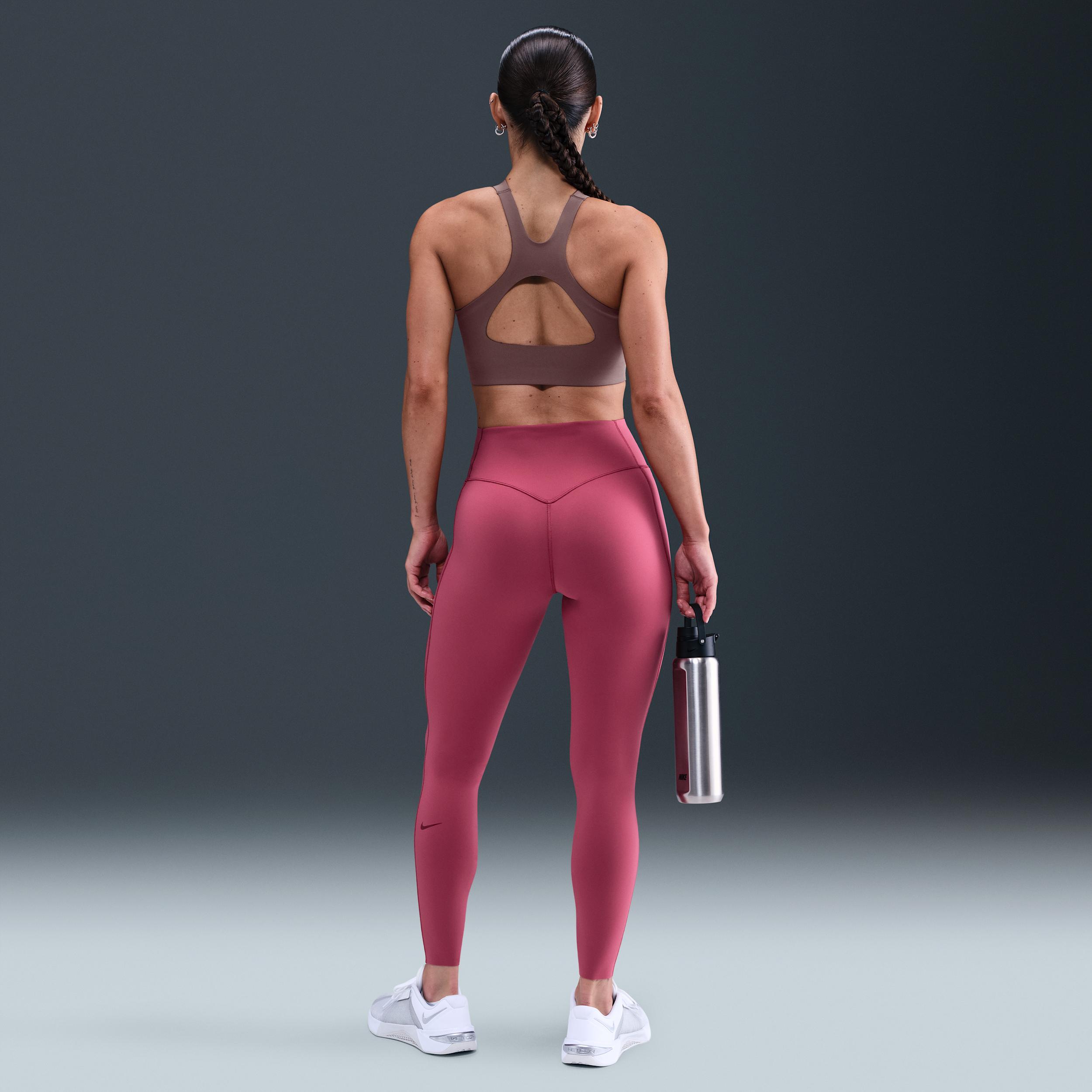 Dont let em see you sweat. We elevated the design of our Universa leggings to look smooth and help conceal sweat, thanks to a no-seam front and moisture-concealing technology. Their midweight, ultrasmooth fabric offers squat-proof stretch that helps lift and shape. Plus, an updated waistband resists rolling, so you can go all out with confidence. Keep Sweat out of Sight:Nike Stealth Evaporation technology manages moisture to help hide visible signs of sweat on your garment. It combines with Nike Dri-FIT technology that moves sweat away from your skin for quicker evaporation, helping you stay dry and comfortable.,Smoothing Touches:The absence of a front seam helps keep the fabric from riding up. A discreet back pocket and drop-in side pockets that fit most phones help keep the look smooth. [] Product Details:77% polyester/23% spandex. Laser-cut hem. Silicone Swoosh logo on left calf. Machine wash. Imported. Not intended for use as Personal Protective Equipment (PPE). Style: HQ6813; Color: Sweet Beet/Deep Garnet/Rush Maroon; Size: 2XS; Gender: Female; Age Group: Adult | Nike Universa Womens High-Waisted 7/8 Leggings with No Front Seam in Purple, Size: 2XS | HQ6813-634