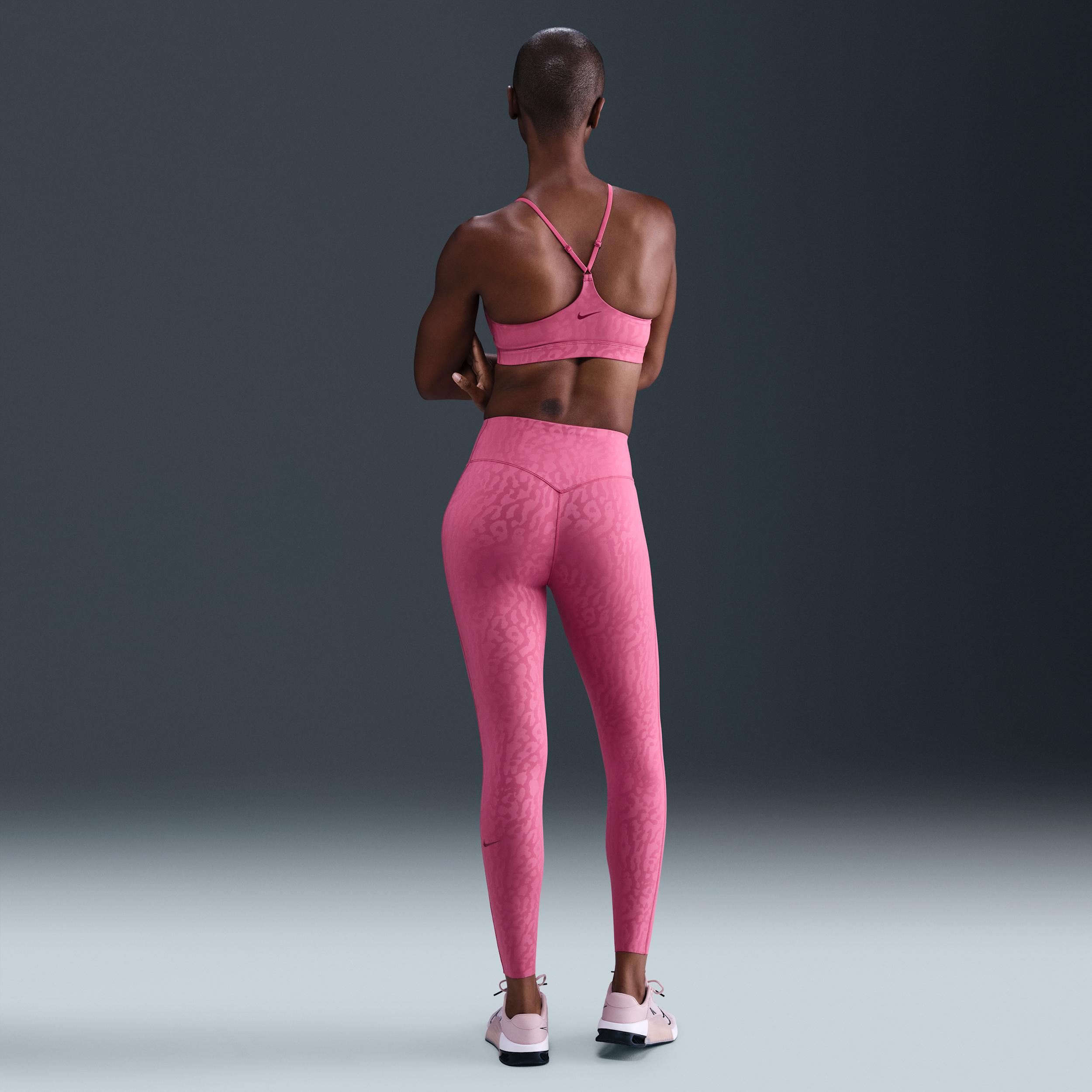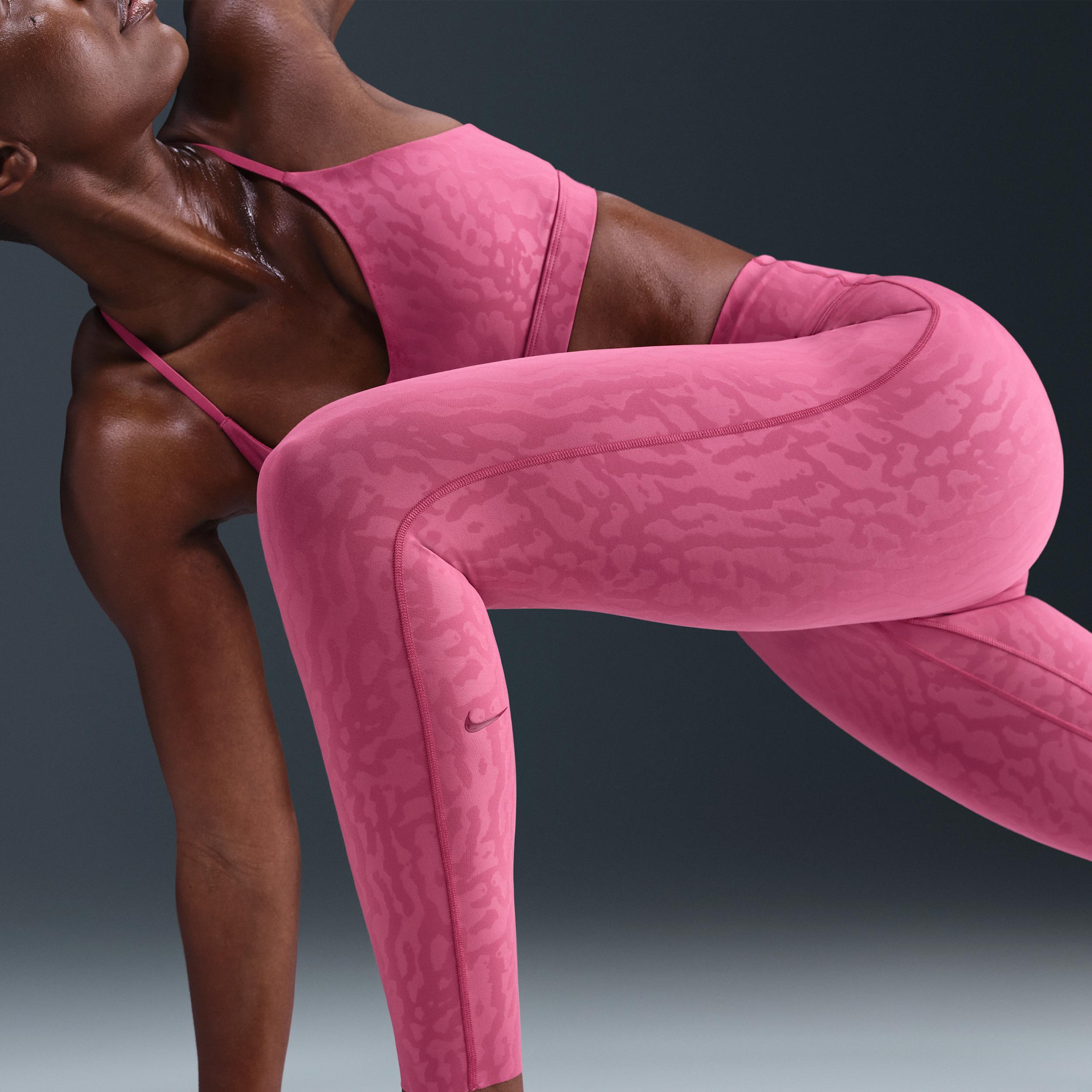Don't let 'em see you sweat. We elevated the design of our Universa leggings to look smooth and help conceal sweat, thanks to a no-seam front and moisture-concealing technology. Their midweight, ultrasmooth fabric offers squat-proof stretch that helps lift and shape. Plus, an updated waistband resists rolling, so you can go all out with confidence. Keep Sweat out of Sight:Nike Stealth Evaporation technology helps reduce sweat marks by dispersing moisture so the fabric dries quickly and stays looking fresh. Nike Dri-FIT technology moves sweat away from your skin for quicker evaporation, helping you stay dry and comfortable. Smoothing Touches:The absence of a front seam helps keep the fabric from riding up. A discreet back pocket and drop-in side pockets that fit most phones help keep the look smooth. [] Product Details:Silicone Swoosh logo on left calf. 77% polyester/23% spandex. Machine wash. Imported. Style: HV2256; Color: Sweet Beet/Deep Garnet/Rush Maroon; Size: M; Gender: Female; Age Group: Adult | Nike Universa Women's High-Waisted Printed 7/8 Leggings with No Front Seam in Purple, Size: Medium | HV2256-634