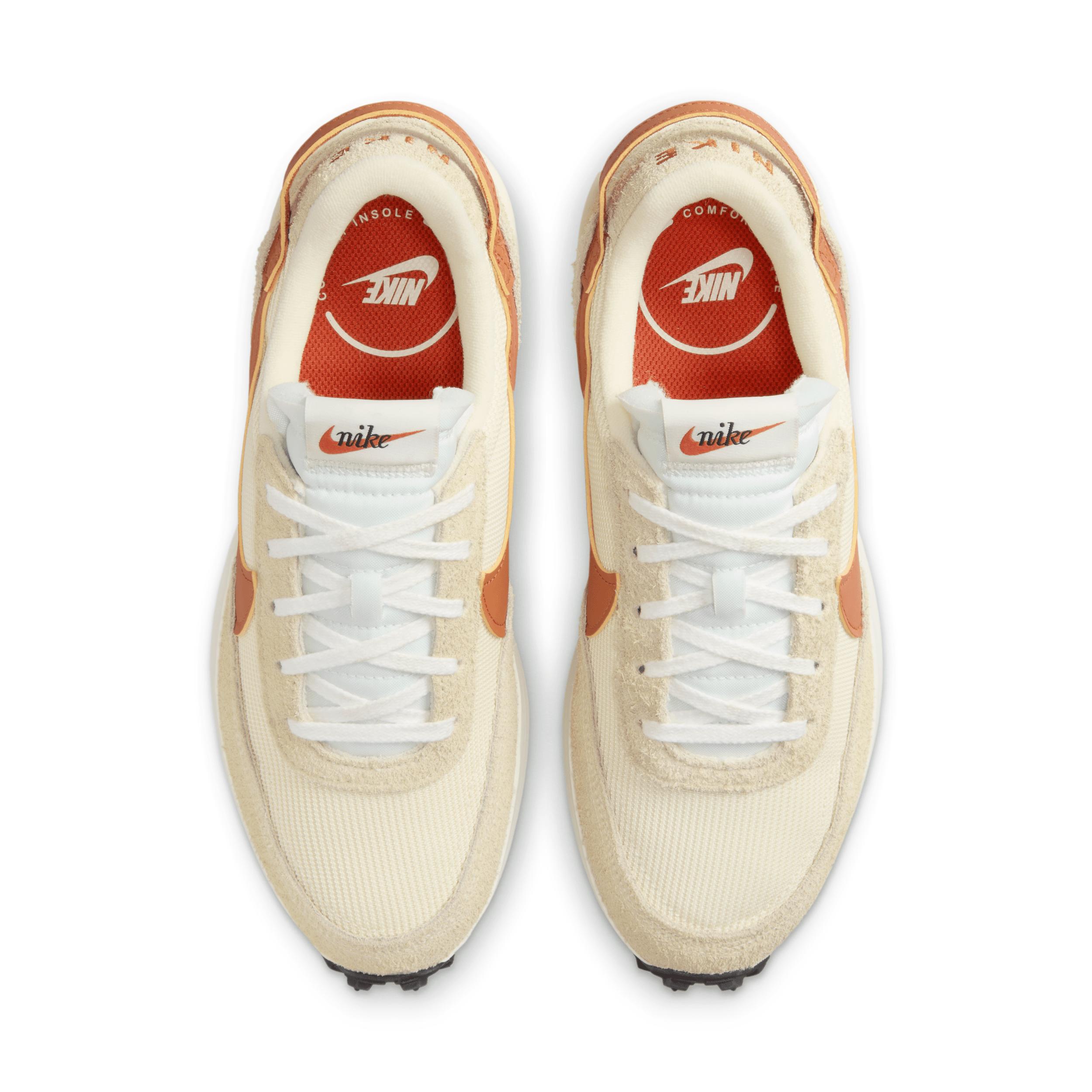 We got a secret: these retro kicks are brand spanking new. Done in fuzzy suede and airy textile, they deliver era-echoing, '70s style with modern comfort. An updated wedge midsole gives the cushioning a serious boost, while maintaining the iconic Waffle outsole you know and love. Benefits:Swoosh wraps around the back to form a pull tab for easy on and off. Lifted foam midsole gives you an elevated look and comfortable feel. Soft suede adds a vintage vibe, while textile underlays keep it breathable and durable. Rubber Waffle outsole adds durable traction and heritage style. [] Style: DX2931; Color: Muslin/Coconut Milk/Black/Campfire Orange; Size: 10; Gender: Female; Age Group: Adult | Nike Waffle Debut Vintage Women's Shoes in Brown, Size: 10 | DX2931-100