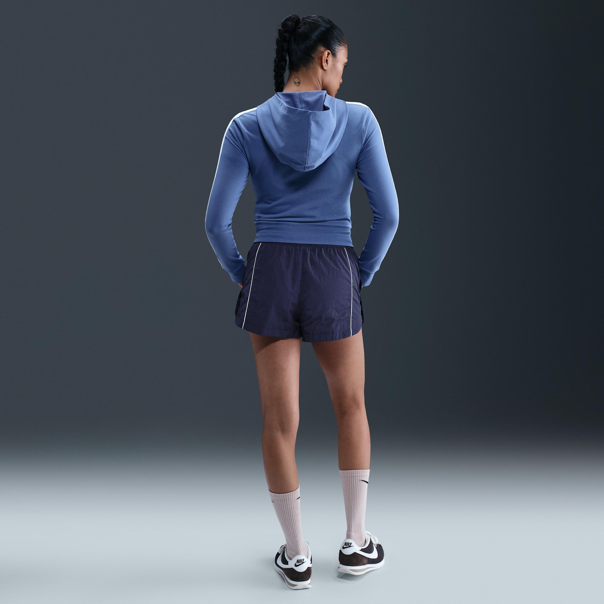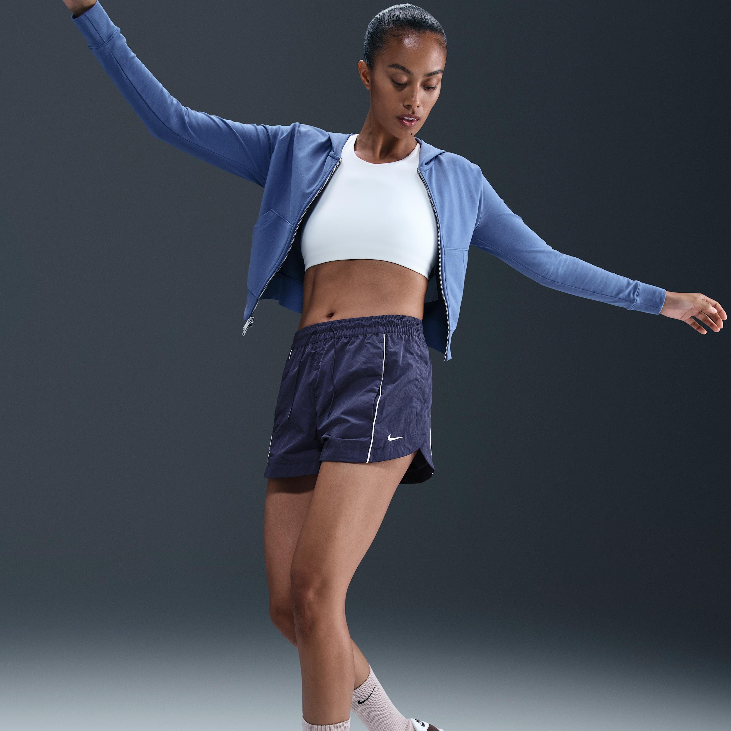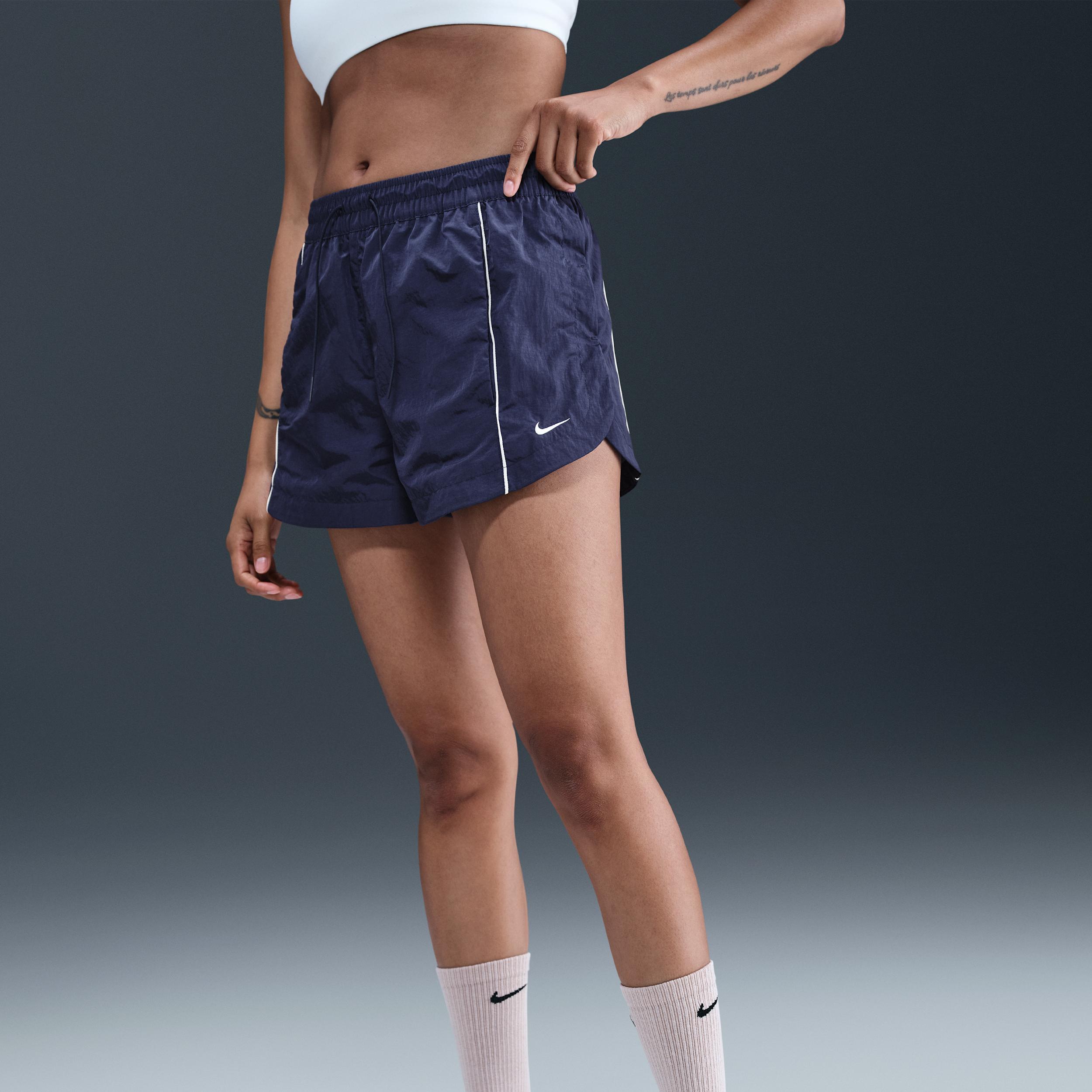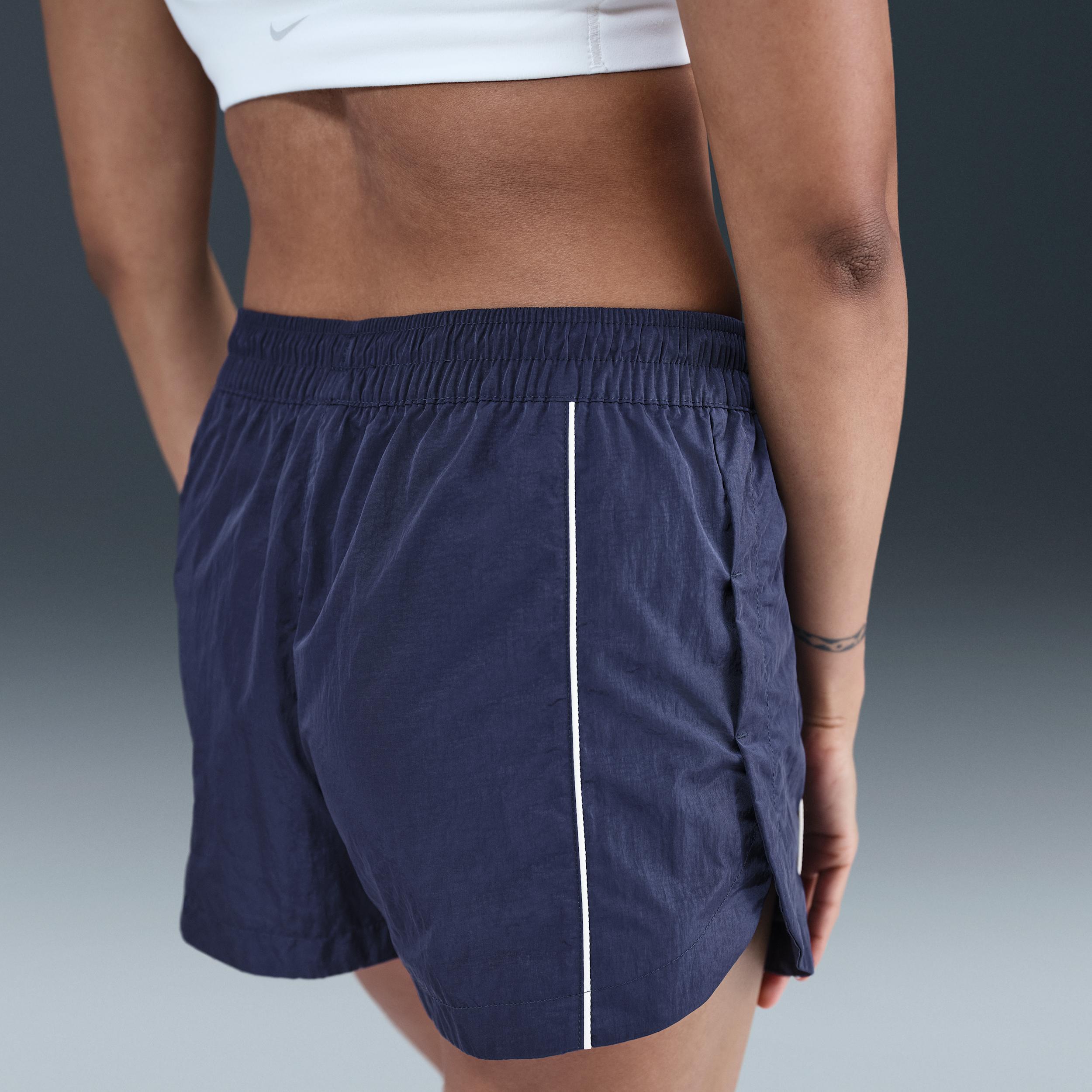 With crinkle-woven fabric and a soft, sweat-wicking jersey lining, these easy-fitting shorts give you both classic sport style and comfort. Benefits:Snap pockets provide secure storage. Lightweight fabric moves sweat away from your skin for quick evaporation, helping you stay dry and comfortable. [] Product Details:Body:100% nylon. Lining:75% polyester/13% cotton/12% rayon. Embroidered Swoosh logo. This product provides UVA and UVB protection from the sun only in the areas covered by the garment. To protect exposed areas, the use of good quality sunscreen is recommended. Machine wash. Imported. Style: FV7500; Color: Midnight Navy/Sail/Sail; Size: M; Gender: Female; Age Group: Adult | Nike Windrunner Women's Mid-Rise 2" Woven Shorts in Blue, Size: Medium | FV7500-410