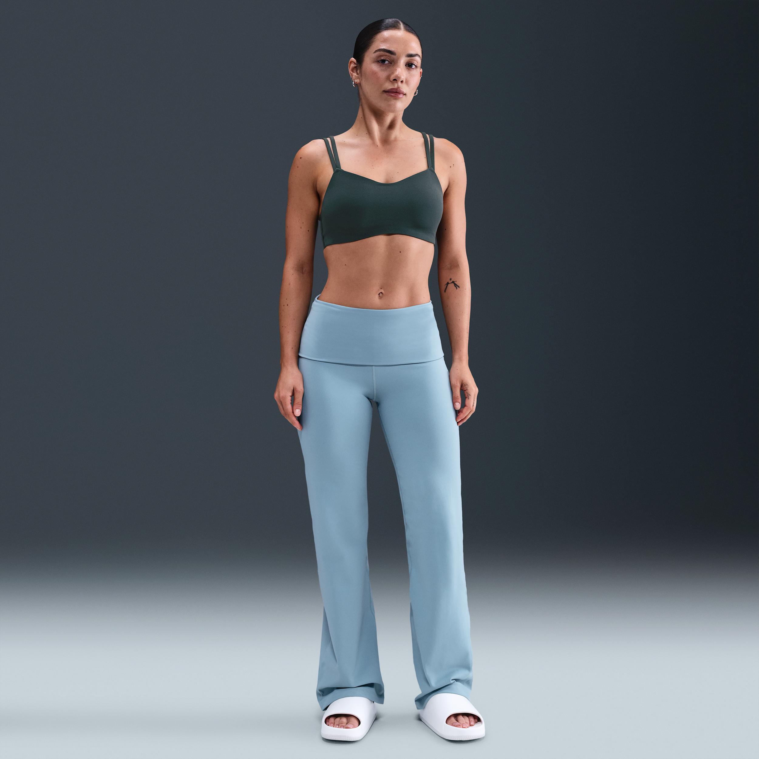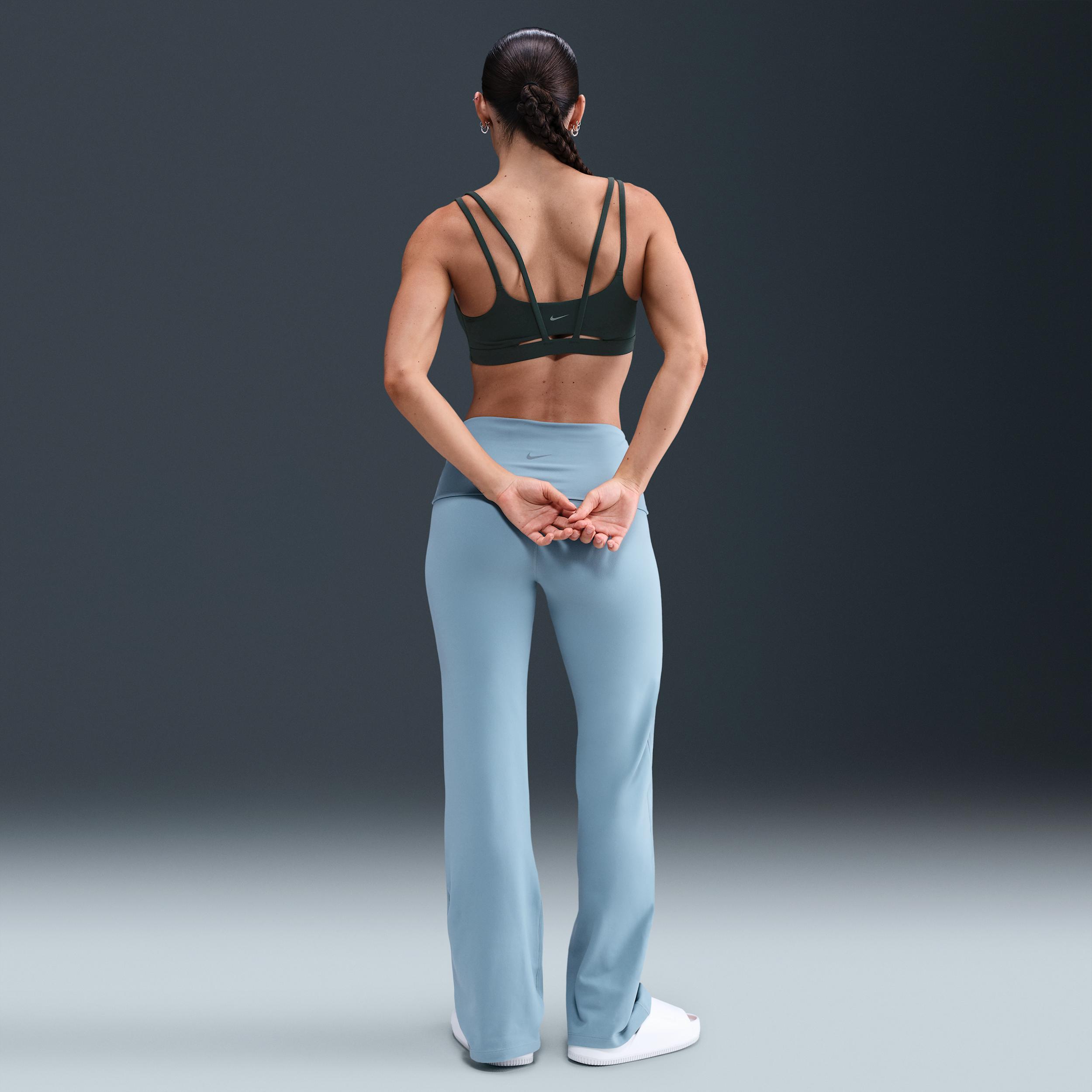 Feel calm and confident all day long in this strappy, gently supportive bra. A sewn-in 1-piece pad offers enhanced coverage and shaping while sweat-wicking technology helps keep you cool and comfortable. The fabric in the body and straps is lightweight, with softness that you can feel with every bend, stretch and shift. With a rounded V-neck to top it off, the bra has a clean finish that goes with any outfit. Benefits:Light support gives you a gentle hold with plenty of freedom thats great for low-impact workouts or all-day comfort. Nike Dri-FIT technology moves sweat away from your skin for quicker evaporation, helping you stay dry and comfortable. [] Product Details:Body:63% nylon/37% spandex. Front and back liner:82% polyester/18% spandex. Pad:100% polyurethane. Pad back fabric:100% polyester. Machine wash. Imported. Style: DO6608; Color: Seaweed/White; Size: M; Gender: Female; Age Group: Adult | Nike Zenvy Strappy Womens Light-Support Padded Sports Bra in Green, Size: Medium | DO6608-391