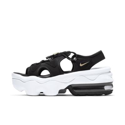 NEXT LEVEL FASHION AND INNOVATION. Heat up the streets in the Nike Air Max Koko Sandal. Designed for women, this pinnacle platform-height sandal adds a splash of colorful Air in the heel. The thick, layered foam midsole provides a smooth and flexible ride. Premium details on the upper add texture and dimension to elevate your look. Benefits: The Nike Air cushioning in the the heel feels comfortable and adds coveted Air Max style. The layered midsole feels soft and delivers underfoot cushioning while its raised height adds a sporty, summertime look. The speed lacing system adds a playful look while making it easier to put them on and take them off. Textile upper feels soft and comfortable with or without socks. Style: CW9705; Color: Black/Anthracite/White/Metallic Gold; Size: 6; Gender: Female; Age Group: Adult | Nike Air Max Koko Women's Sandals in Black, Size: 6 | CW9705-001