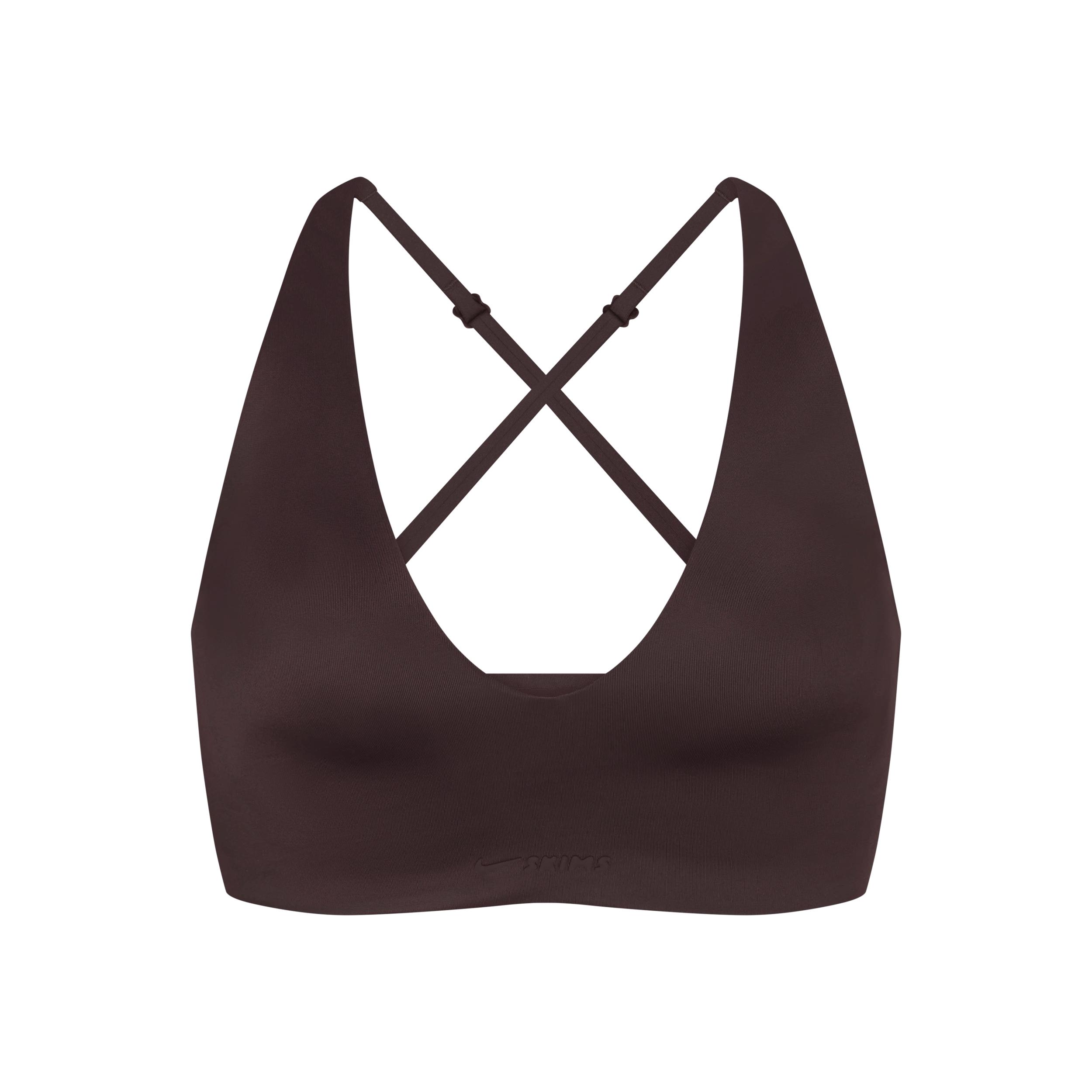 Designed to feel luxuriously light, our quick-drying Shine fabric gives this V-neck bra a sleek look with subtle sheen. Offering light support, it features lightly molded, built-in pads for coverage. The racerback design and adjustable straps finish the look. Benefits:Our sleek Shine fabric is lightweight and breathable with a smoothing fit and subtle sheen. Adjustable straps help you personalize your fit. Racerback design allows for comfortable, unrestricted movement. Lightly molded, built-in pads give you coverage and support. [] Product Details:Pullover style. Elastic underband. Silicone matte logo at center front. 78% polyamide/22% spandex. Machine wash. Imported. Style: BRSPT5191W; Color: NSKM PHOENIX; Size: 4X; Gender: Female; Age Group: Adult | Nike SKIMS Shine Womens V-Neck Bra in Brown, Size: 4X | BRSPT5191W-PHO