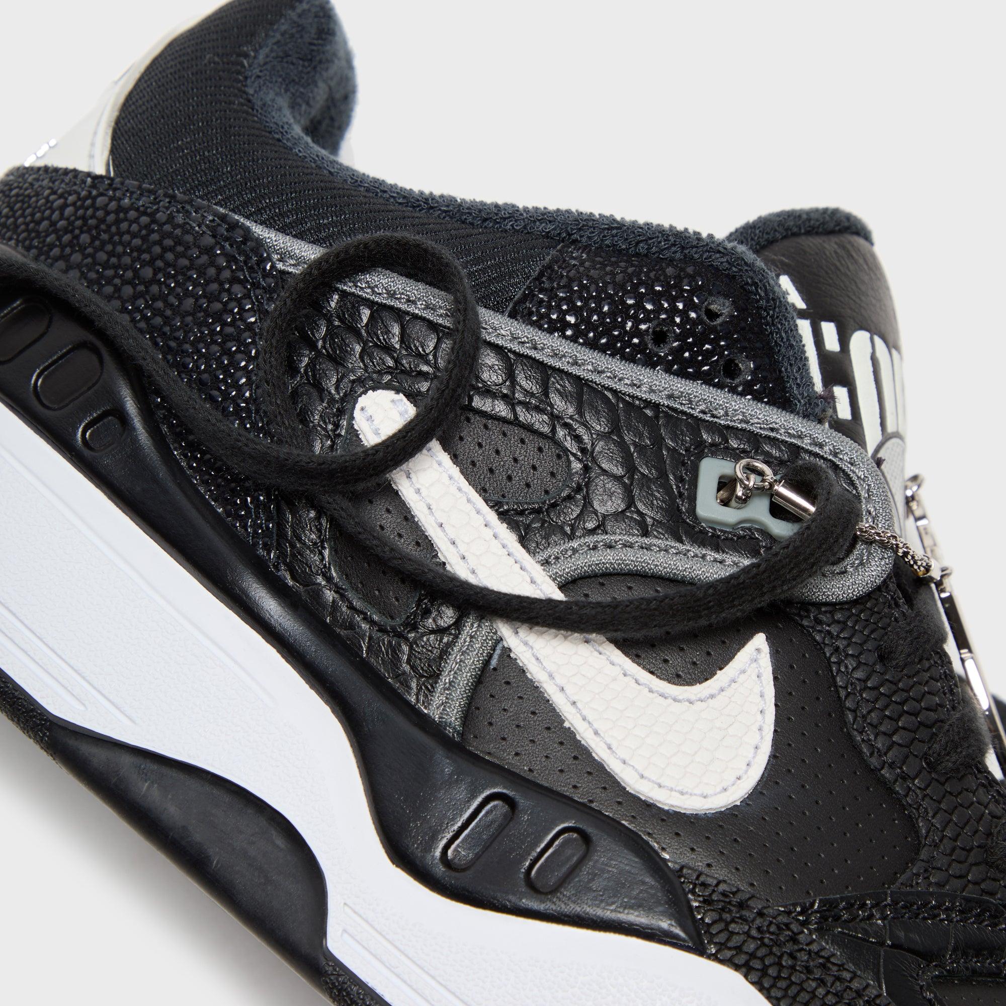 NIGO Air Force 3 Low silhouette Leather upper Croc-textured overlays Padded collar TPU eyelets NIGO embroidery and Air Force 3 branding on mesh tongue Swoosh at lateral sides Flat woven laces with Rubberized mudguard Embossed Nike Air x NIGO co-branding at heel counter Embossed AIR branding on midsole Co-branded insole Rubber outsole Style: nkhf7630-001 Color: Black / White Material: Leather / Croc-texture