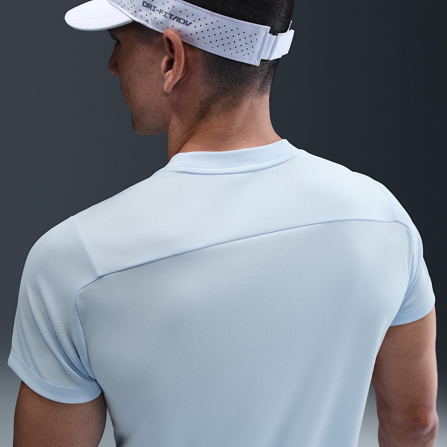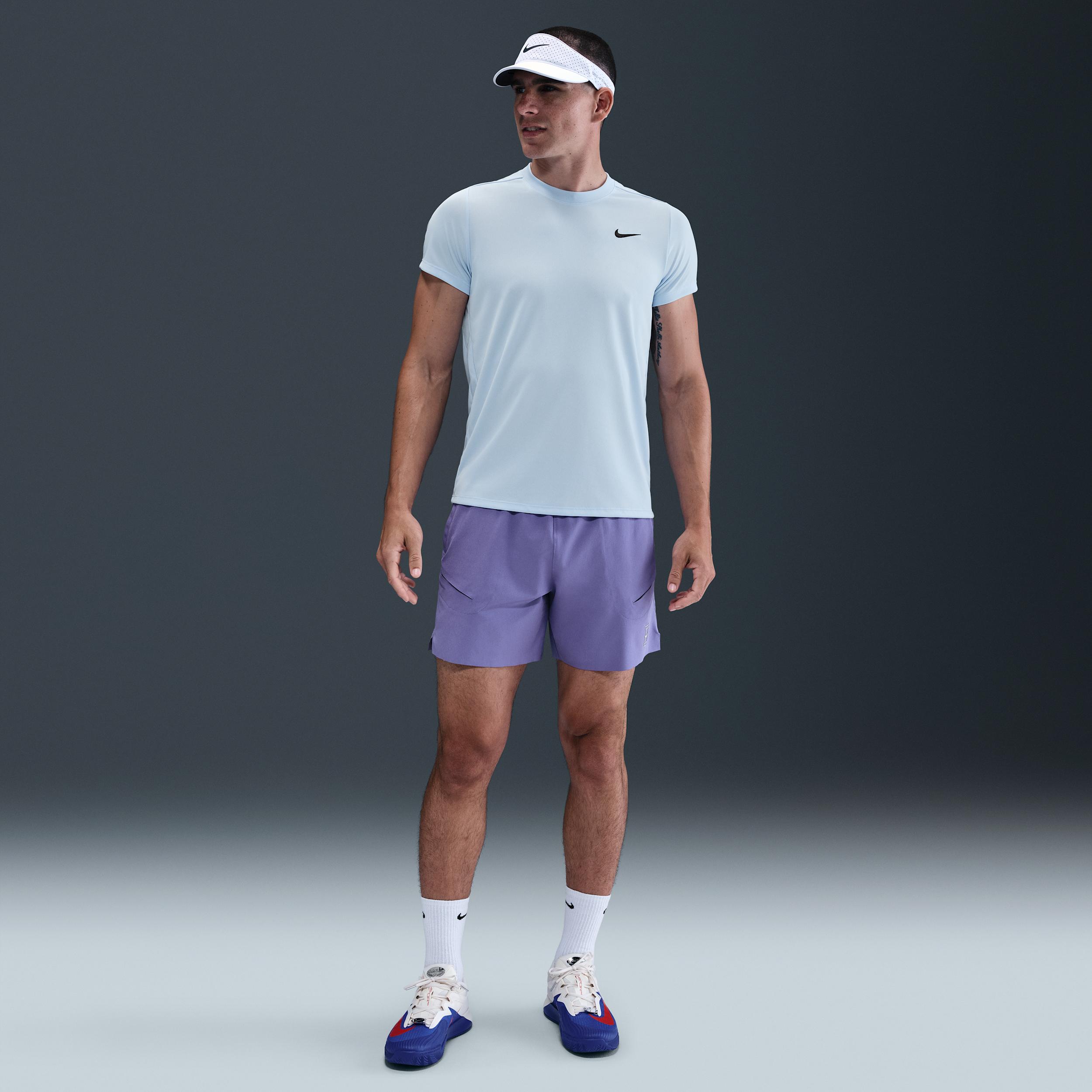 Breathable, stretchy and sweat-wicking, this classic-fit Victory top is ready to perform. The back shoulder seam placement is designed to help you stay extra mobile while you rotate and drive through the ball. Benefits:Nike Dri-FIT technology moves sweat away from your skin for quicker evaporation, helping you stay dry and comfortable. Soft knit is lightweight and breathable. Offset seam construction on the back helps with range of motion through your shot. Side seam gussets provide extra stretch and mobility. [] Product Details:100% polyester. Machine wash. Imported. Style: FZ6921; Color: Celestine Blue/Black; Size: XL; Gender: Male; Age Group: Adult | NikeCourt Victory Men's Dri-FIT Tennis Top in Blue, Size: XL | FZ6921-441