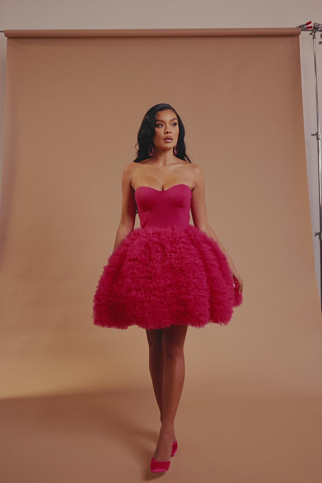 Available In Black And Pink. Ruffle Mini Dress Tube Sweetheart Neckline Padded Bra Cups Back Zipper Lined Slight Stretch Self 1: 65% Rayon 30% Nylon 5% Spandex Self 2: 100% Polyester Contrast:100% Polyester Lining : 95% Polyester 5% Spandex Imported