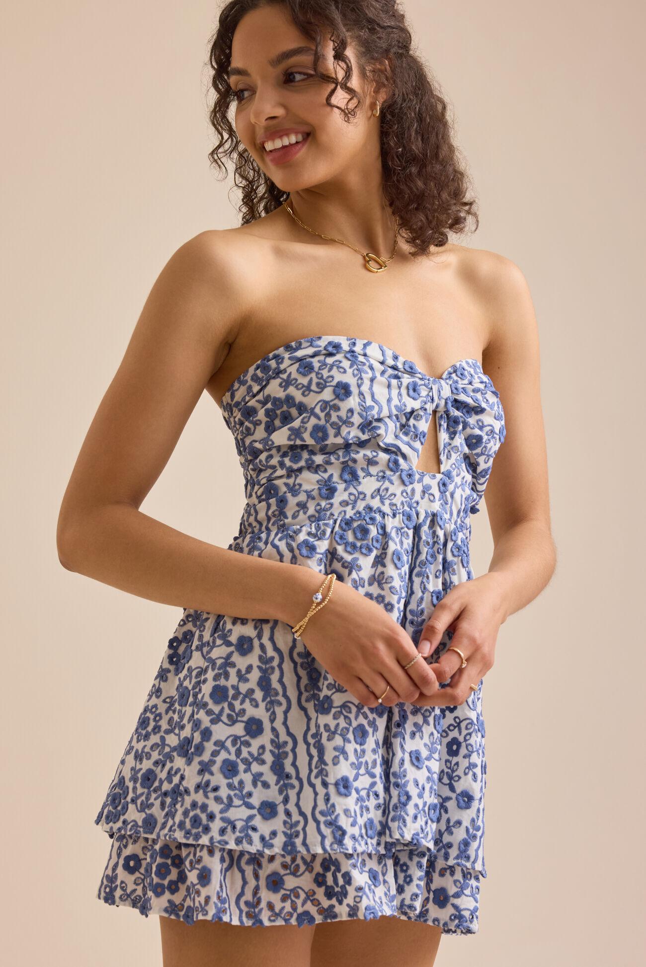 This eyelet mini romper is a summer dream! With delicate eyelet details, a playful keyhole cutout, and charming ruffles, it's the perfect combination of sweet and stylish.