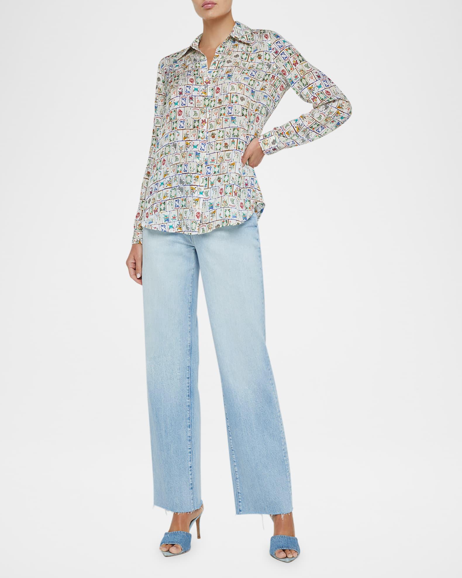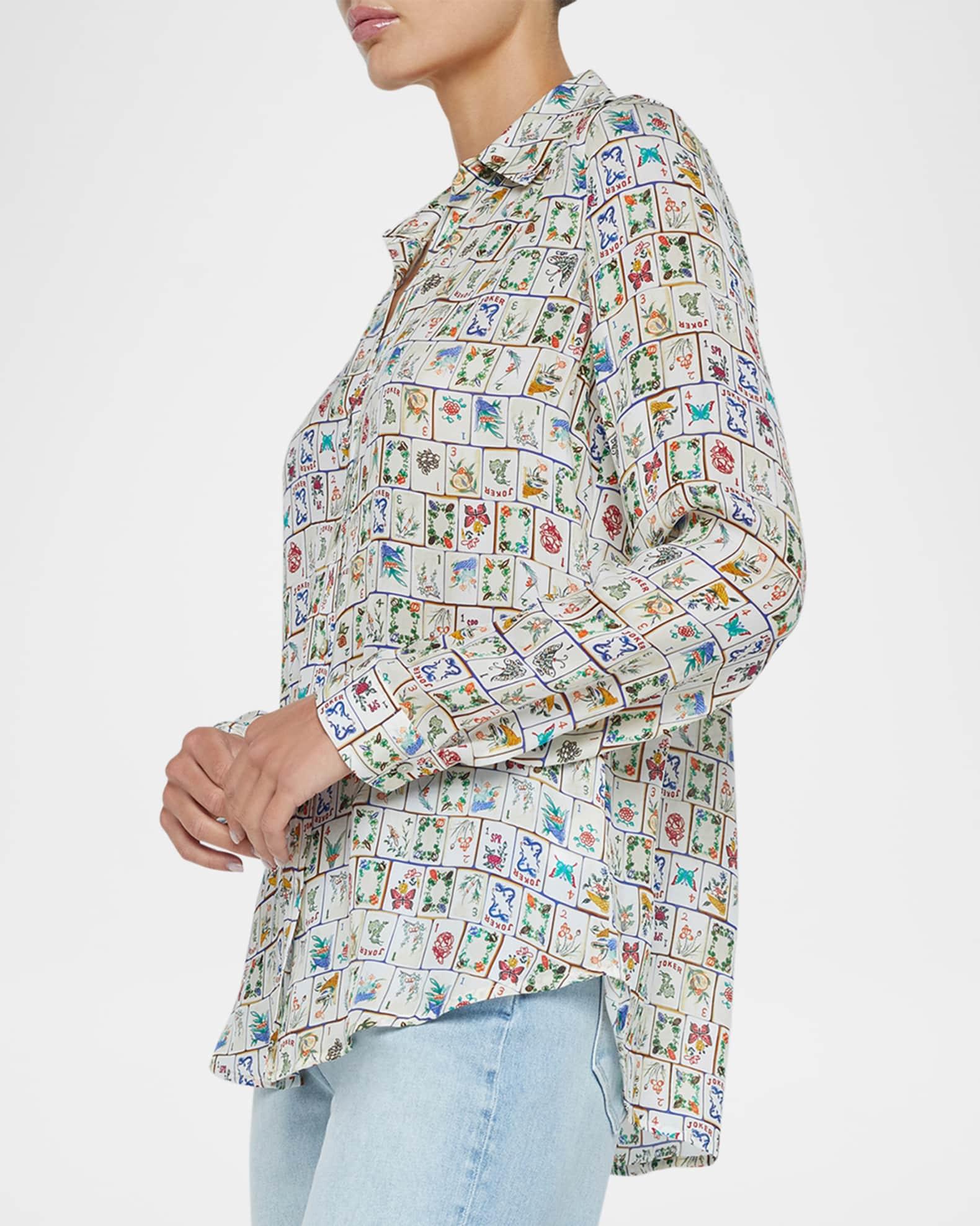 Nina Mahjong Button-Front Silk Blouse