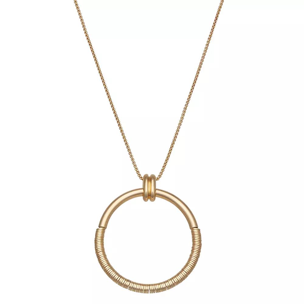 Add a sleek touch to your style with the Nine West 34-inch ring pendant necklace. Its modern, minimalist design makes it a versatile staple. Click on this JEWELRY & WATCHES GUIDE to learn about fit, styles, materials and more! Add a sleek touch to your style with the Nine West 34-inch ring pendant necklace. Its modern, minimalist design makes it a versatile staple. Click on this JEWELRY & WATCHES GUIDE to learn about fit, styles, materials and more! FEATURES Drop length: 1.97 in. Chain length: 34 in. + 3-in. extender Clasp: slider Nickel safe Metal: alloy Plating: gold tone Finish: polished Not appropriate for children 14 years old and younger. Size: One Size. Gender: female. Age Group: adult.