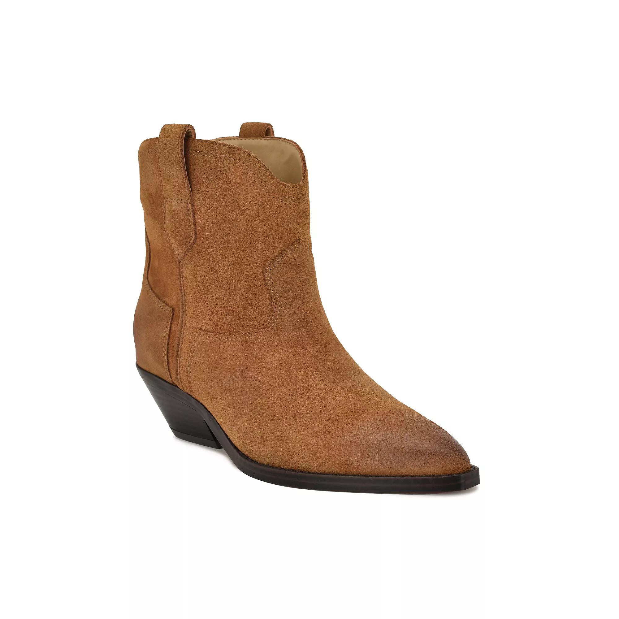 Infuse your wardrobe with the chic sophistication of Nine West. These suede cowboy ankle boots effortlessly combine style and comfort, making them your ideal companion for any occasion, whether it's a day at the office or a night out on the town. Click this FOOTWEAR GUIDE to find the perfect fit and more! - https://www.kohls.com/feature/shoesizeguide.jsp. FEATURES: Pointy toe design for a sleek silhouette, Block heel for added stability and comfort. DETAILS: Pull-on closure, Pointed toe, Heel height: 1.57-in., Imported. FIT & SIZE: Ankle height, Boot shaft height: 5.94-in., Boot shaft circumference: 11.42-in. MATERIAL & CARE: Suede upper, Textile/synthetic lining, Synthetic outsole, Spot clean. Size: 10. Color: Dark Natural Suede. Gender: female. Age Group: adult.