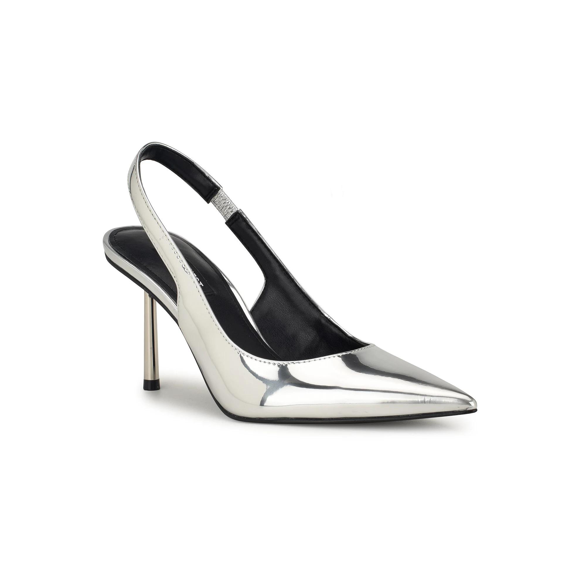 Dress to impress wearing these womens Denaye pointy toe stiletto dress pumps from Nine West.Click this FOOTWEAR GUIDE to find the perfect fit and more! Dress to impress wearing these womens Denaye pointy toe stiletto dress pumps from Nine West.Click this FOOTWEAR GUIDE to find the perfect fit and more! DETAILS Faux Patent Leather, textile & man made upper Man Made lining Man made outsole Pointed toe Slip-on Heel height: 2.95 in. Spot clean Imported Size: 7. Color: Silver. Gender: female. Age Group: adult.