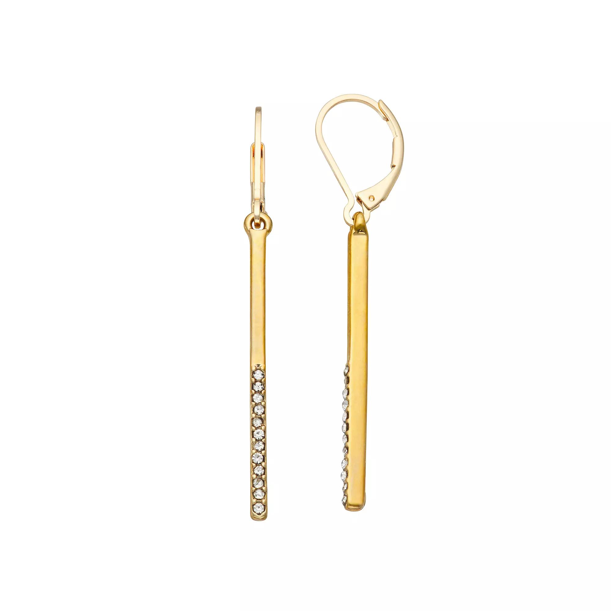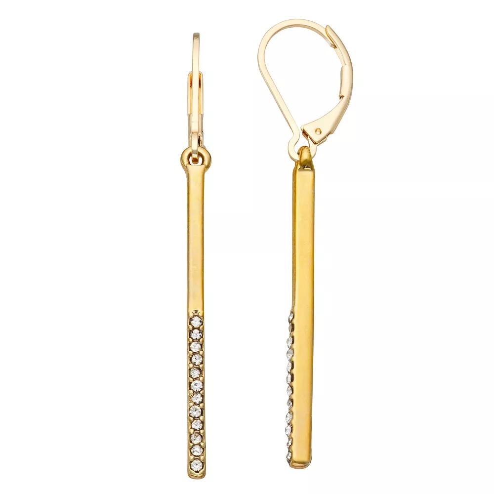 Dress up your everyday look with these gold tone and simulated crystal bar drop earrings from Nine West. Dress up your everyday look with these gold tone and simulated crystal bar drop earrings from Nine West. Metal: alloy Backings: leverback Plating: gold tone Finish: polished Nickel safe Material: glass Length: 2.05 in. Not appropriate for children 14 years old and younger. Size: One Size. Color: White. Gender: female. Age Group: adult. Material: Gold Plate.