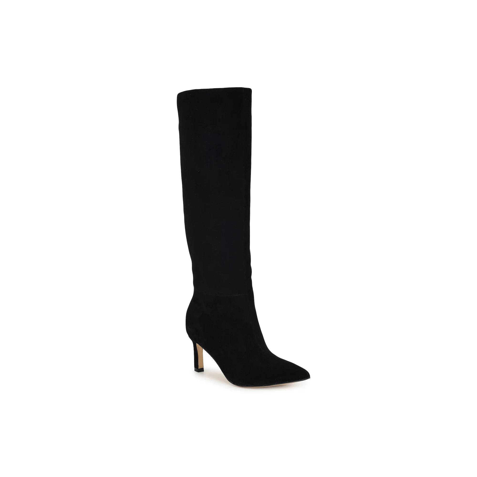 Step into style and comfort with these chic wide calf knee-high dress boots from Nine West. Perfect for pairing with your favorite dresses or jeans, they’ll keep you feeling fabulous while putting a little pep in your step. Click this FOOTWEAR GUIDE to find the perfect fit and more! - https://www.kohls.com/feature/shoesizeguide.jsp. FEATURES: Wide calf design. FIT & SIZE: Boot shaft height: 15.5-in., Boot shaft circumference: 15.8-in., Knee high boot shaft detail. MATERIAL & CARE: Leather, suede upper, Synthetic midsole, lining & outsole, Spot clean. DETAILS: Pointed toe, Pull-on closure, Flat sole - no defined tread pattern, Heel height: 2.5-in., Imported. Size: 9. Color: Black Suede. Gender: female. Age Group: adult.