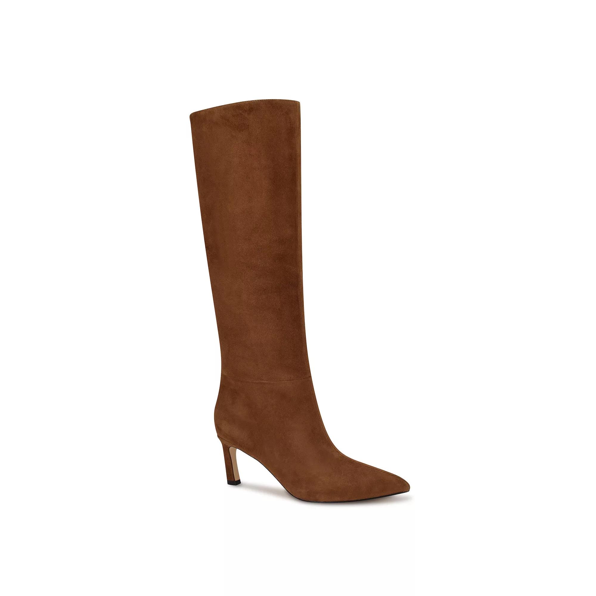 Step into style and comfort with these chic wide calf knee-high dress boots from Nine West. Perfect for pairing with your favorite dresses or jeans, they’ll keep you feeling fabulous while putting a little pep in your step. Click this FOOTWEAR GUIDE to find the perfect fit and more! - https://www.kohls.com/feature/shoesizeguide.jsp. FEATURES: Wide calf design. FIT & SIZE: Boot shaft height: 15.5-in., Boot shaft circumference: 15.8-in., Knee high boot shaft detail. MATERIAL & CARE: Leather, suede upper, Synthetic midsole, lining & outsole, Spot clean. DETAILS: Pointed toe, Pull-on closure, Flat sole - no defined tread pattern, Heel height: 2.5-in., Imported. Size: 9.5. Color: Cognac Suede. Gender: female. Age Group: adult.