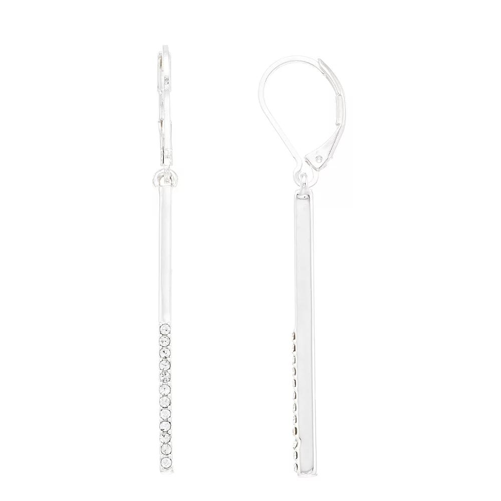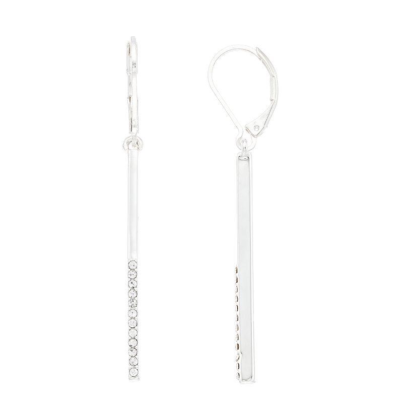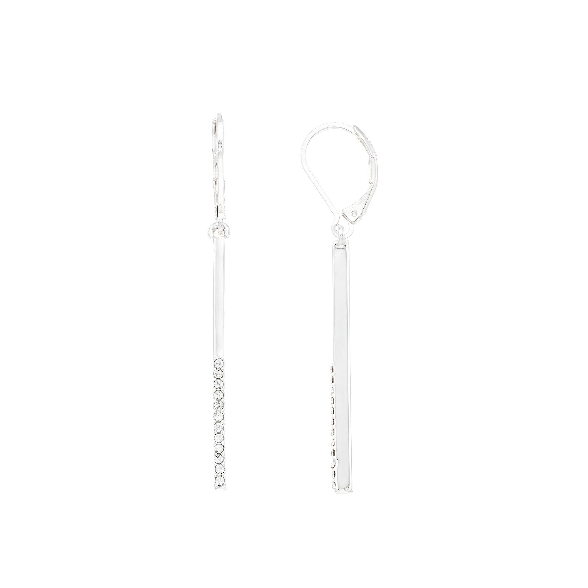 Pave-set crystals lend striking style to these stick drop earrings from Nine West. Pave-set crystals lend striking style to these stick drop earrings from Nine West. EARRING DETAILS 2.05 Leverback Silver toneNot appropriate for children 14 years old and younger. Size: One Size. Gender: female. Age Group: adult.