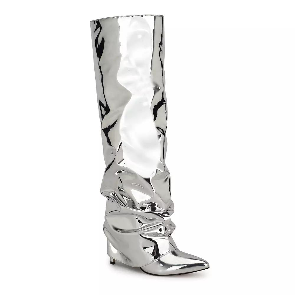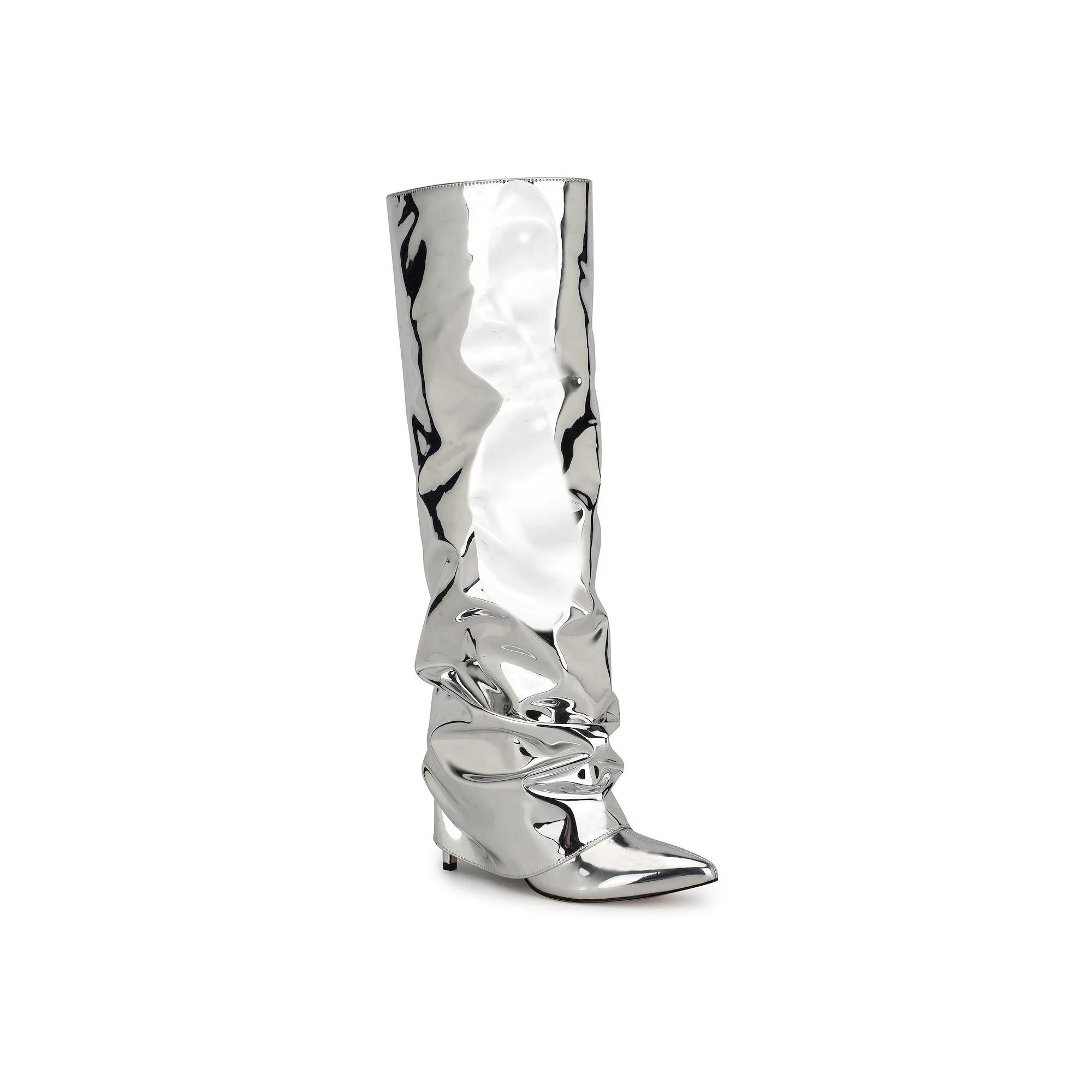 Add a new style to your footwear collection with these Nine West Randee Womens Pointy Toe Slouchy Dress Boots.Click these FOOTWEAR GUIDE to find the perfect fit and more! FEATURES Knee high boot shaftDETAILS Synthetic outsole Faux leather & synthetic upper Textile/Synthetic lining Pointed toe Pull-on Boot shaft height: 15.94 in. Boot shaft circumference: 14.17in. Spot clean Imported Size: 8.5. Color: Silver Mirror Metallic. Gender: female. Age Group: adult.