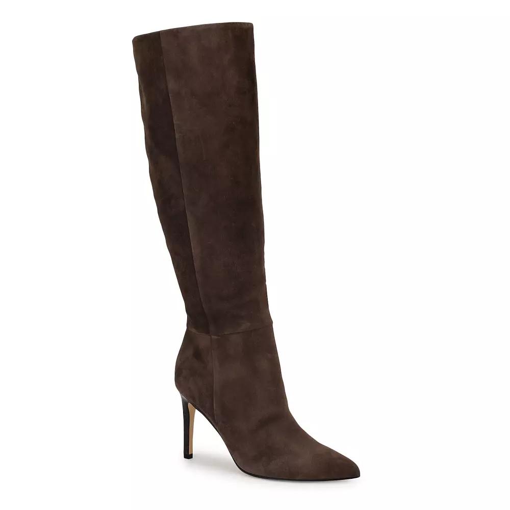 Update your fall looks with these chic style of these Nine West Richy women's leather knee-high boots. Click this FOOTWEAR GUIDE to find the perfect fit and more! - https://www.kohls.com/feature/shoesizeguide.jsp. SHOE FEATURES: Tall shaft design, Sleek stiletto heel. SHOE CONSTRUCTION: Leather upper, Manmade lining and outsole. SHOE DETAILS: Pointed toe, Zipper closure, Padded footbed, 3.4-in. heel, 15.94-in. shaft, 14.76-in. circumference. Size: 10. Color: Dark Brown Suede. Gender: female. Age Group: adult.