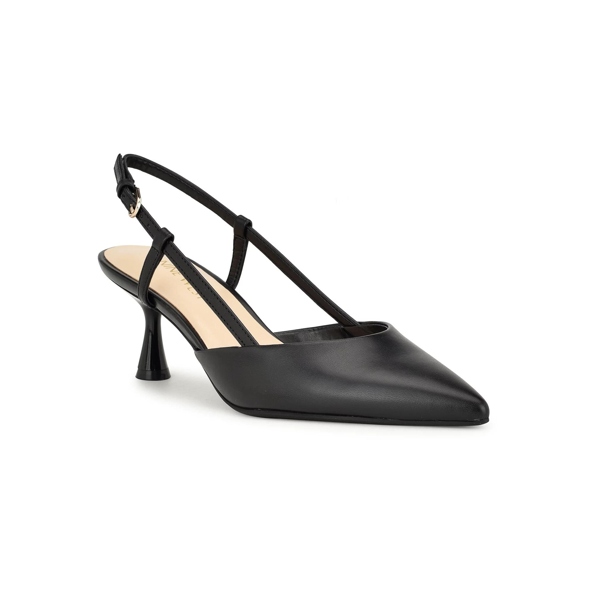 Step into style with these Nine West Rowen womens slingback dress pumps.Click this FOOTWEAR GUIDE to find the perfect fit and more! Step into style with these Nine West Rowen womens slingback dress pumps. Click this FOOTWEAR GUIDE to find the perfect fit and more! FEATURES Slingback strap Kitten heelDETAILS Faux leather, textile upper Manmade lining and outsole Pointed toe Buckle closure 2.17-in. heel Spot clean Imported Size: 5.5. Color: Black. Gender: female. Age Group: adult.