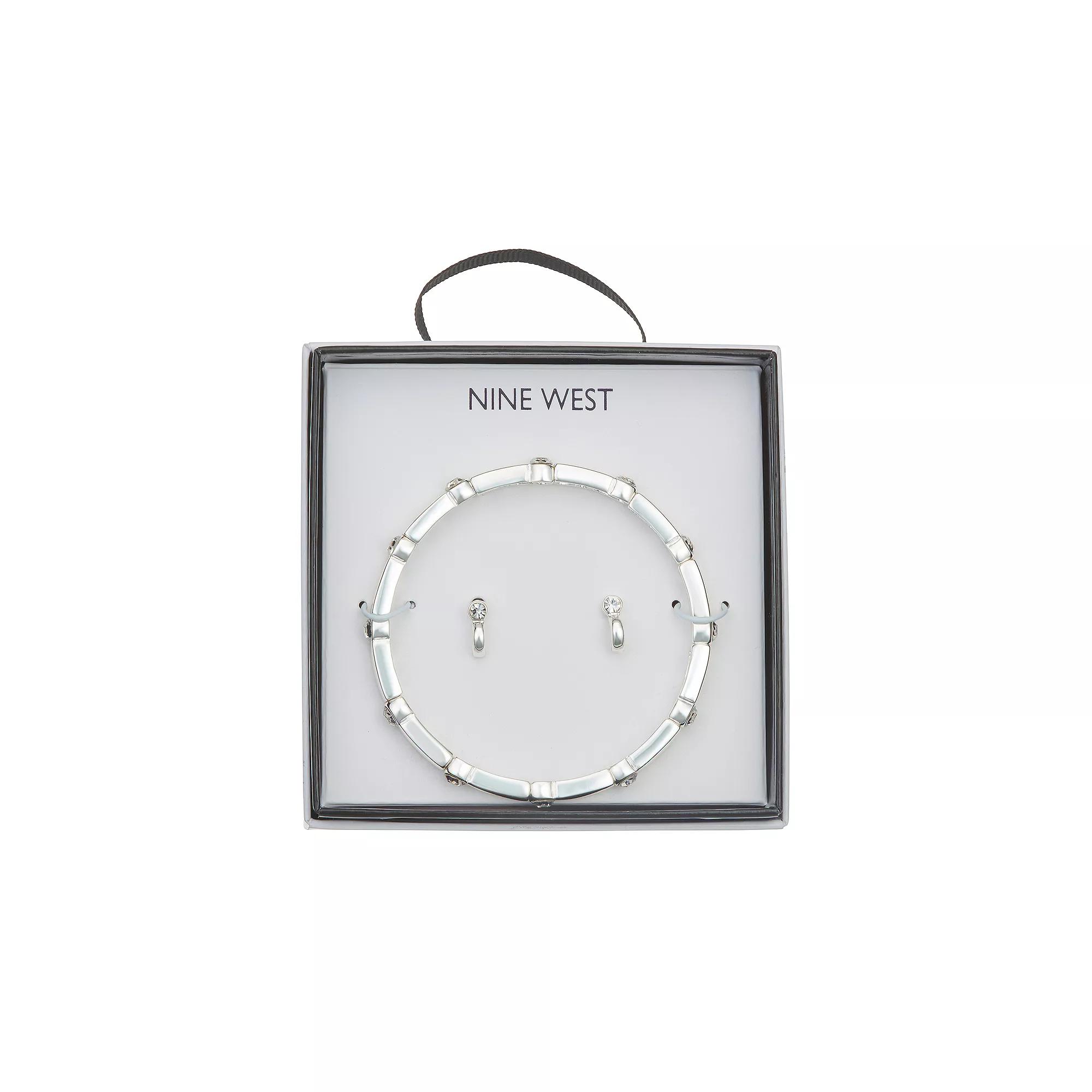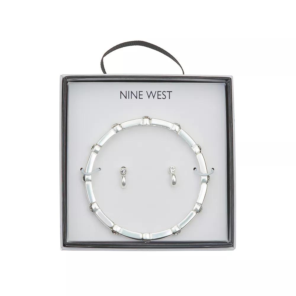 Add this Nine West Silver Tone Skinny Stretch Bracelet & Stud Earring Set to your collection. Click on this JEWELRY & WATCHES GUIDE to learn about fit, styles, materials and more! Add this Nine West Silver Tone Skinny Stretch Bracelet & Stud Earring Set to your collection. Click on this JEWELRY & WATCHES GUIDE to learn about fit, styles, materials and more! FEATURES Includes: bracelet and earrings Bracelet length: 7.5 in. Earrings: 11 mm. Backings: post Nickel safe Metal: alloy Material: glass Plating: silver tone Finish: polished Packaging: boxed Imported Not appropriate for children 14 years old and younger. Size: One Size. Gender: female. Age Group: adult.