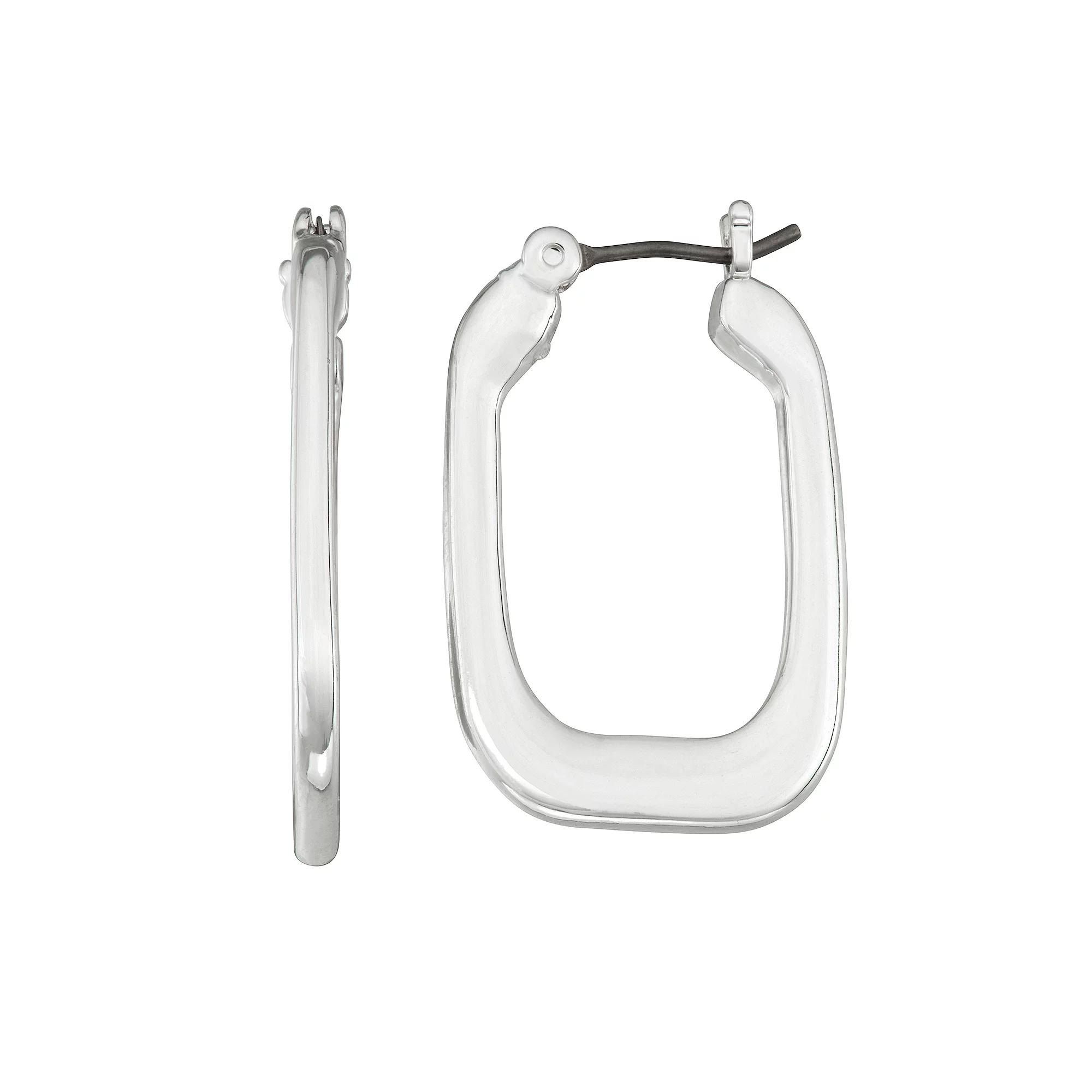 Add a vintage feel with these wide flat square hoop earrings from Nine West. Add a vintage feel with these wide flat square hoop earrings from Nine West. Metal: alloy Backings: click-it Finish: polished Length: .9 in Not appropriate for children 14 years old and younger. Size: One Size. Color: Silver. Gender: female. Age Group: adult.