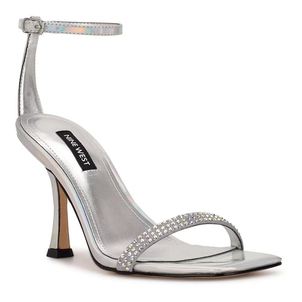 Step out in chic style with these Nine West Yess womens ankle strap dress sandals.Click this FOOTWEAR GUIDE to find the perfect fit and more! Step out in chic style with these Nine West Yess womens ankle strap dress sandals. Click this FOOTWEAR GUIDE to find the perfect fit and more! SANDAL FEATURES Ankle strap for a secure fit Sleek stiletto heelSANDAL CONSTRUCTION Faux patent leather, synthetic, textile upper Manmade lining and outsoleSANDAL DETAILS Open toe Buckle closure 3.54-in. heel Size: 9.5. Color: Iridescent Silver. Gender: female. Age Group: adult.