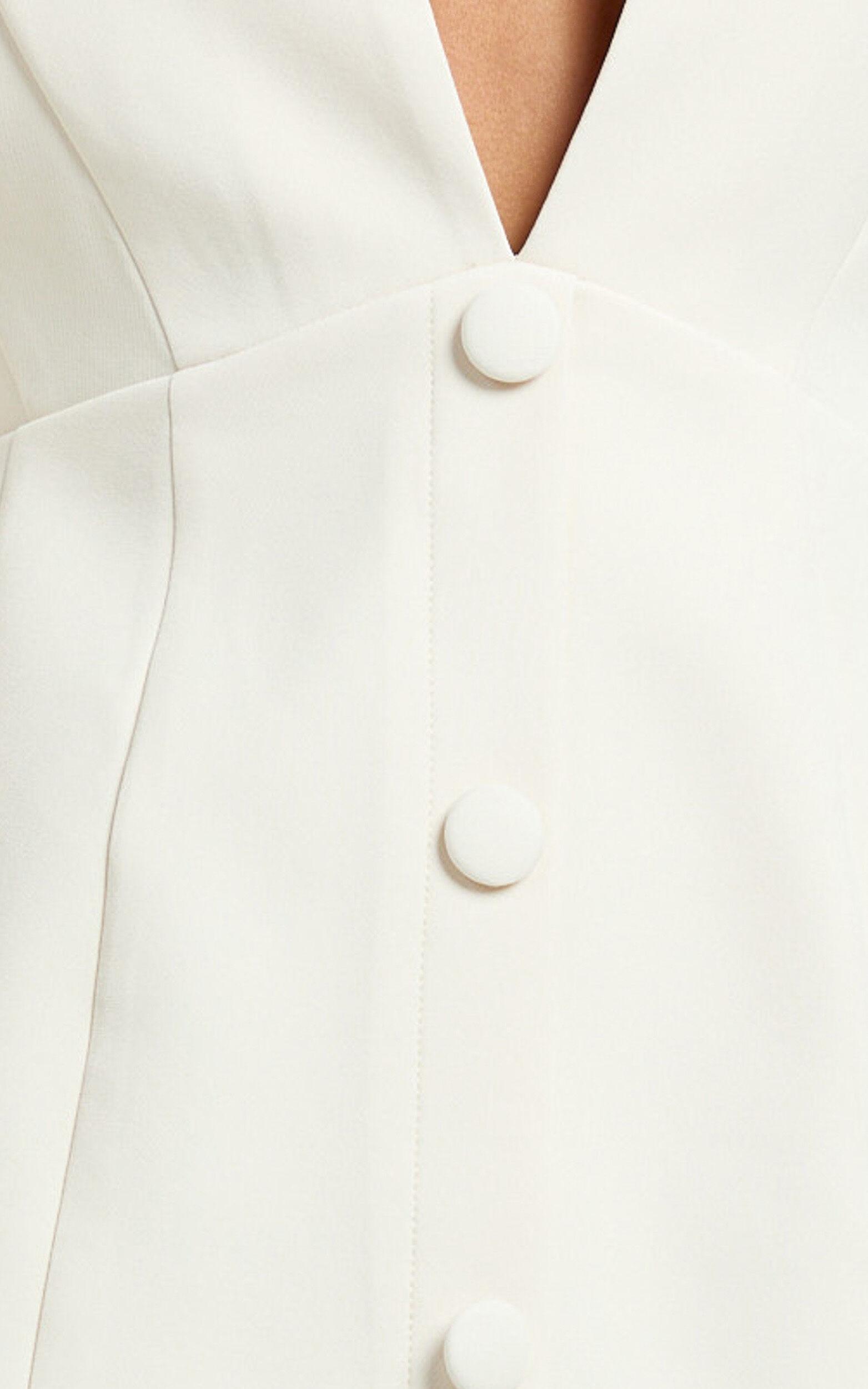 Command attention in the Ninette Mini Dress, a V-neck tulip hem blazer dress in chic cream that's equal parts sophisticated and fun. Inspired by trending silhouettes like hourglass jackets and belted oversized styles, this mini dress flatters your curves with a structured waistline and playful tulip-hem detail. Pair it effortlessly with strappy heels or heeled thong sandals to achieve that perfect after-hours glam look.Whether you're brunching with friends or dressing to impress for an evening out, the Ninette Mini Dress keeps heads turning from day to night. Enhance your everyday elegance by accessorizing with delicate gold jewellery, or layer it under leopard-print outerwear for a bold statement when temperatures drop. Versatile and stylish, it'll make sure all eyes stay on you!Product Details:Zips and buttonsInner liningA-line silhouetteMid weight wovenV-neck necklineWorkwear appropriateMini lengthLong sleevesPolyester fabricMaterial and CareMain Fabric: 92% Polyester, 8% Spandex Lining: 96% Polyester, 4% SpandexLow Stretch