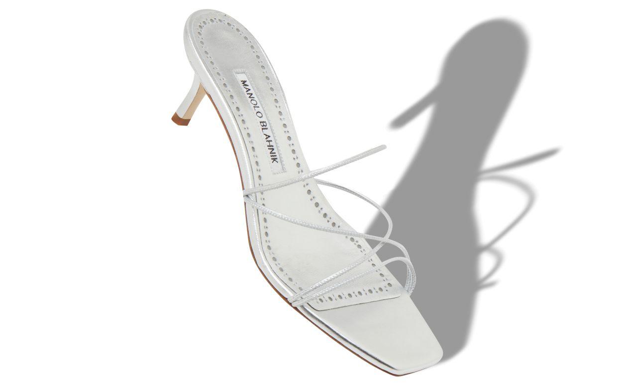 NINFEMU Silver Nappa Leather Open Toe Mules