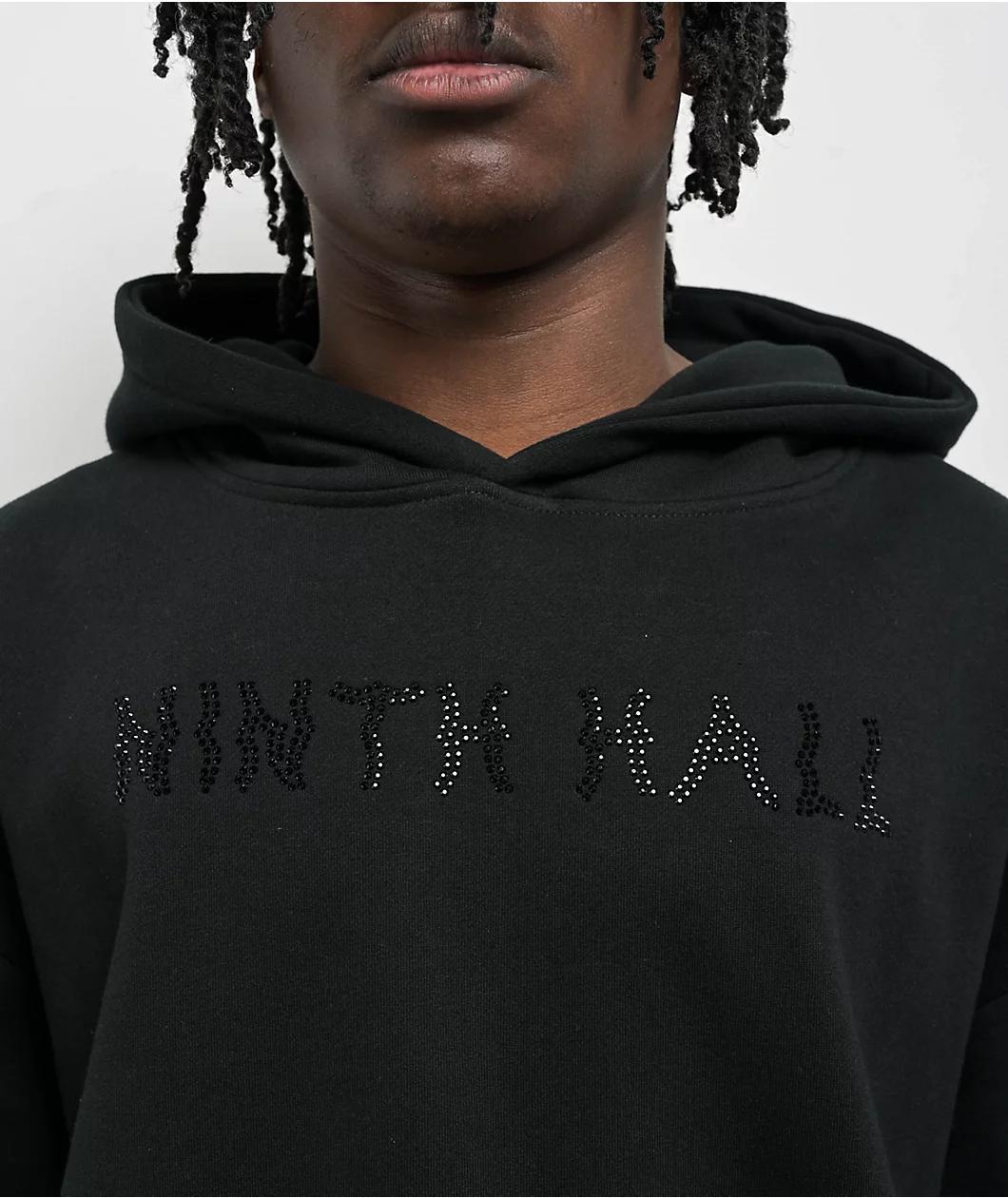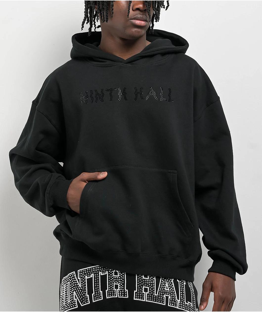 Add a luxurious accent to any outfit with the Faux Rhinestones hoodie from Ninth Hall, available in a solid black cotton blend. Sporting horizontal Rhinestone branding across the chest and vertical Rhinestone branding on the back, the warm sweatshirt