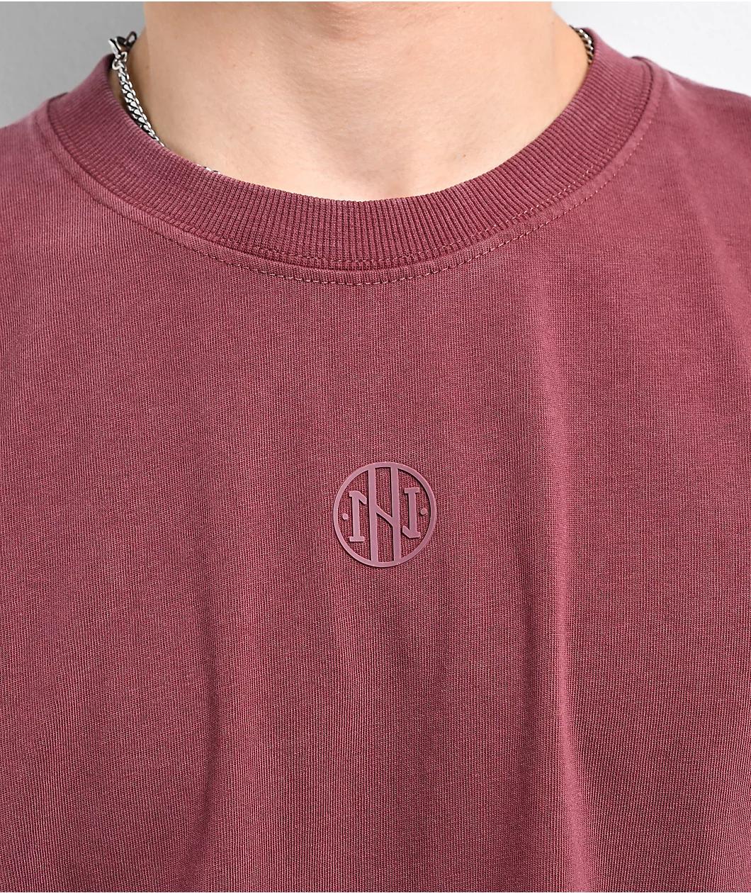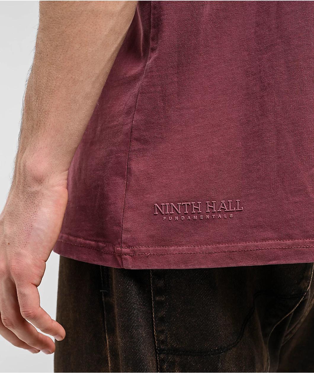 From the Ninth Hall Fundamentals line, this burgundy t-shirt features a loose, boxy silhouette. Made using breathable midweight cotton fabric, the minimalist design has a raised logo graphic on the chest, a soft rib-knit collar, and double stitched hems