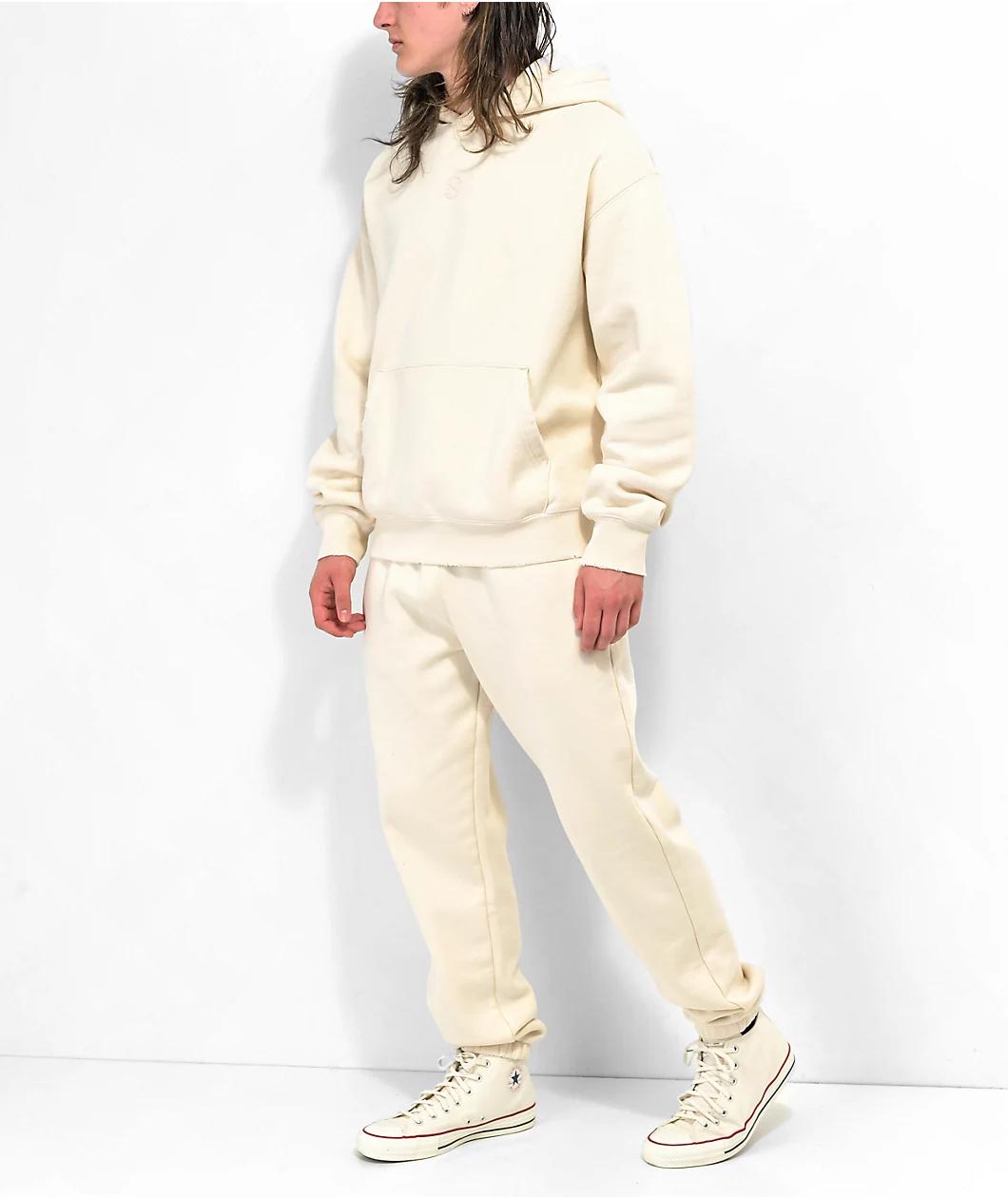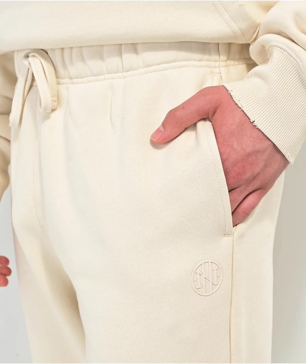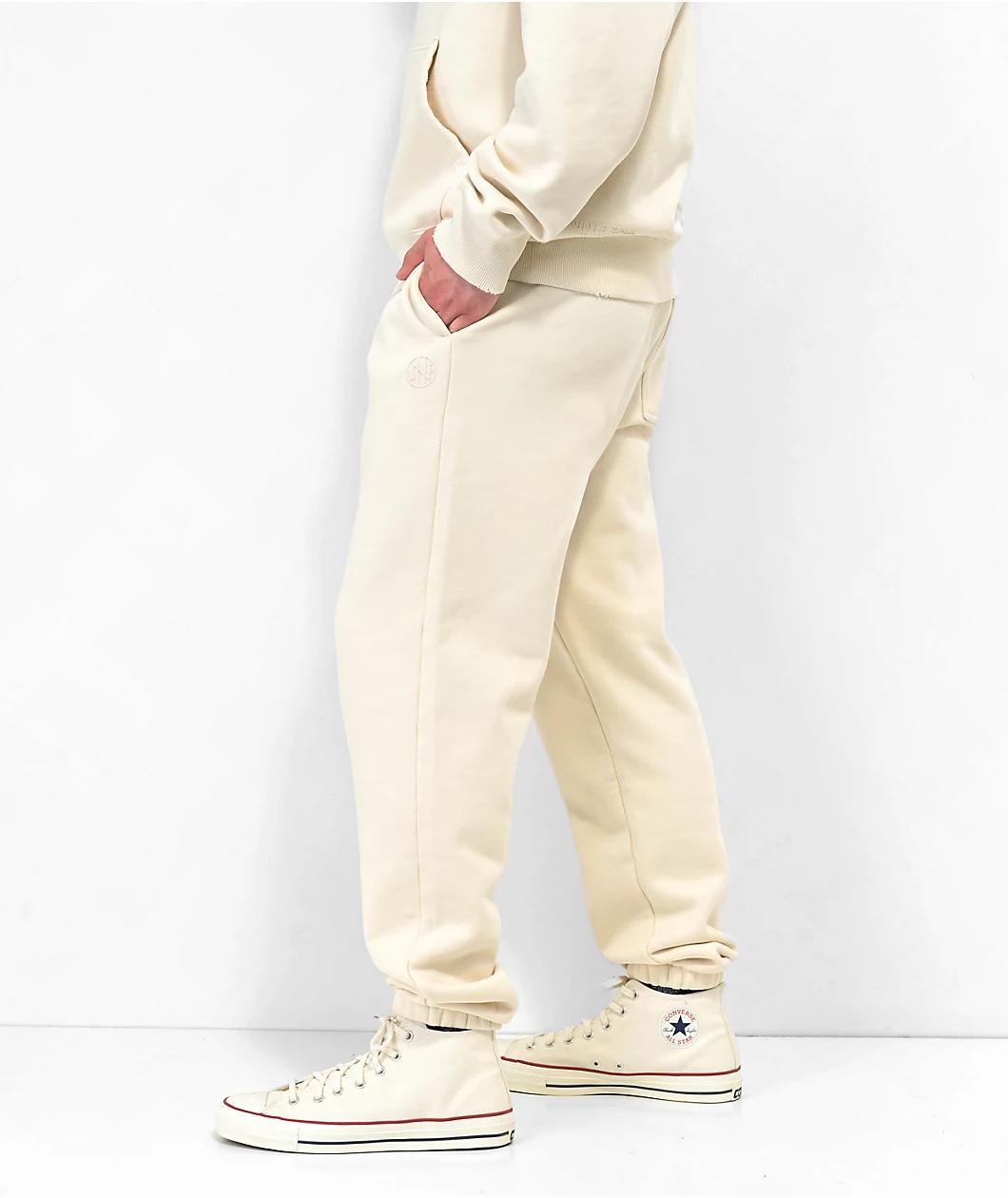 Part of the Ninth Hall Fundamentals collection, these versatile cream sweatpants are made using a soft organic cotton blend for maximum comfort. This minimalist style features a relaxed fit, with cinched ankles for a street-ready look. With a simple 3-poc