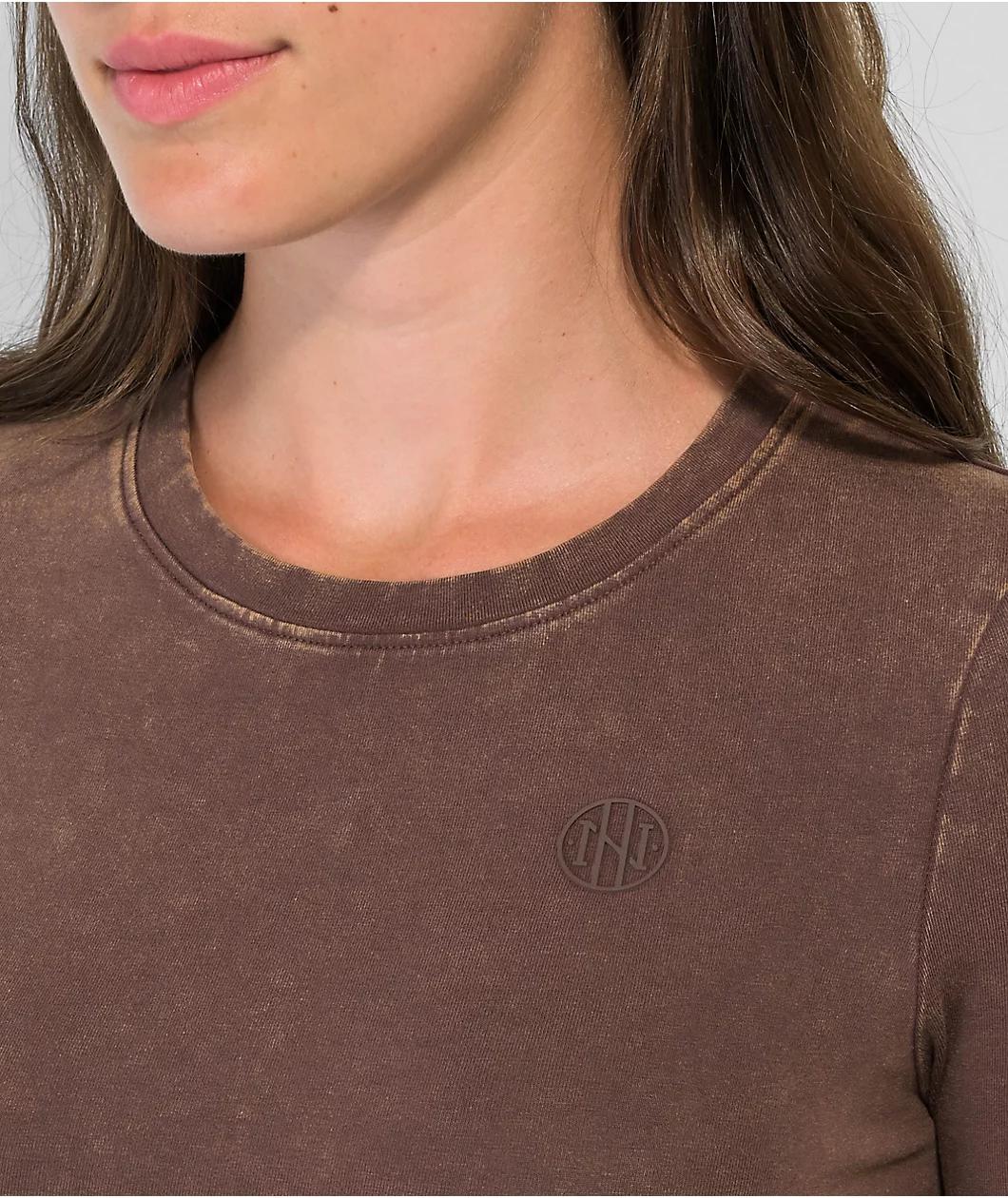 Get back to basics with the Estie t-shirt from the Ninth Hall Fundamentals collection in a brown wash colorway, made of a soft cotton blend for all day comfort. In a long sleeve, crop construction, this style boasts only a small rubber brand logo on the l