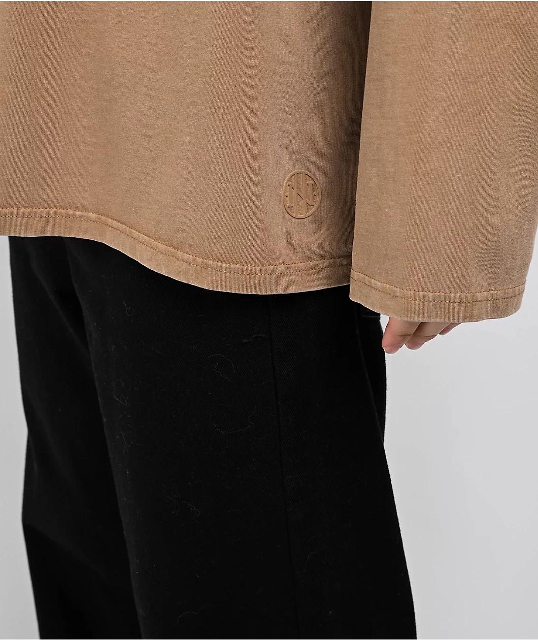 Made from a premium cotton construction, the Ninth Hall Fundamentals long sleeve t-shirt offers a roomy oversized fit for an elevated basic look. Treated with a unique garment dye, this brown long sleeve tee provides a neutral colorway to any minimalist o