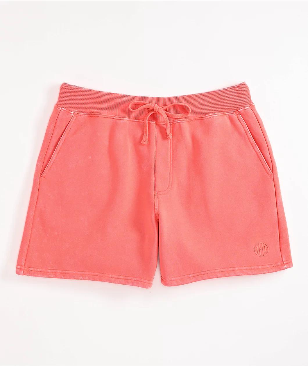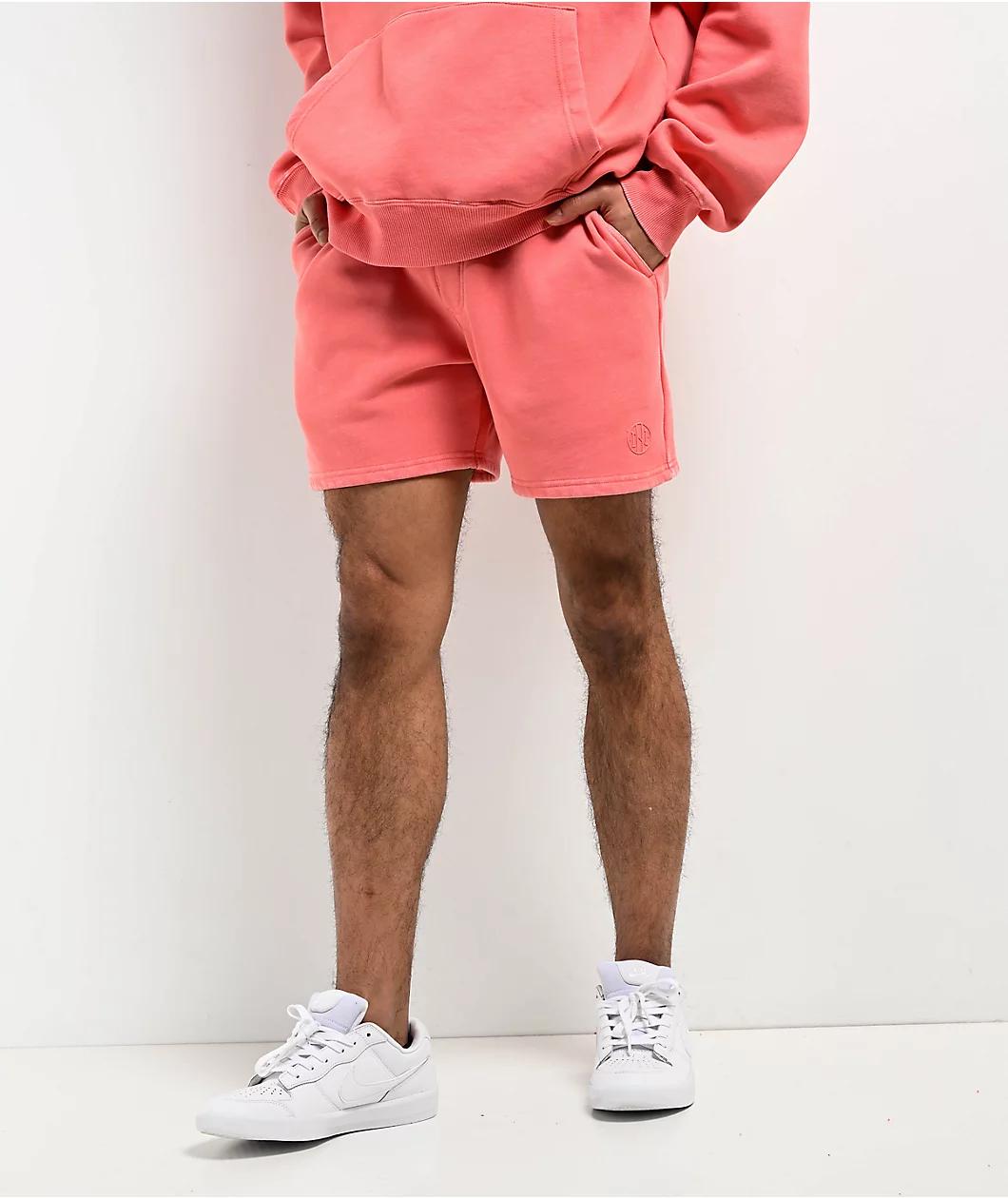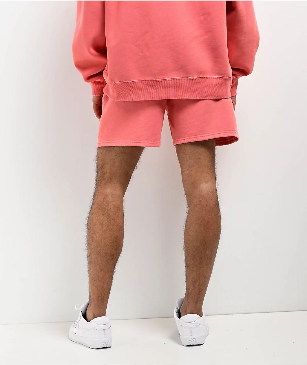 Ninth Hall Fundamentals presents the Rose sweat shorts in a pink washed colorway. Above the left back pocket, there is silicone branding as well as above the left leg opening.