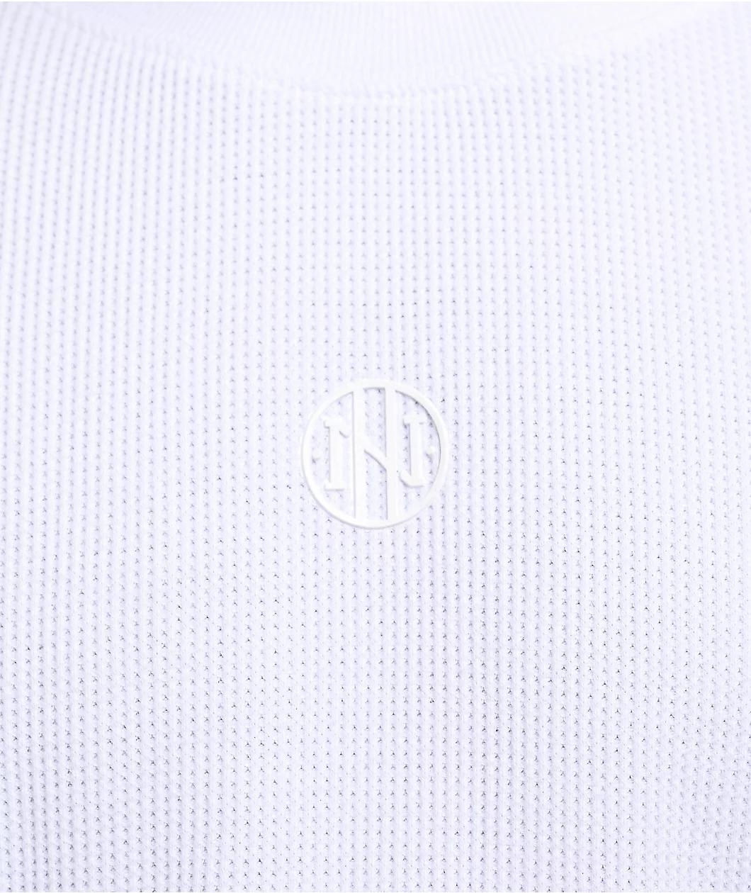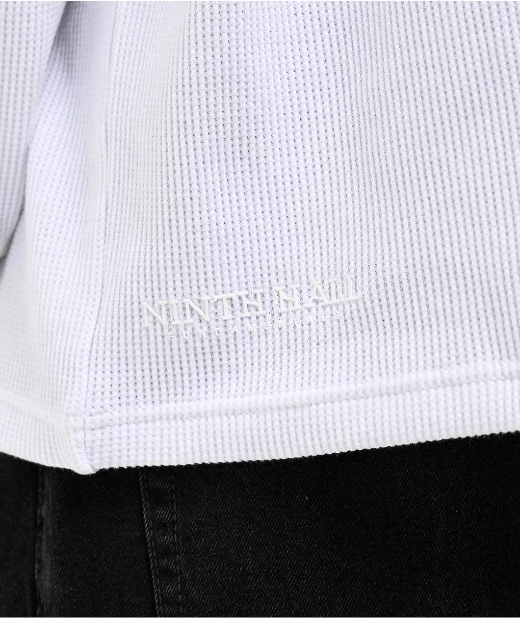 Ninth Hall Fundamentals introduces the boxy long sleeve t-shirt in a crisp white colorway perfect for any casual outfit. A thermal waffle-knit is designed to be warm and comfortable, and the ribbed collar and sleeve cuffs trap in hot air to further e