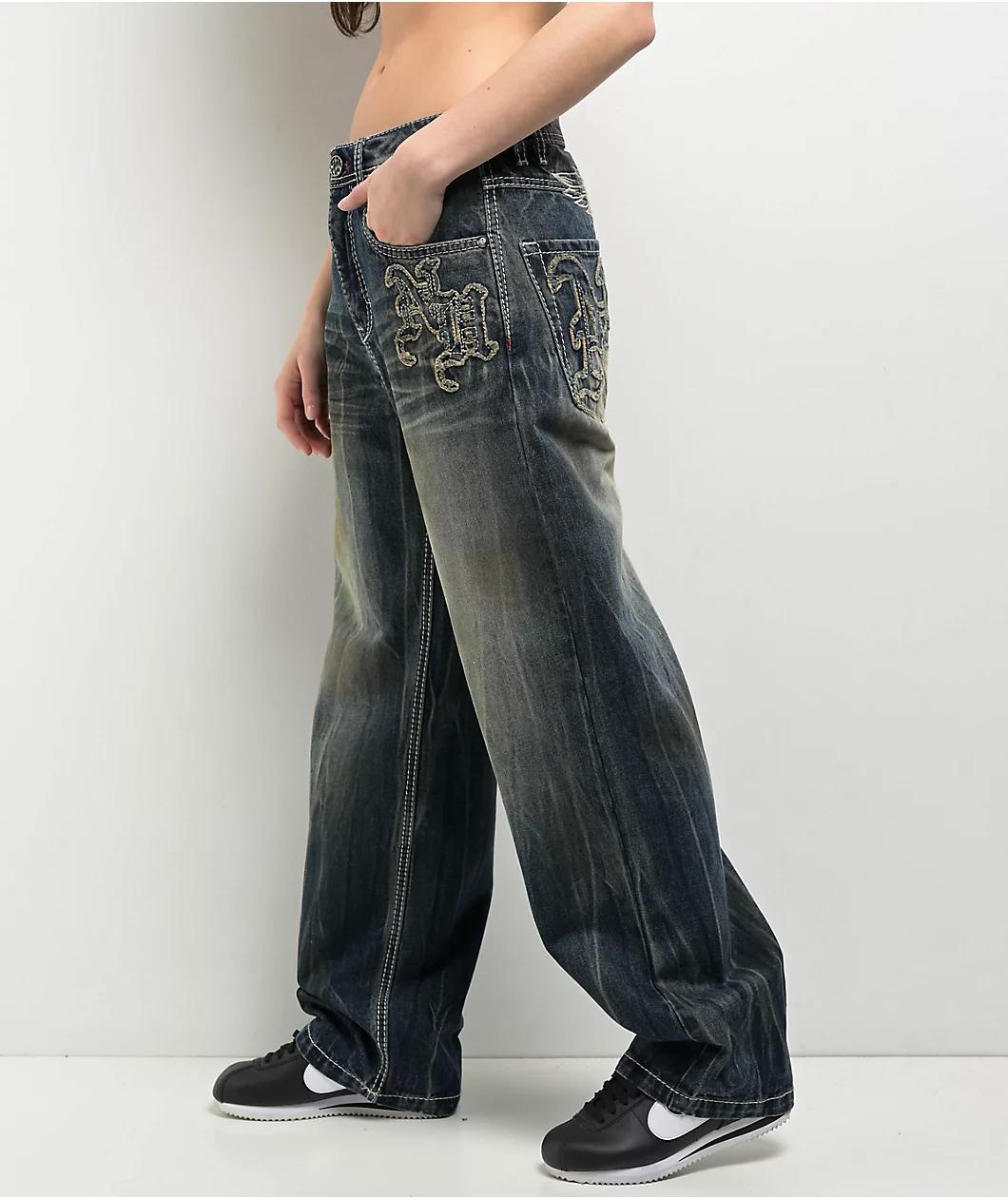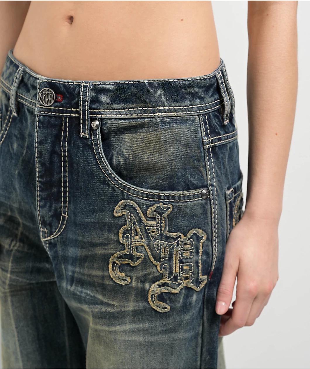 Implementing a special crinkle wash throughout for a faded, thrifted aesthetic, Ninth Hall offers the Idle jeans in a relaxed straight leg fit and a dark blue colorway for a timeless vibe. Framed by white contrast stitching throughout, the stylish st