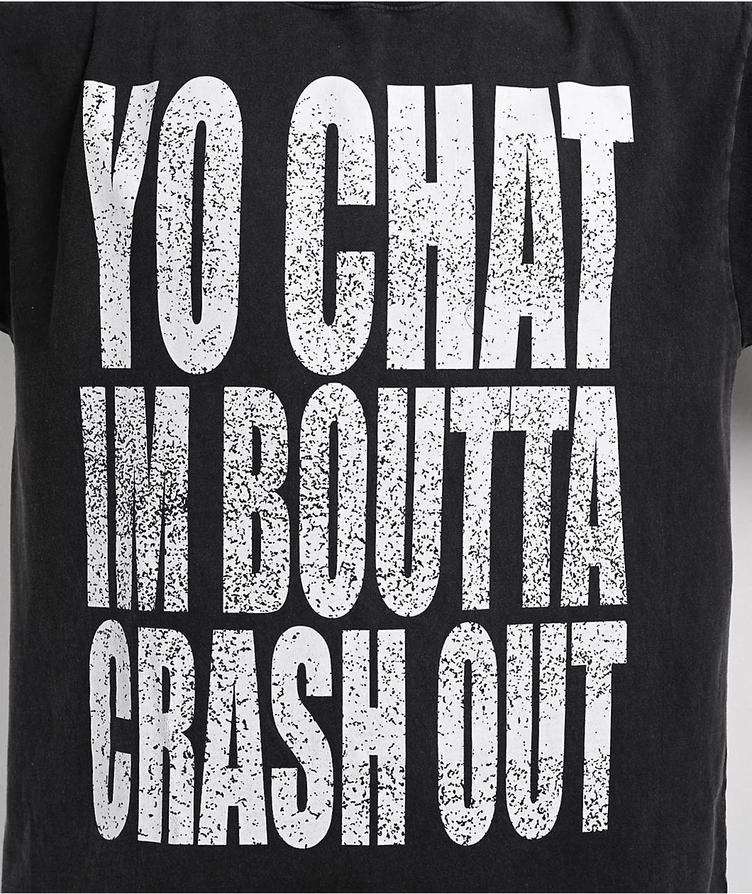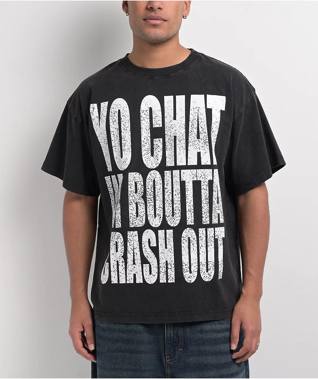 Inspired by internet streaming slang, Ninth Hall welcomes the Say It To My Face t-shirt in a solid black cotton construction with a vintage wash treatment and intentional cracks in the printed graphic. Utilizing bold white block lettering, the front