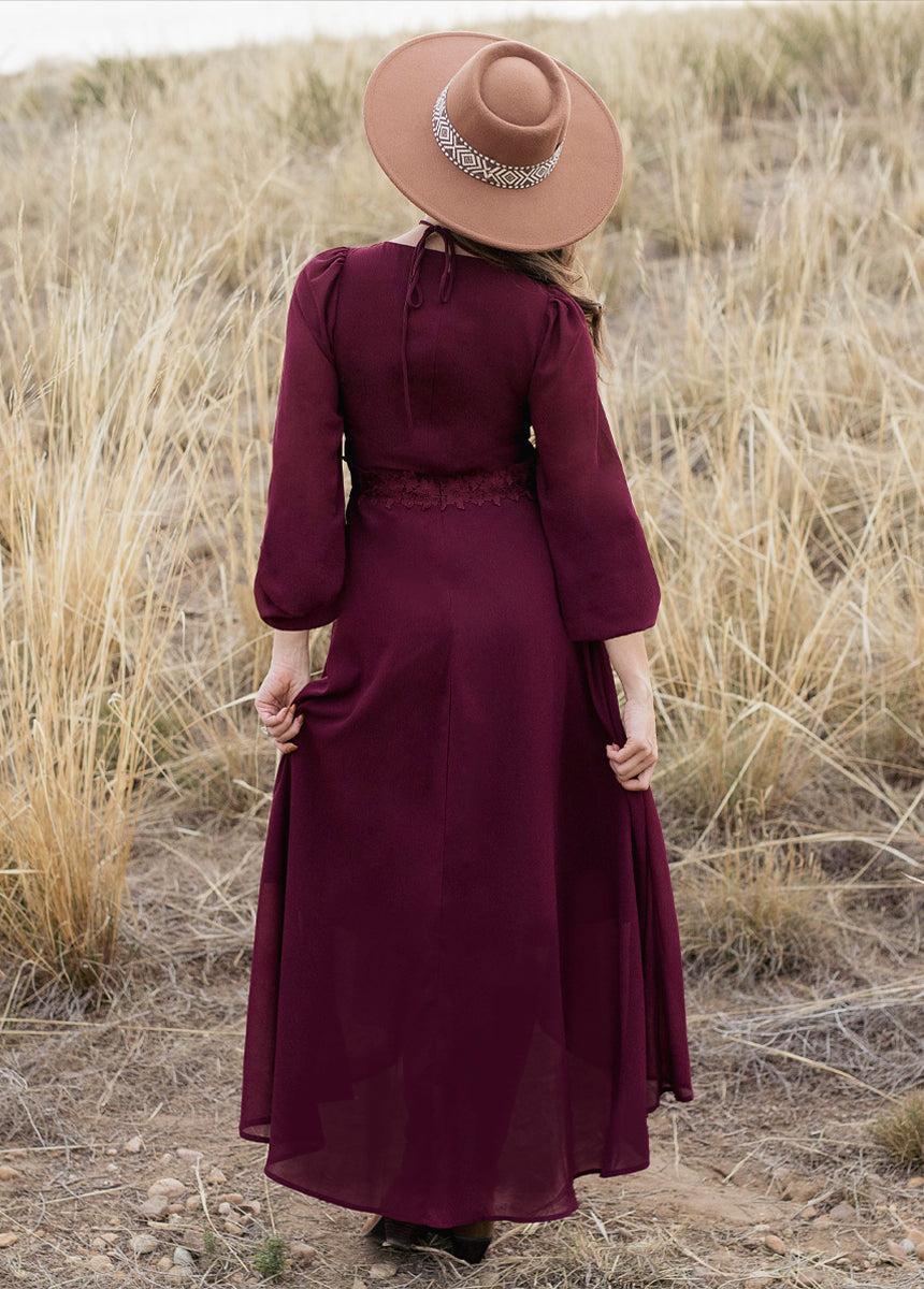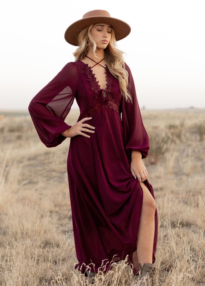 Discover the perfect blend of elegance and femininity with our Niobe Dress adorned with intricate lace detailing. Featuring a beautiful high-low design, this dress gracefully transitions from midi to maxi length, making it ideal for any occasion. The flattering V-neck and long balloon sleeves create a romantic silhouette, while the neck and chest ties add a charming detail. With an invisible back zipper for a seamless fit and a fully lined interior for comfort, this dress is as stylish as it is comfortable. Embrace your inner goddess with this stunning piece! High low midi to maxi length V-neck Long balloon sleeve Neck and chest ties Invisible back zipper Fully lined 100% Polyester Hand wash only, line dry Model is 5'5" wearing an XS