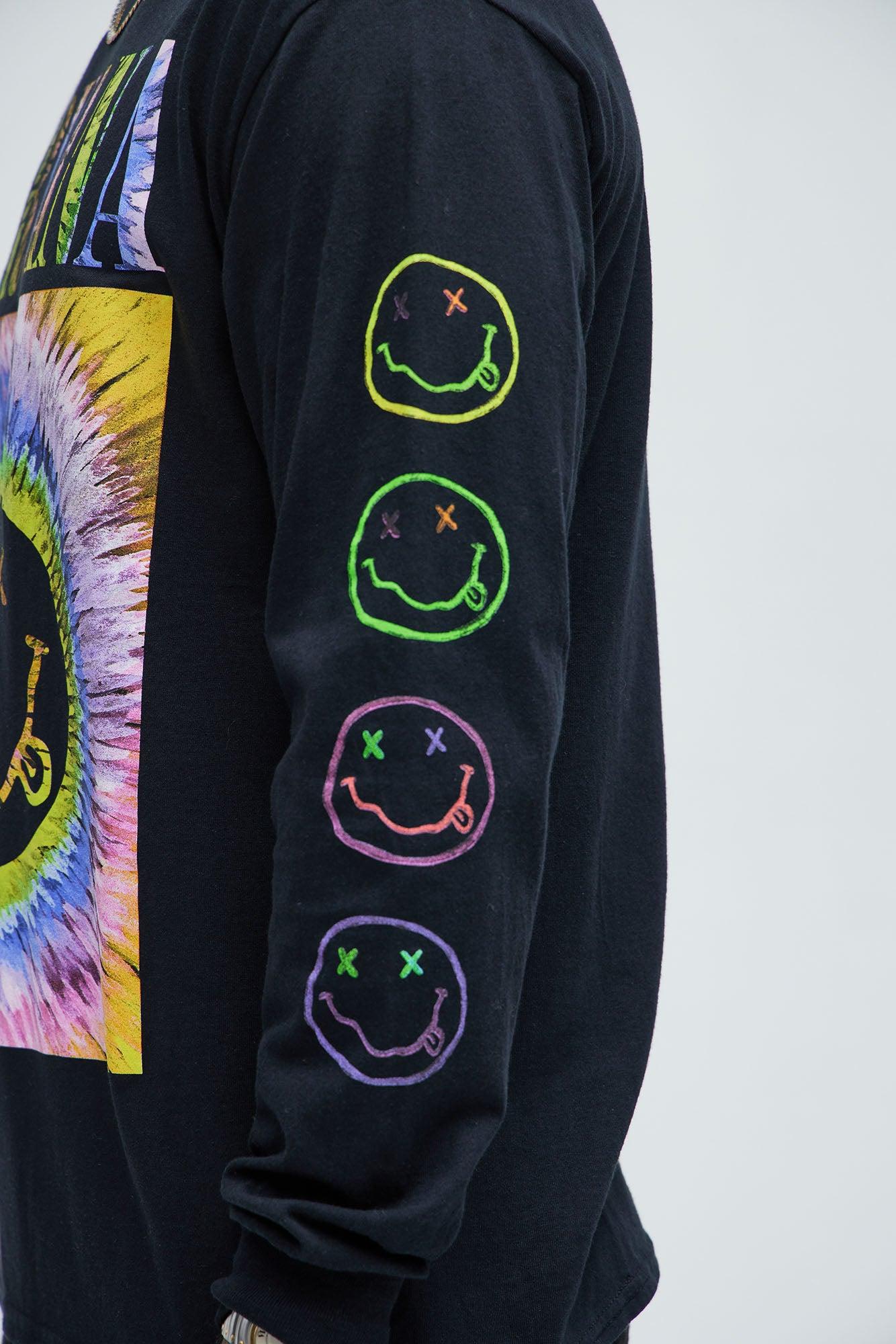 Nirvana Smiley Face Long Sleeve Tee - Black