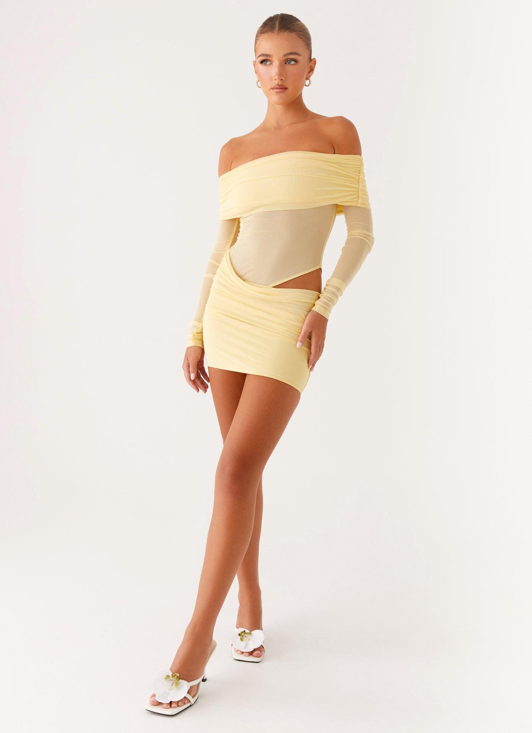 Peppermayo Exclusive The No Doubt Mini Dress is a bold fusion of edge and elegance. With its off-shoulder design, stretch mesh fabric, and semi-sheer allure, it’s perfect for those who want to stand out under the night sky. Playful, daring, and undeniably chic—this is the dress that keeps the energy alive from sunset to sundown. - Mini length- Off-shoulder- Silicone taping- Side cut-out- Self-lined bustier and skirt- Semi-sheer- Stretch mesh- Ruched shoulder and skirt, "95% polyester 5% spandex" Size AU 8 / US 4 garment measurements: Length - 70cm / 27.6in.Bust - 78cm / 30.7in.Waist - 70cm / 27.6in.Hip - 96cm / 37.8in.Hem - 114cm / 44.9in. Yasmin is 174cm and wearing a size AU 6 / and US 2