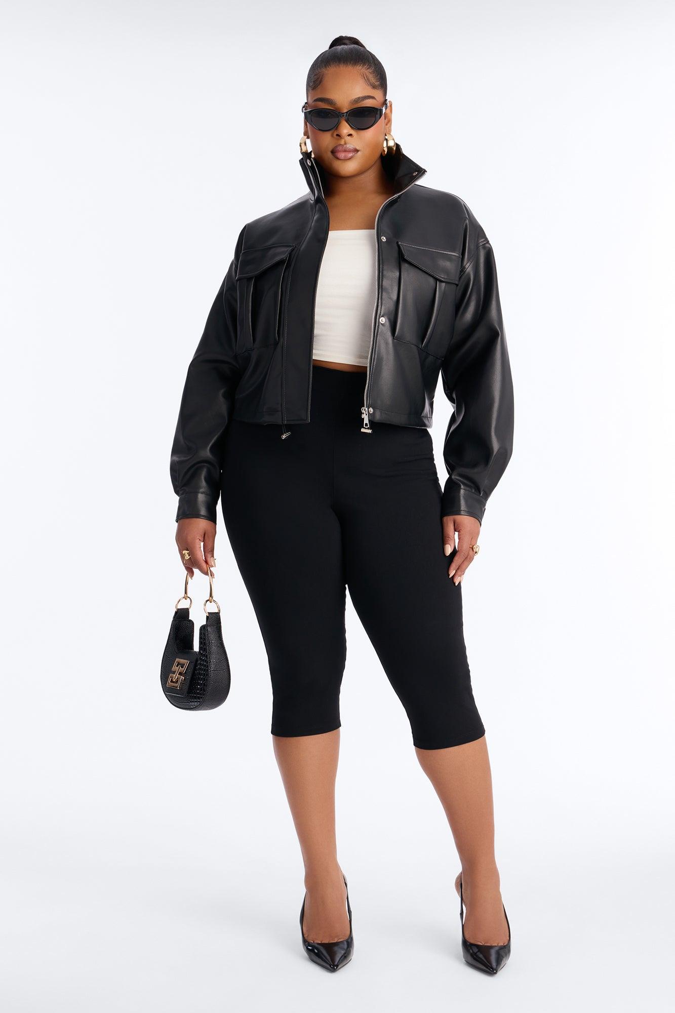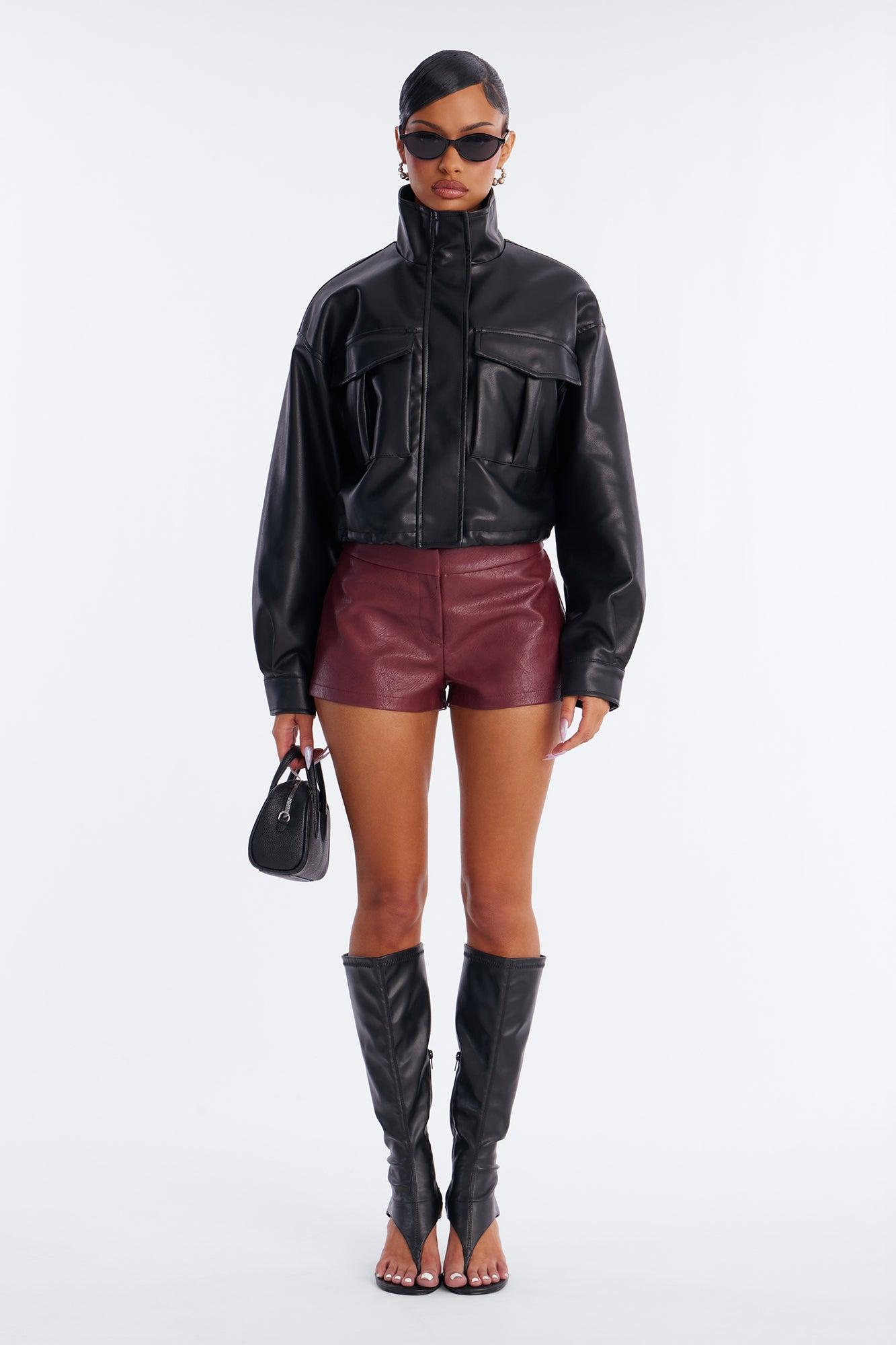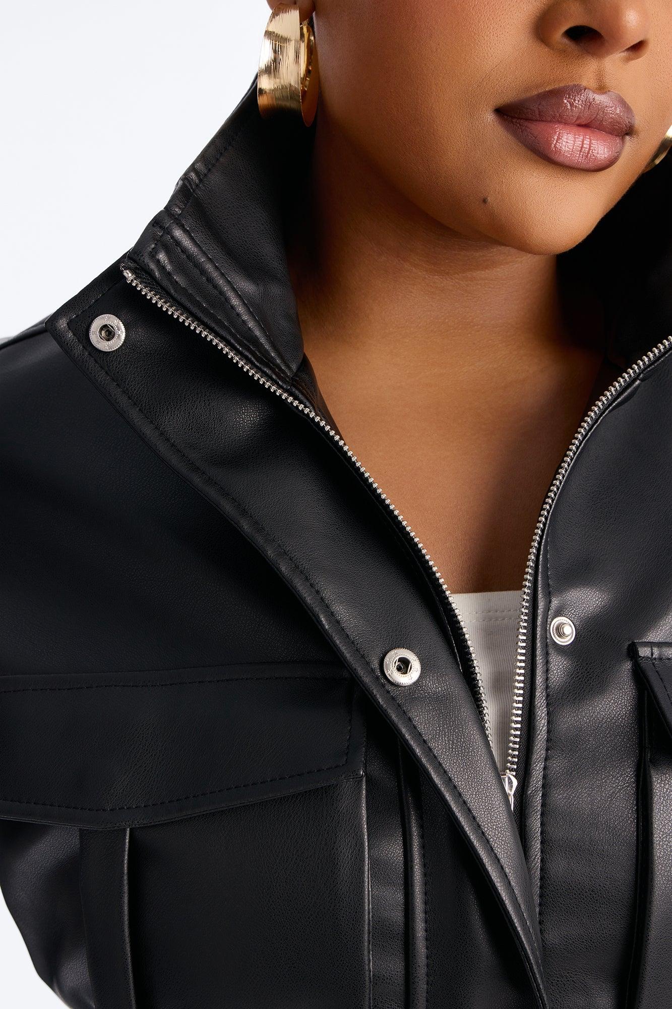 No Hard Feelings Faux Leather Cropped Bomber Jacket - Black Female