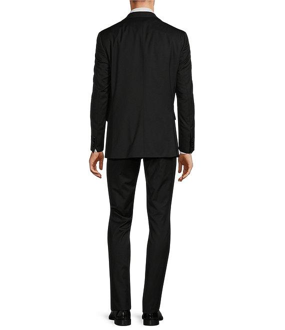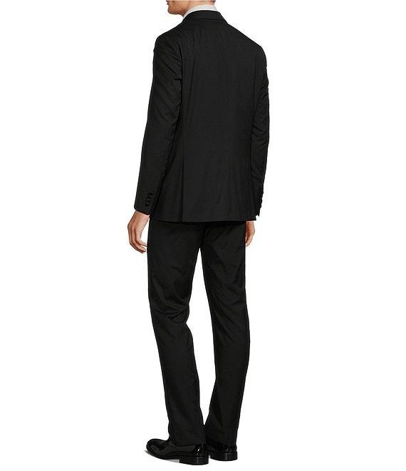 From No Ordinary Joe by Ted Baker, this 2-piece suit features: Jacket: Solid pattern Modern fit Notch lapel Long sleeves 2-button closure Side vents Flap pockets Bluff edges Satin lapels Pants: Matching Flat front Button closure with zip fly 2 front hand pockets 2 back buttoned pockets Unhemmed styling Care: Wool Dry clean Imported *Dillard's offers free alterations at our retail store locations on full price tailored garments. Suits have what is called a "drop", which is the difference between the size of the jacket and the size of the pants. Classic-fit suits typically have a 6" drop, meaning that a size 38R jacket is paired with size 32 pants. Trim-fit suits typically have a 7" drop; extra trim fit suits usually have an 8" drop.