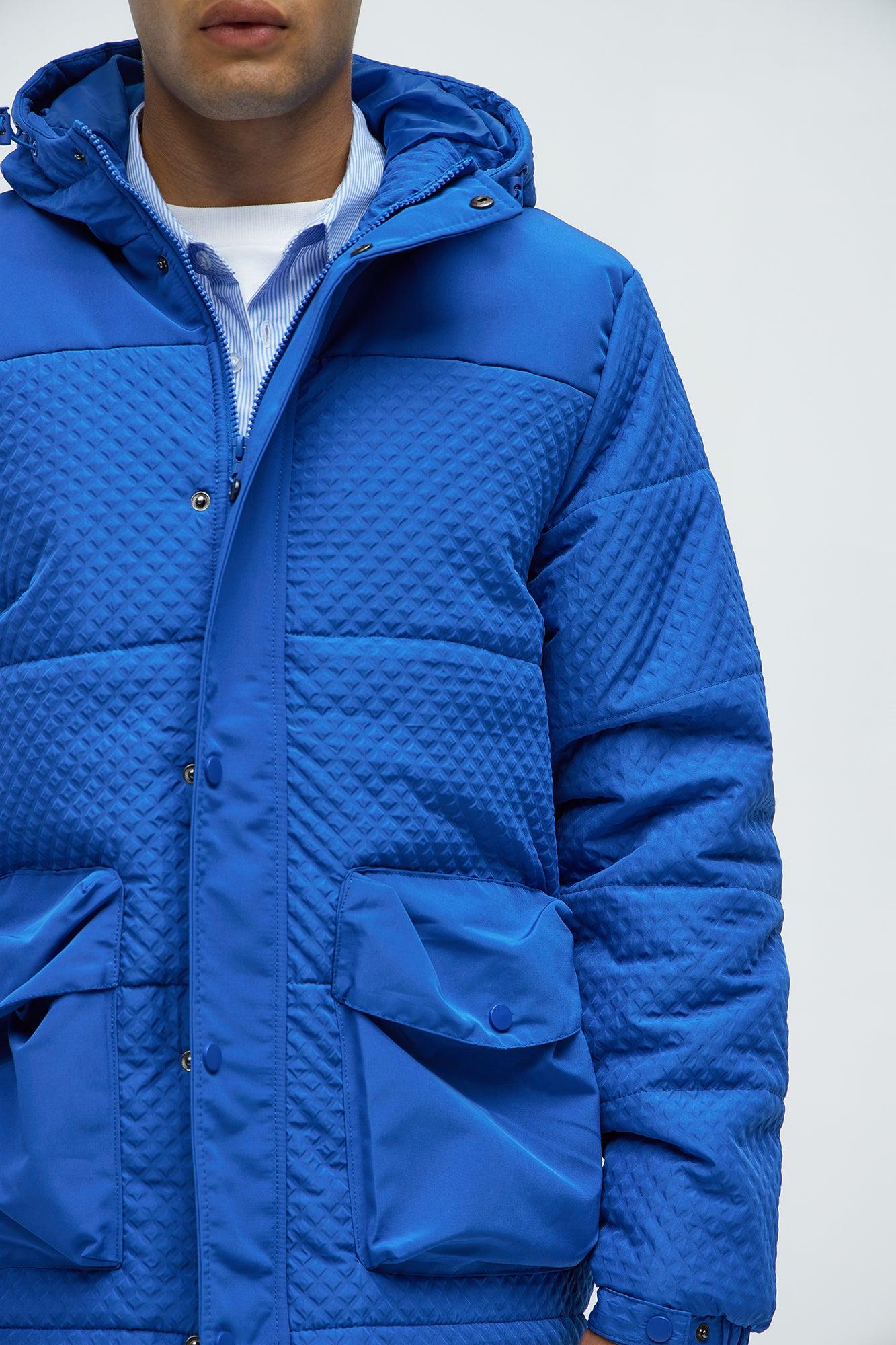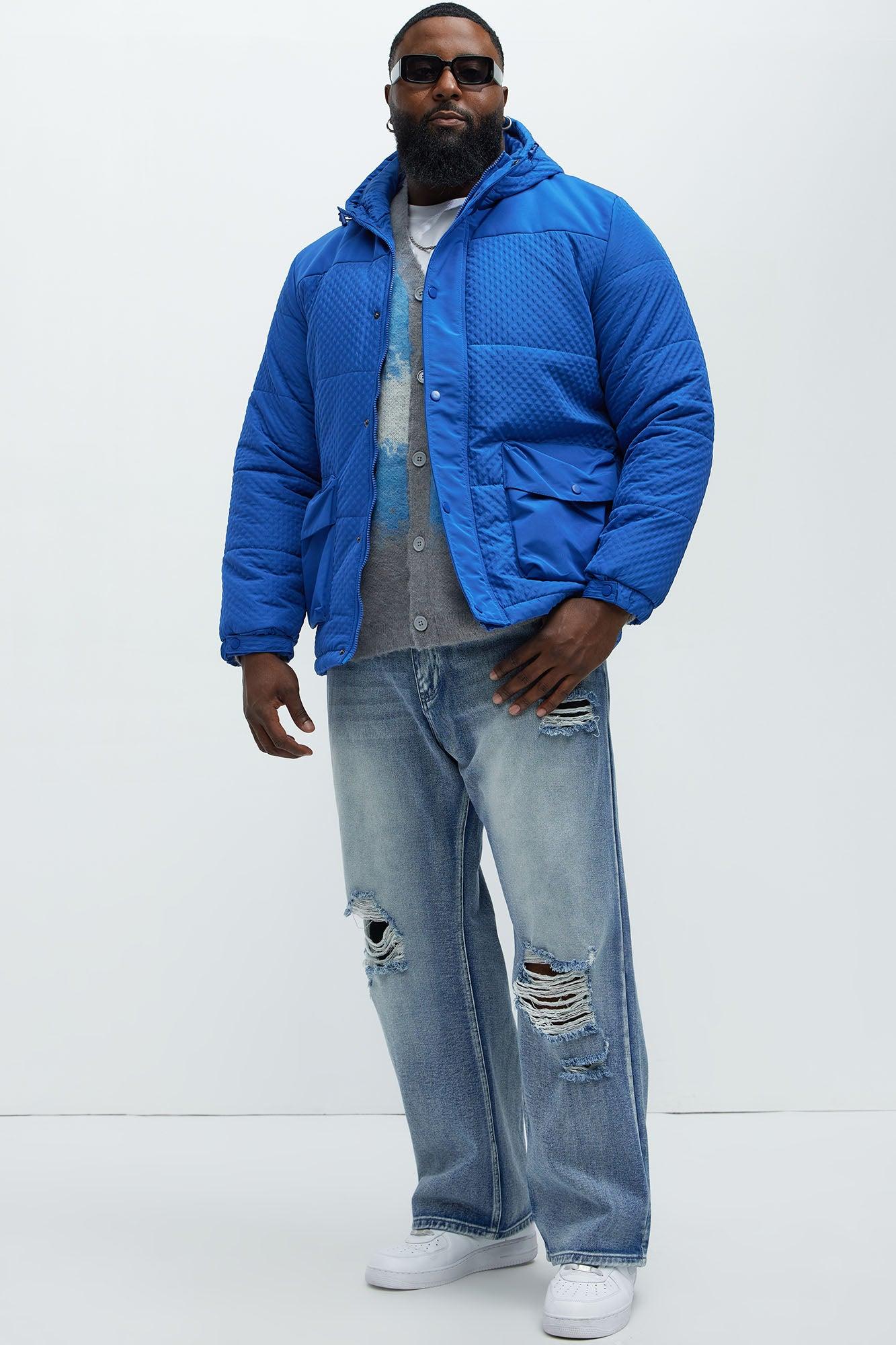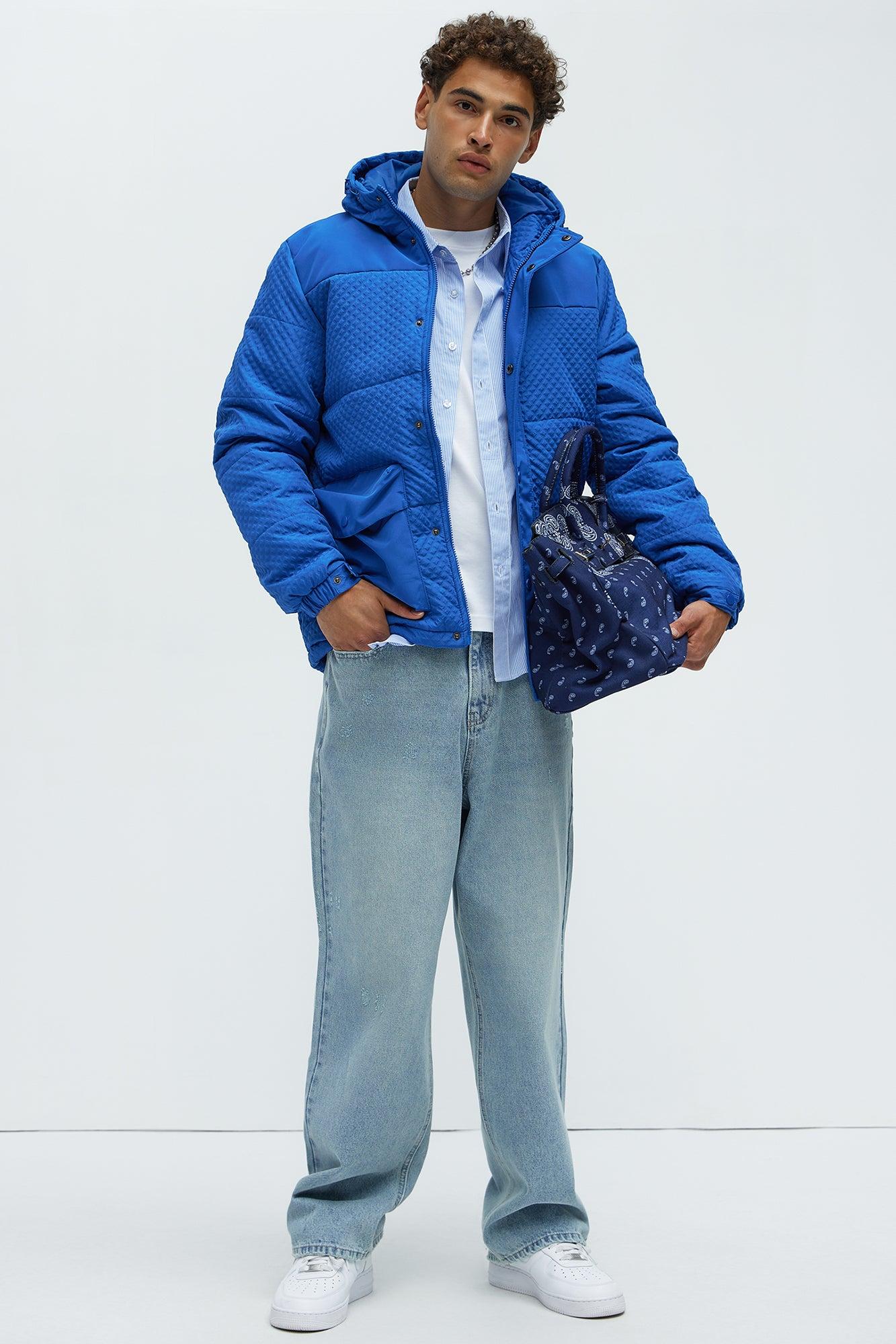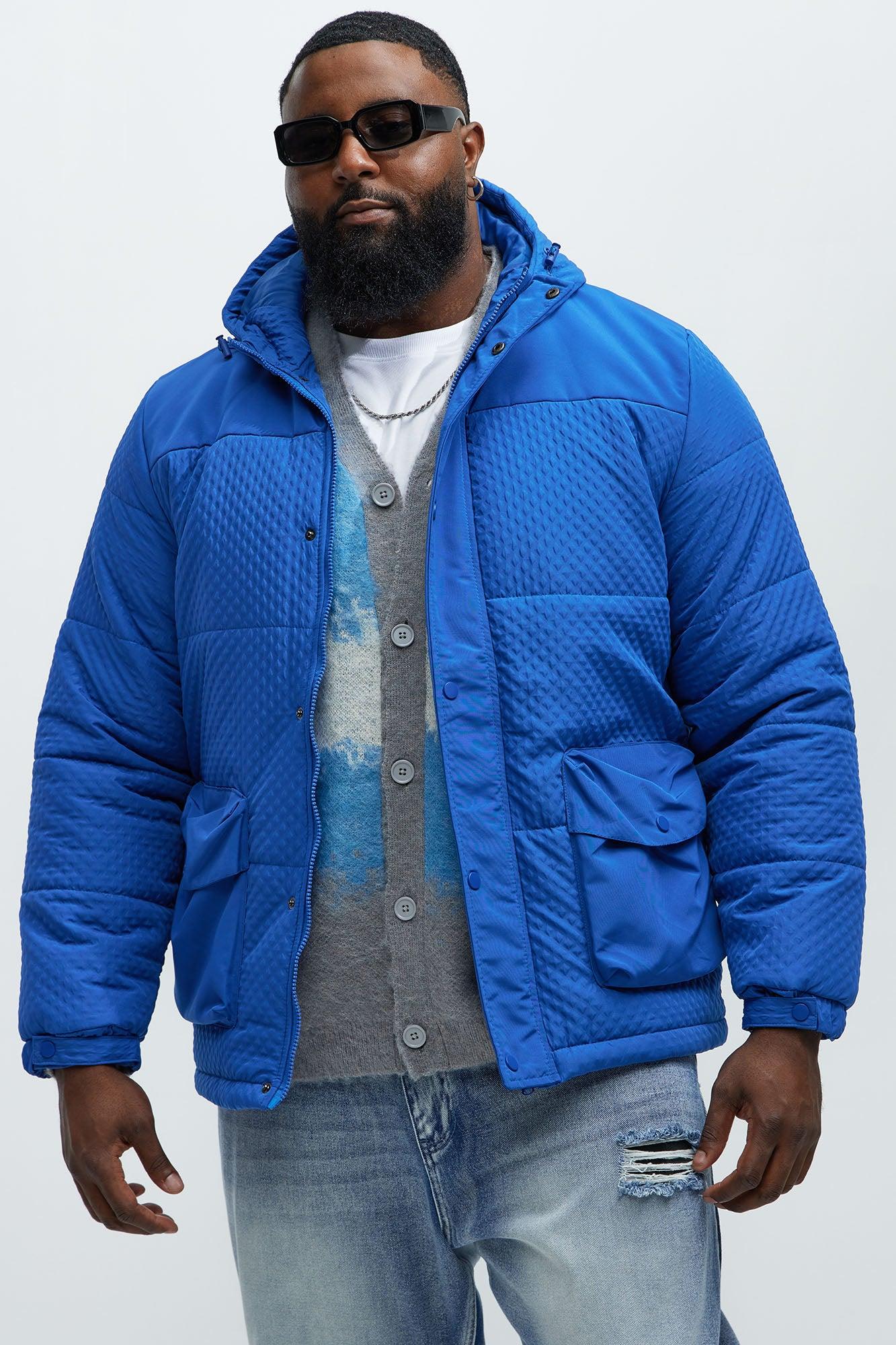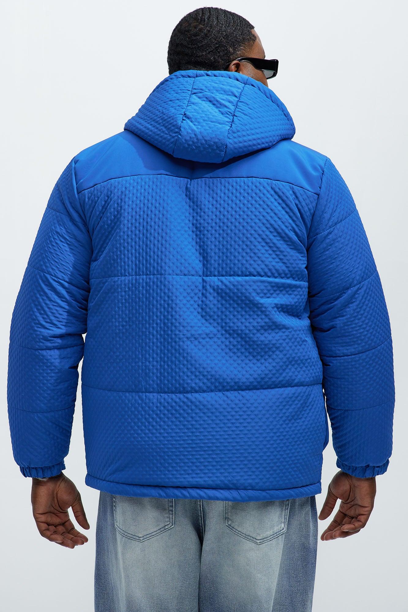 Available In Blue. Mock Neck Hooded Draw String Hood Details Front Full Snap Closure Snap Detail On Front Hand Pockets Textured Front Hand Pockets Snapped Cuffs Long Sleeve 100% Polyester Imported California Proposition 65 WARNING: Cancer and Reproductive Harm - www.P65Warnings.ca.gov.