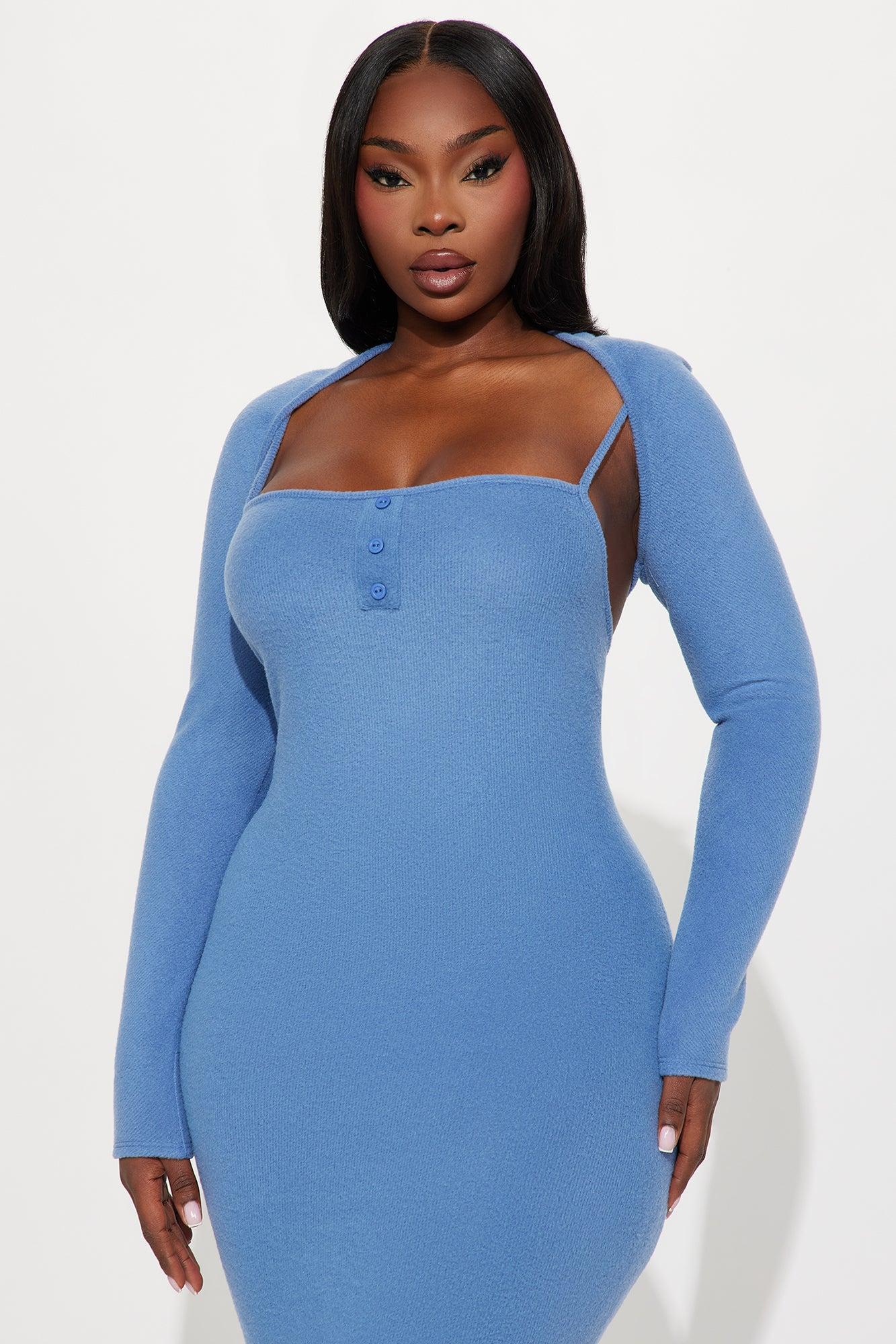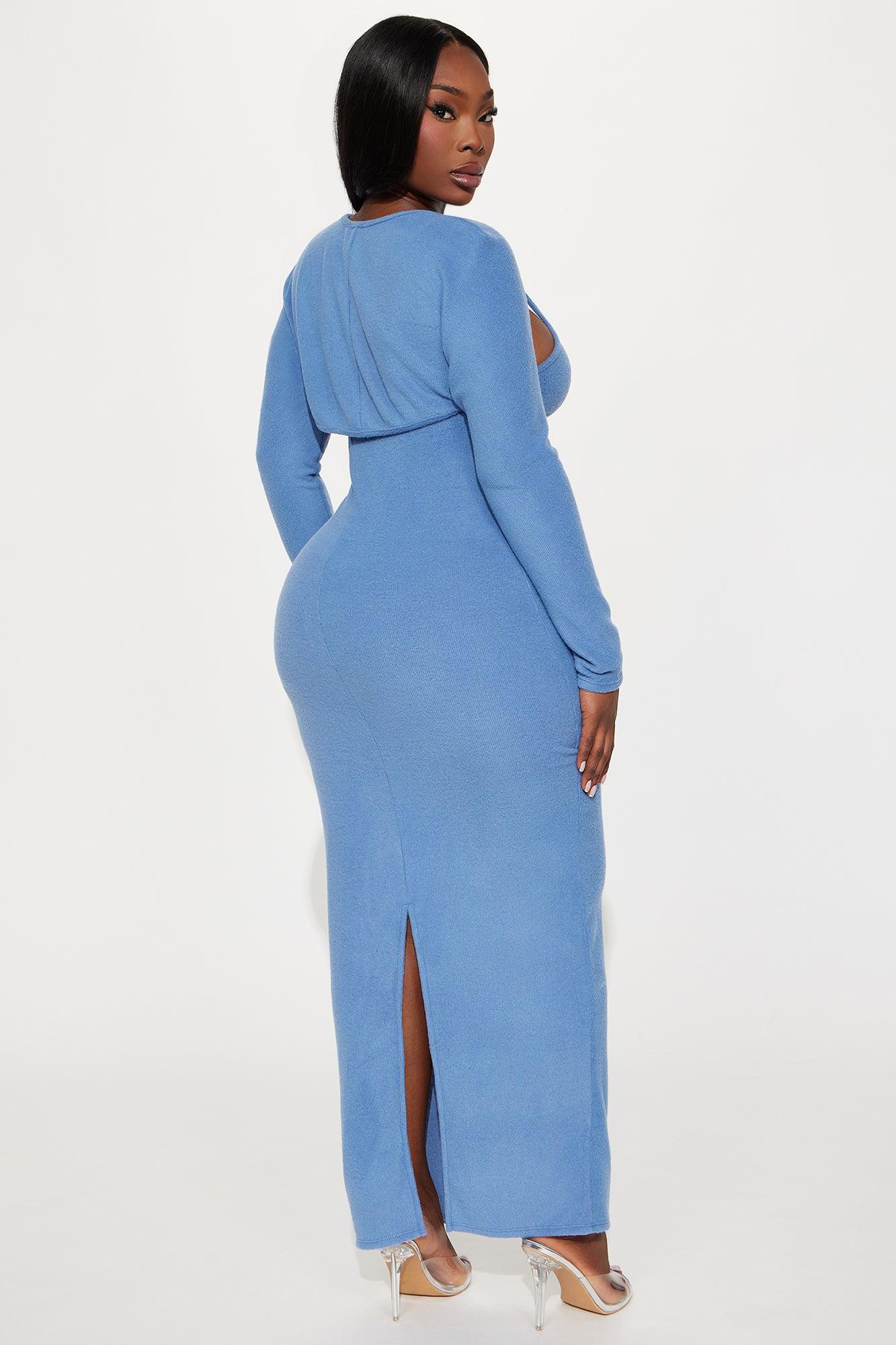 Available In Dusty Blue. 2 Piece Maxi Dress Bolero Maxi Dress Spaghetti Straps Straight Neckline Button Front Detail Back Slit Stretch Self: 65% Polyester 32% Rayon 3% Spandex Imported California Proposition 65WARNING: Cancer and Reproductive Harm - www.P65Warnings.ca.gov.