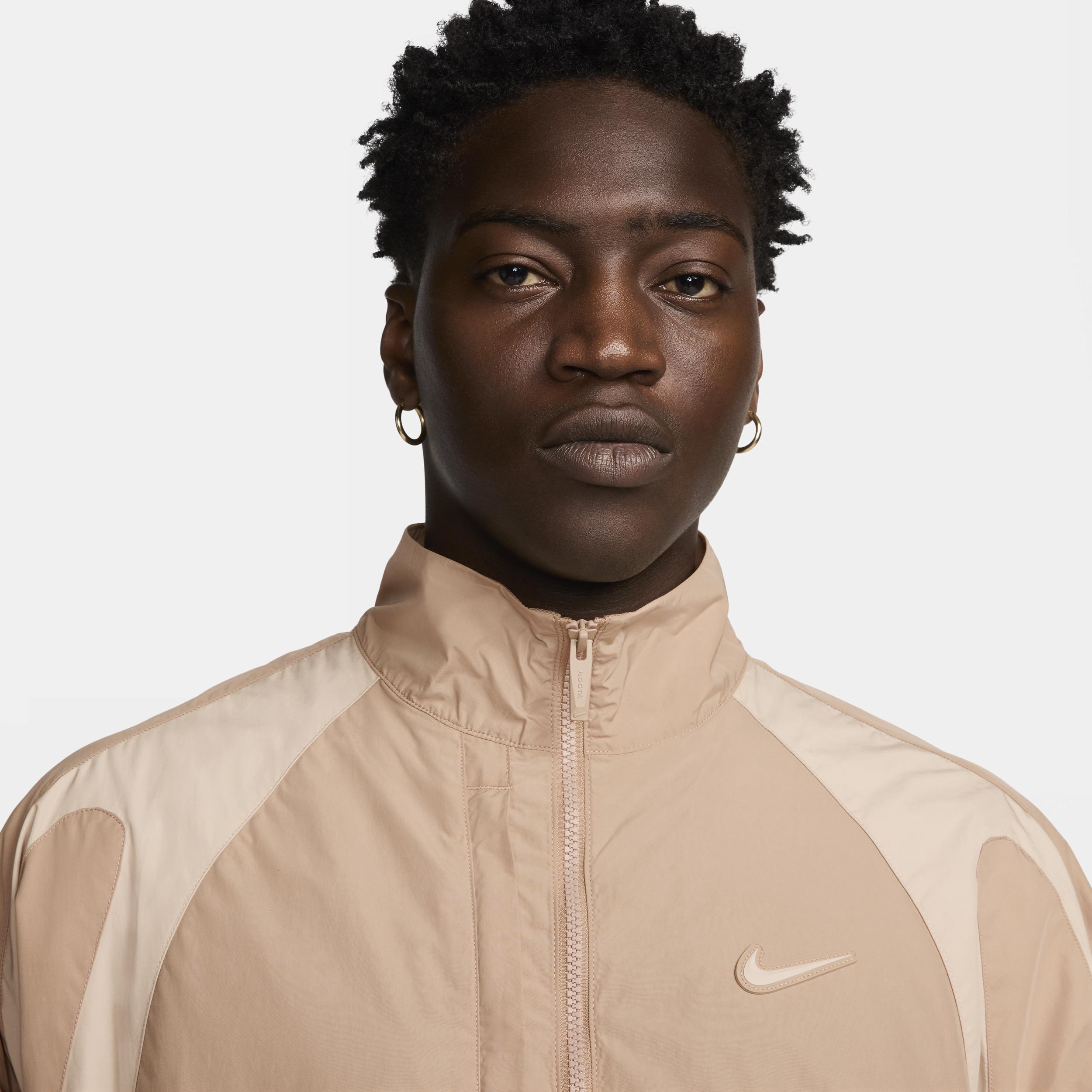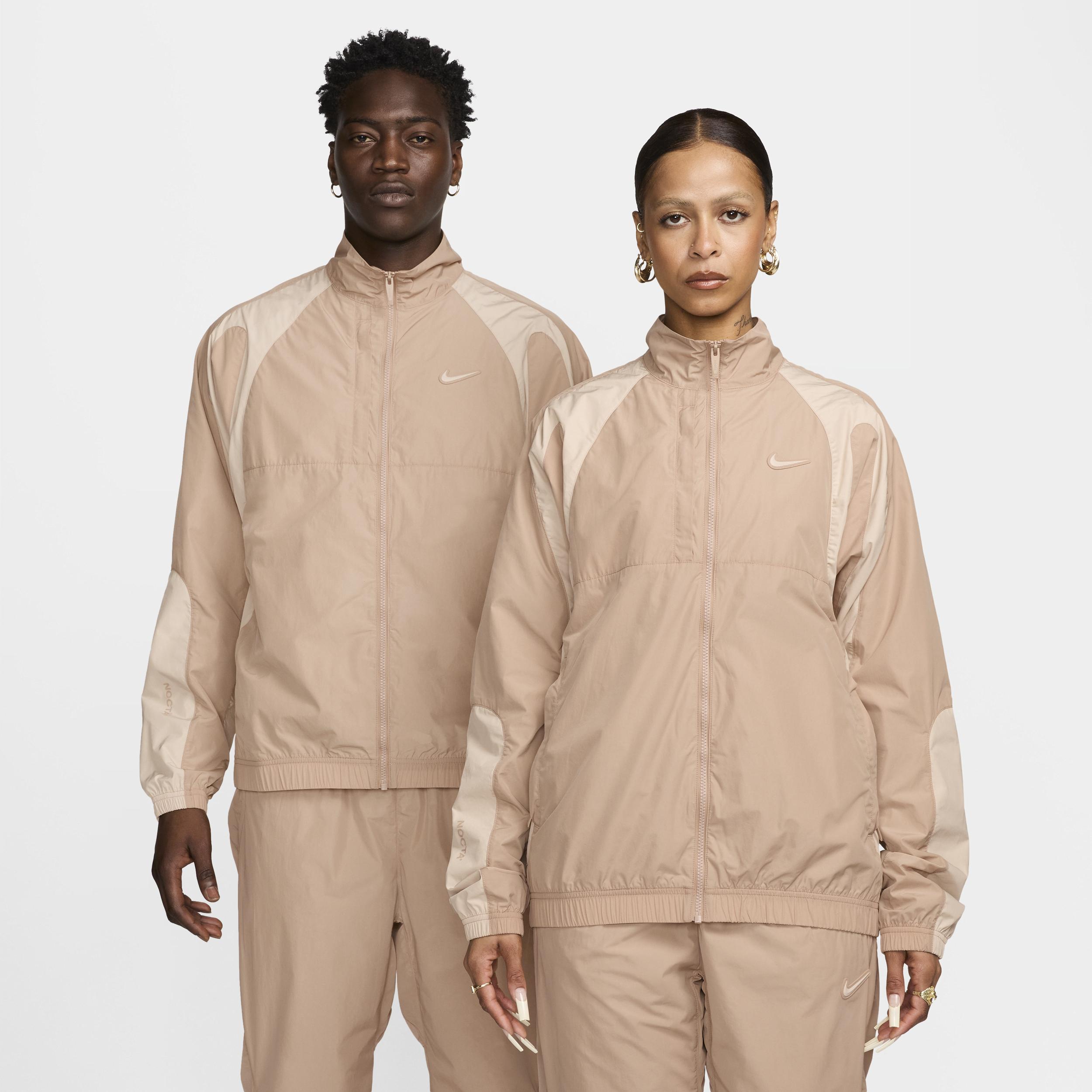 Perfect for everyday wear, this jacket features durable nylon with a relaxed fit through the body. Product Details: NOCTA branded zippers at pocket. Body: 100% nylon. Lining: 100% polyester. Machine wash. Imported. Style: FN7666; Color: Hemp/Sanddrift/Sanddrift; Size: XS; Gender: Male; Age Group: Adult | Nike NOCTA Nylon Track Jacket in Brown, Size: XS | FN7666-200